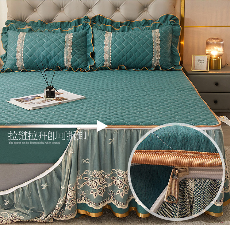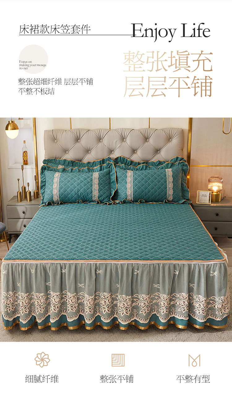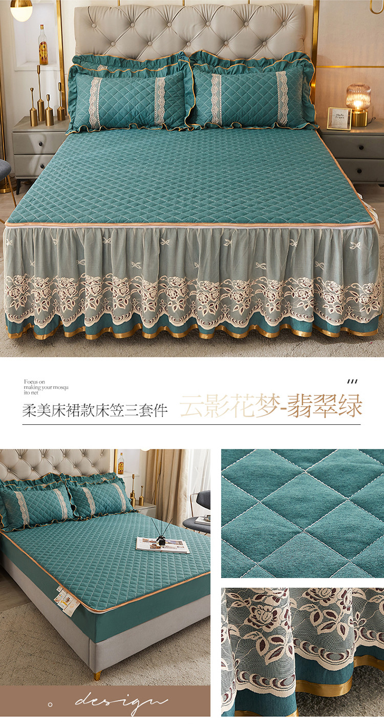 当前位置: 91家纺网 > 商品网购 > 床品套件 > 三件套 > 网红馆 2025新款云影花梦脱卸床笠式床裙三件套 云影花梦-翡翠绿