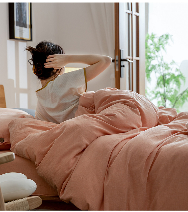 寐眠 2022新款A类全棉水洗棉提花四件套 人字纹-玉粉