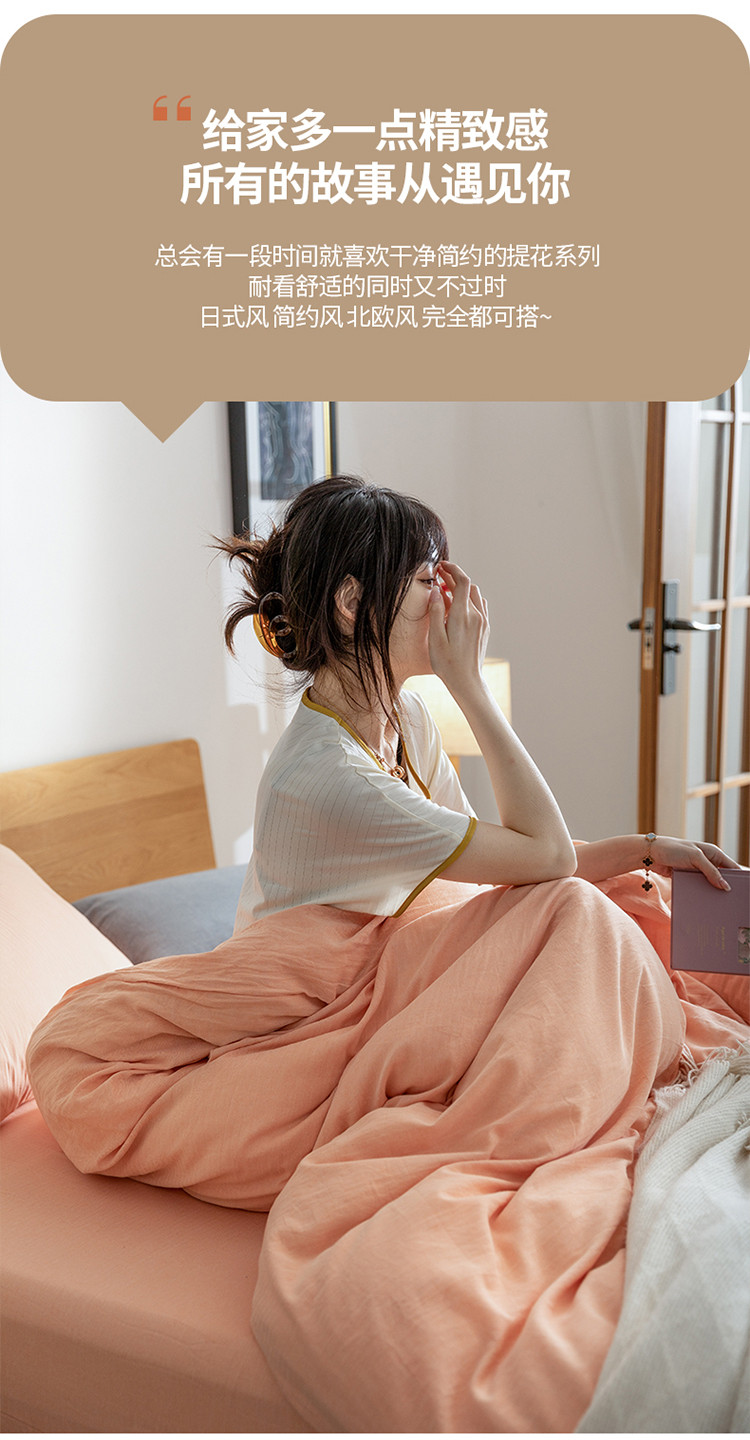 商品名称:寐眠 2022新款A类全棉水洗棉提花四件套 人字纹-玉粉