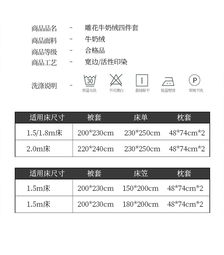 商品名称:(总)慕尚 2022新款高克重纯色牛奶绒剪花雕花四件套