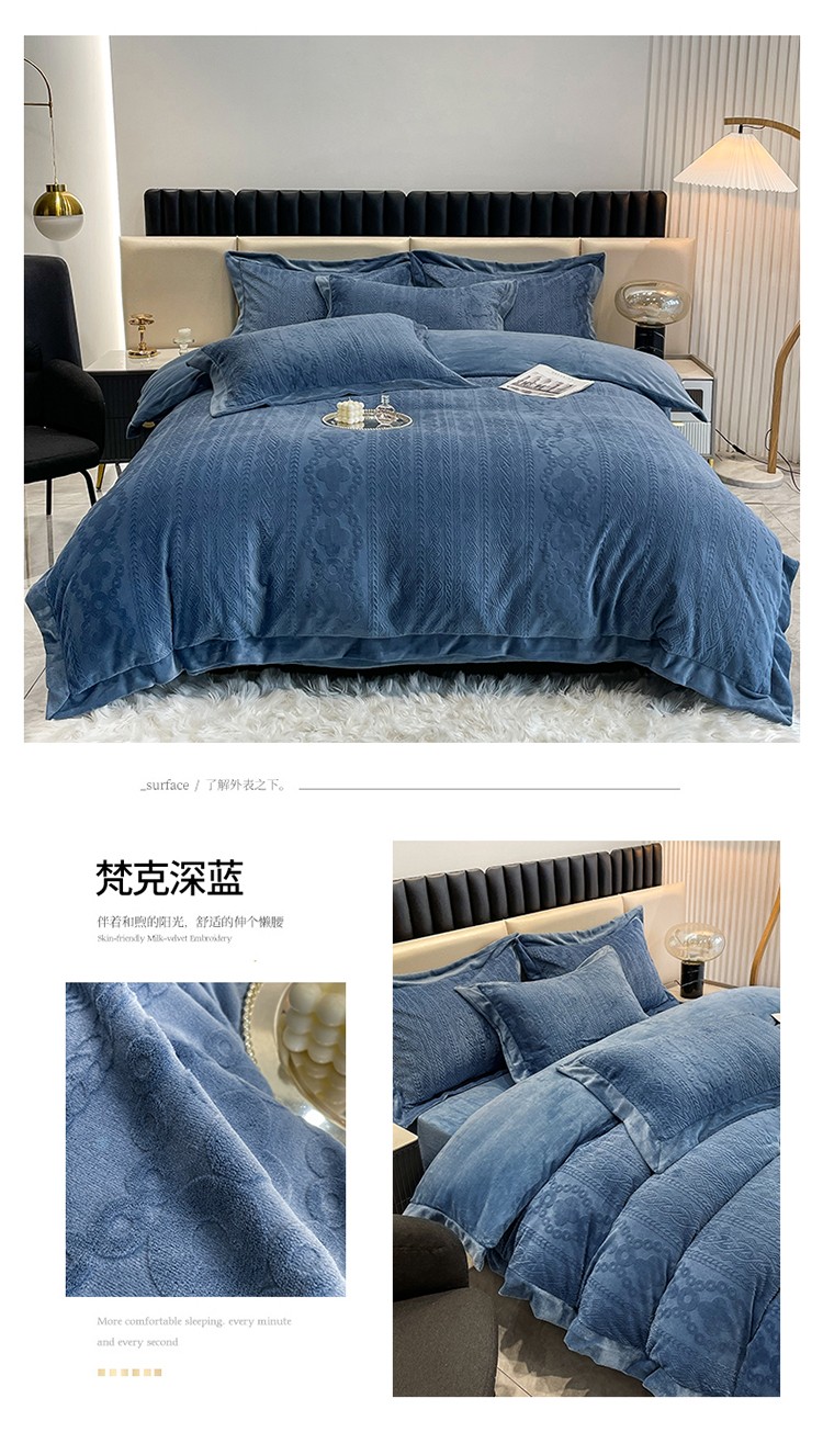 (总)慕尚 2022新款高克重纯色牛奶绒剪花雕花四件套