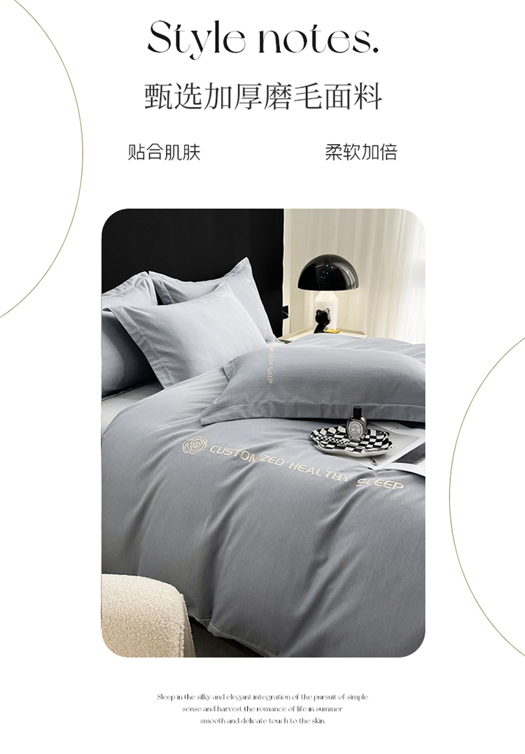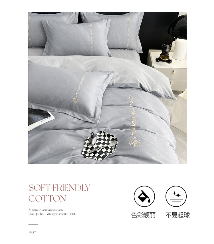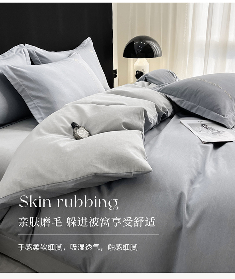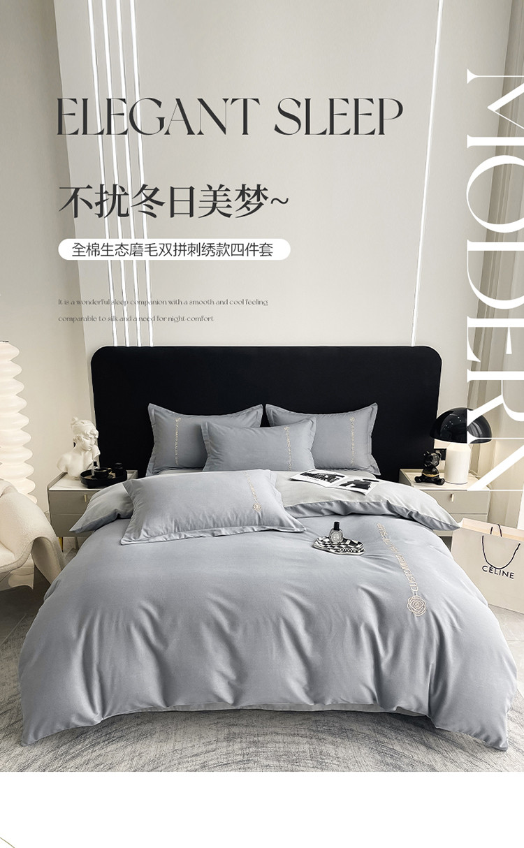 商品名称:AB家纺 2022新款全棉生态磨毛刺绣四件套 绅士灰-浅灰