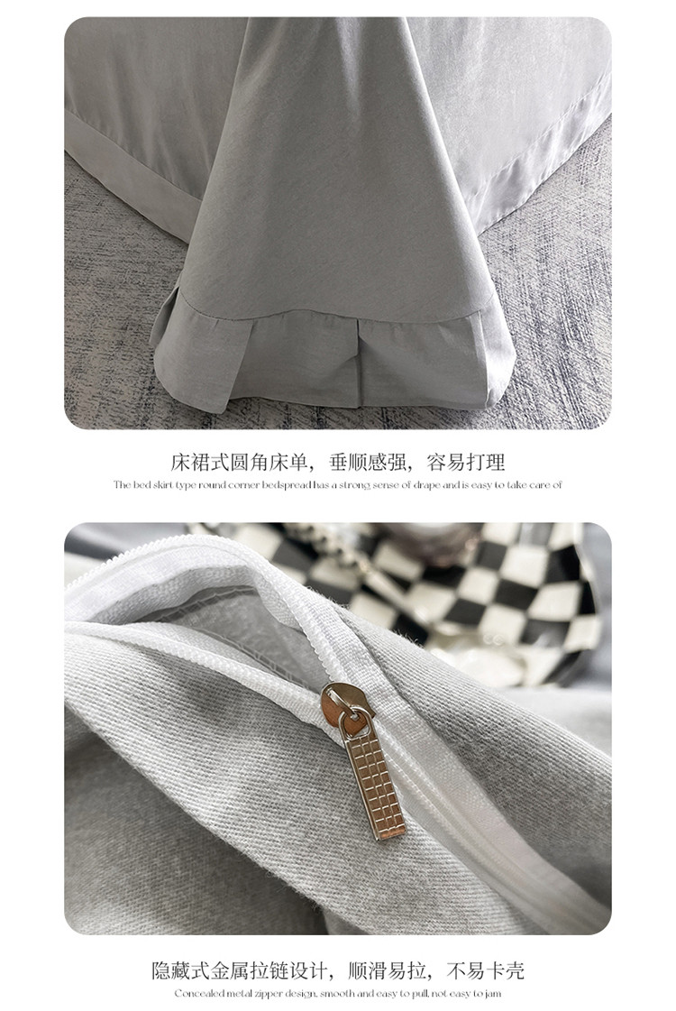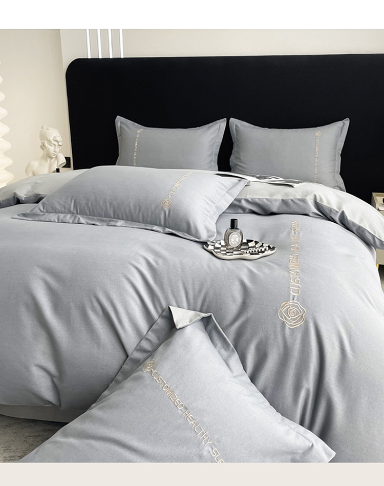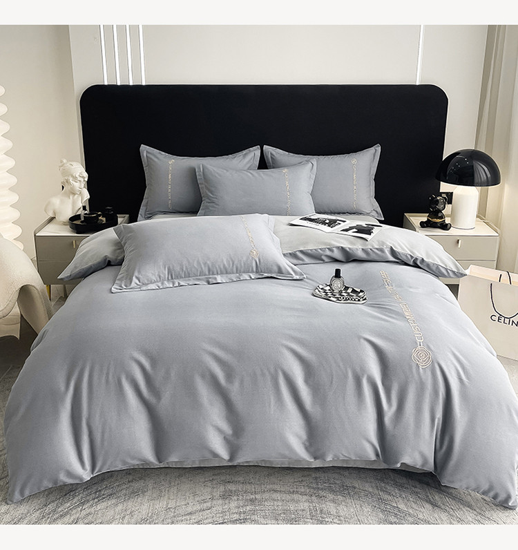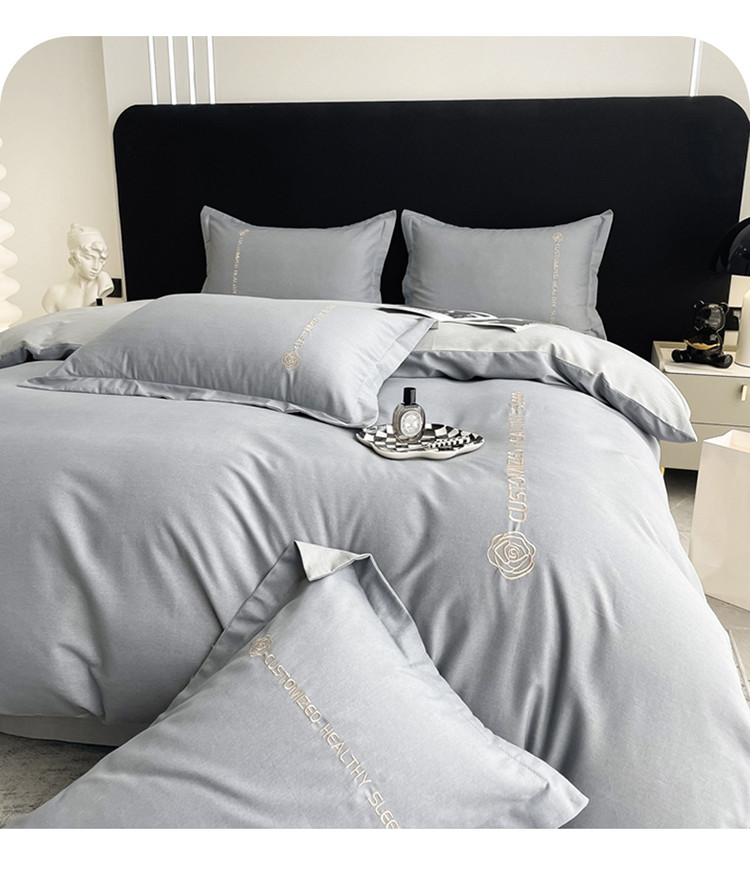 AB家纺 2022新款全棉生态磨毛刺绣四件套 绅士灰-浅灰