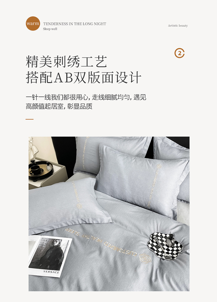 (总)AB家纺 2022新款全棉生态磨毛刺绣四件套,焦糖-米卡,橘-绅士灰,米卡-浅灰,浅灰-米卡,绅士灰-浅灰,雪青-绅士灰,樱花粉-绅士灰,月光蓝-绅士灰