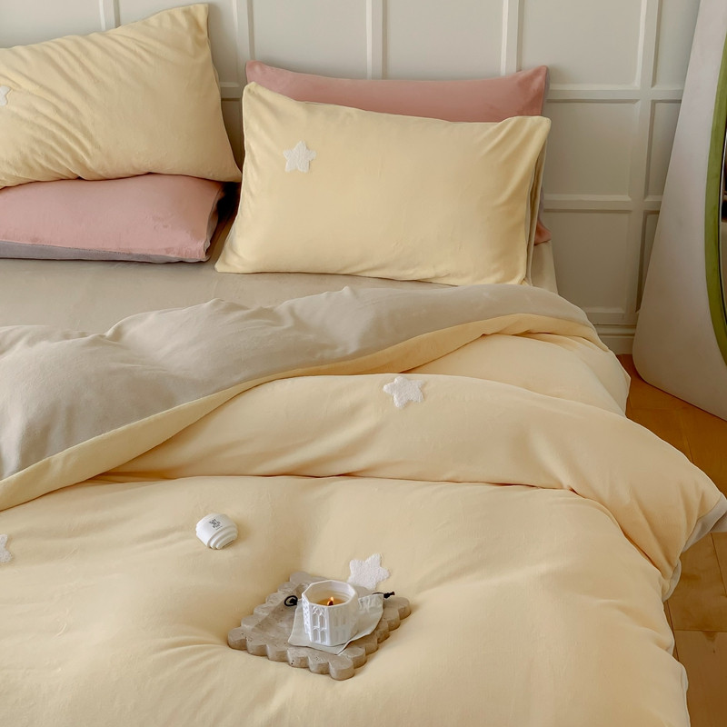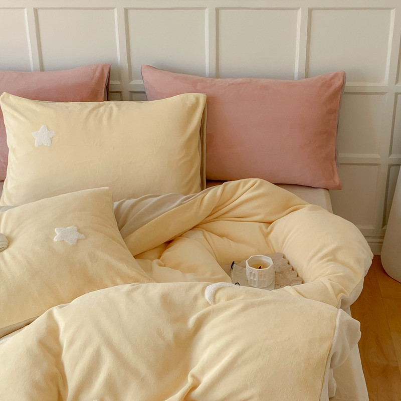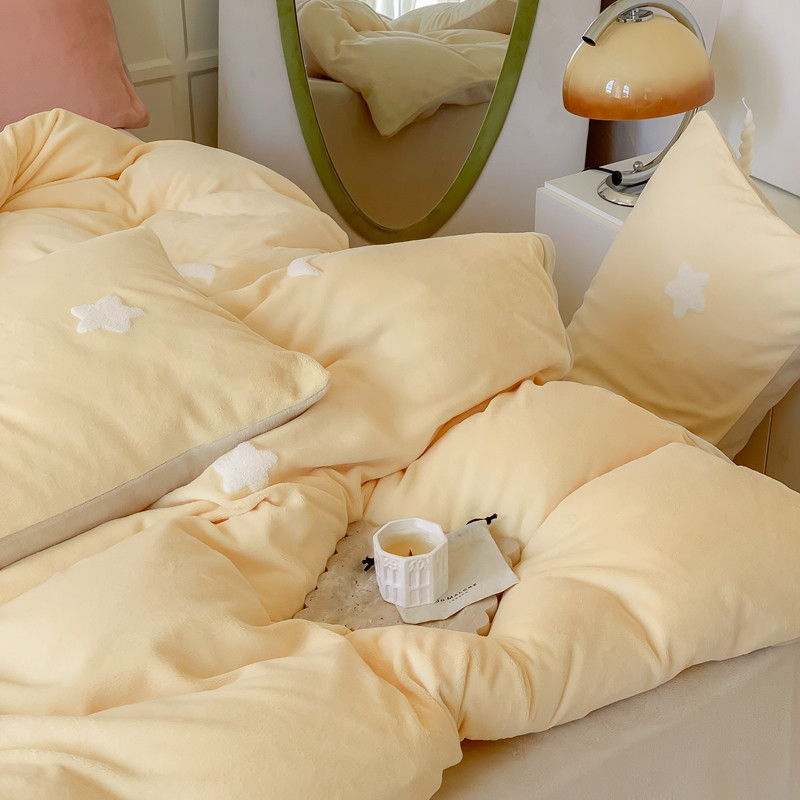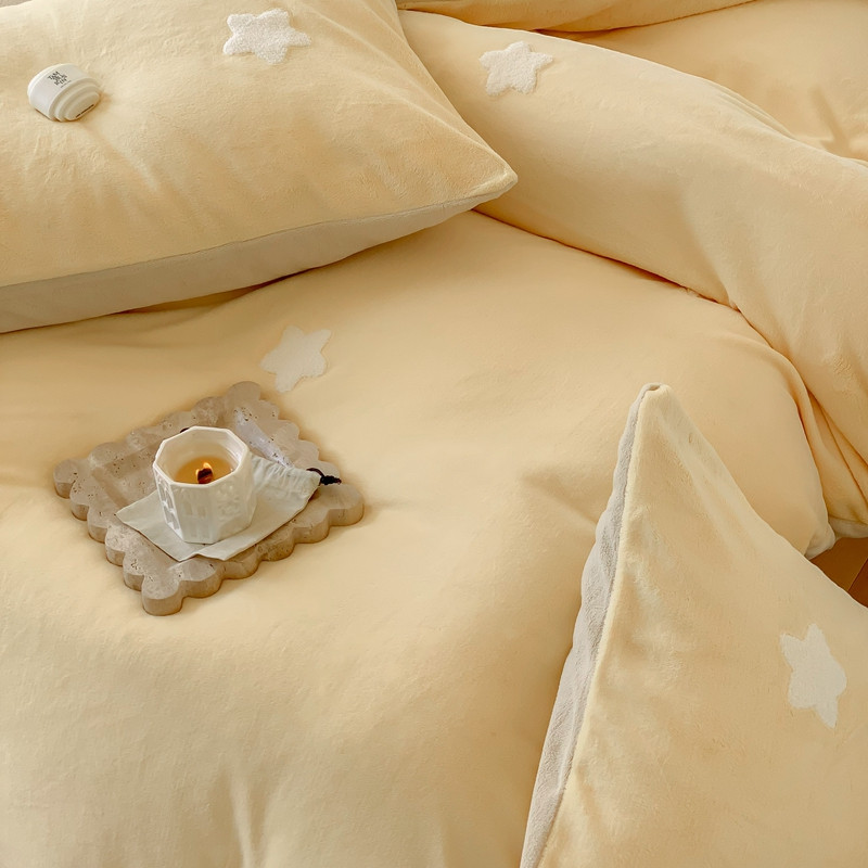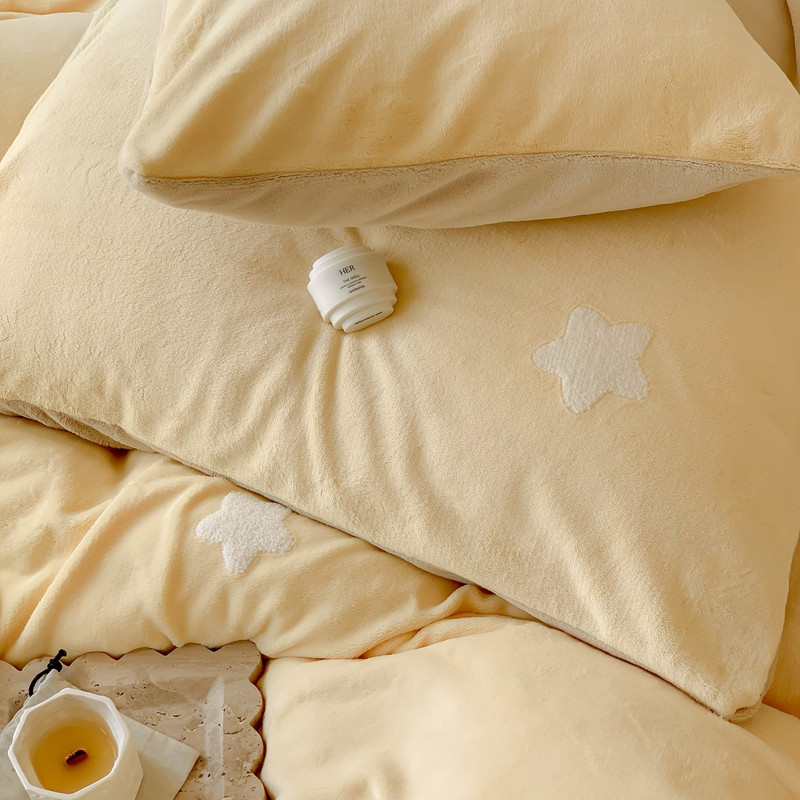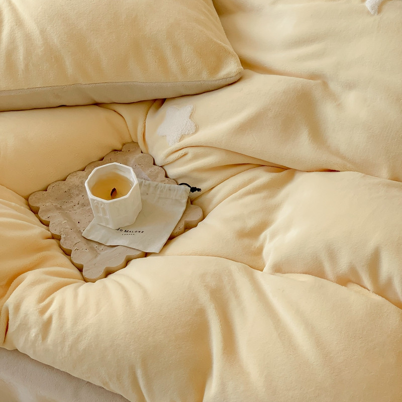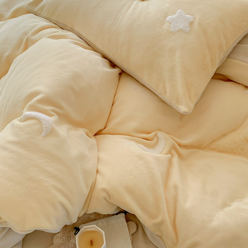 商品名称:时年 2022新款牛奶绒毛巾绣四件套 幻梦星空-黄