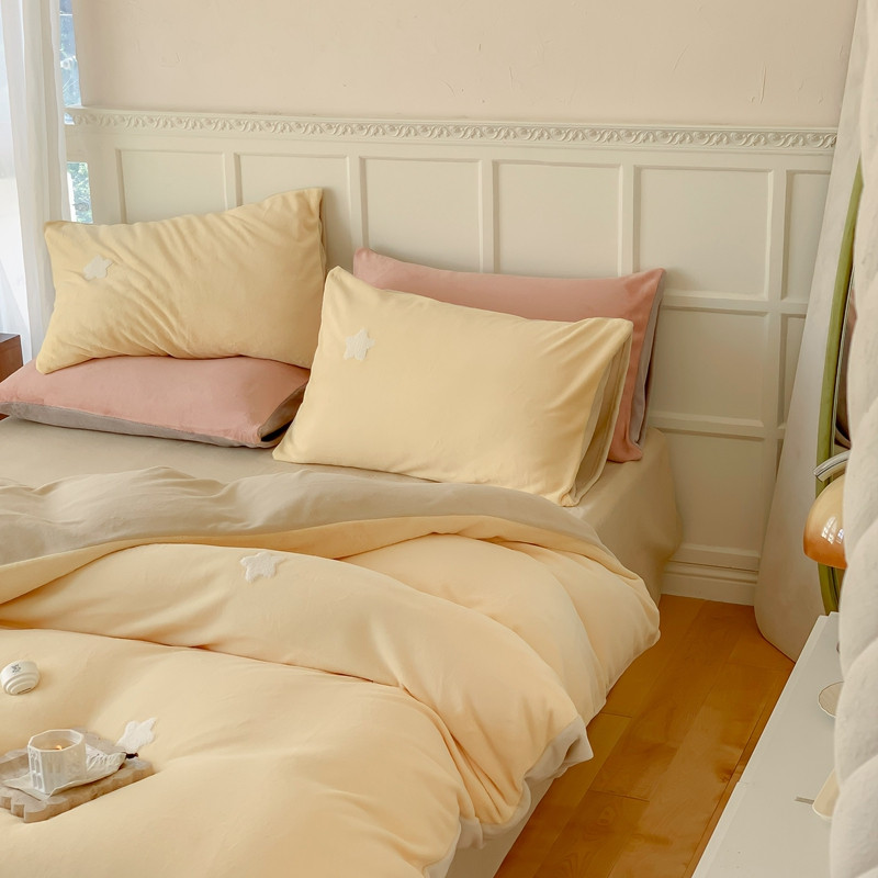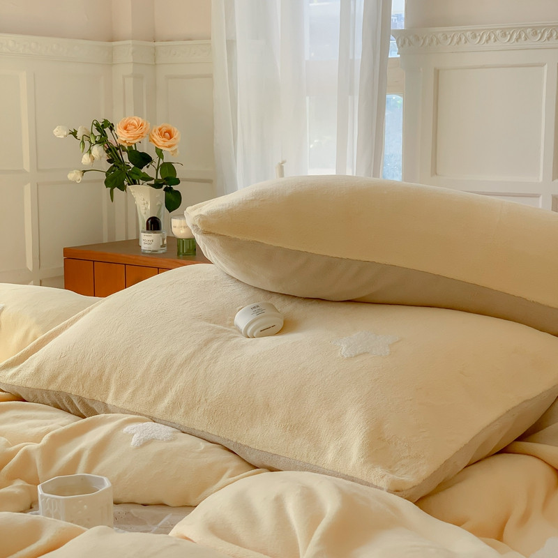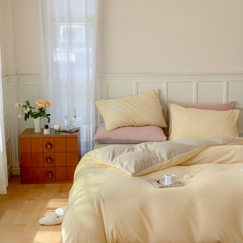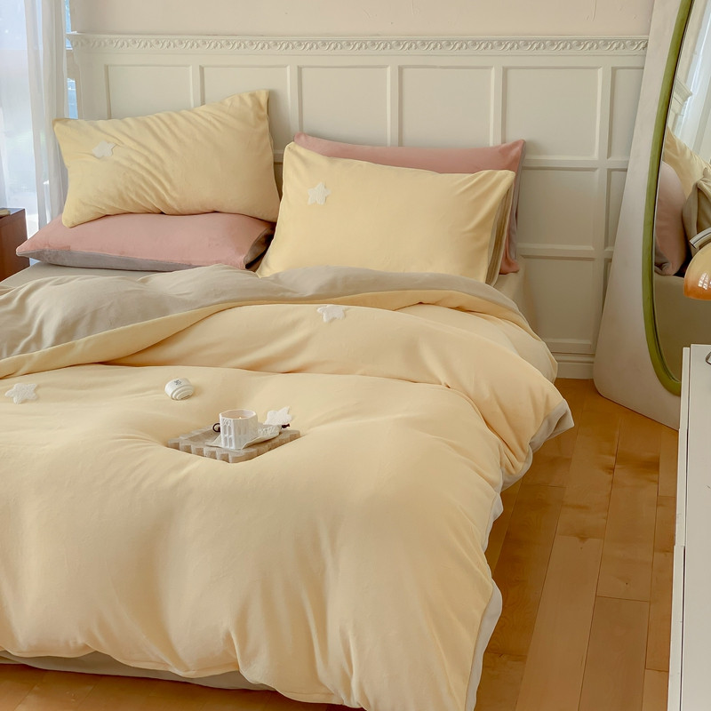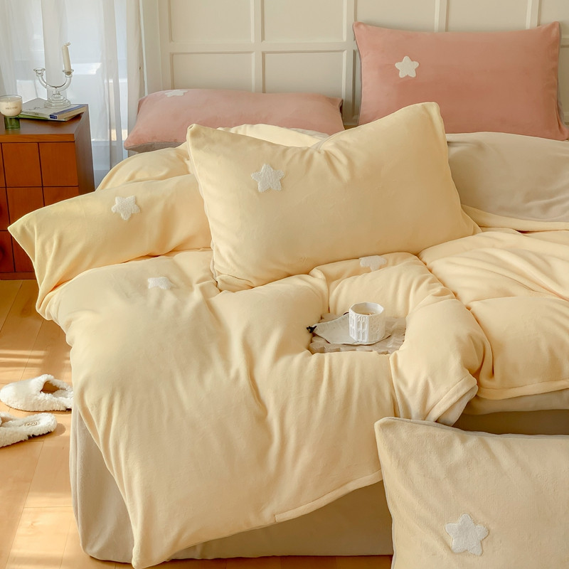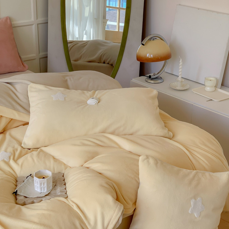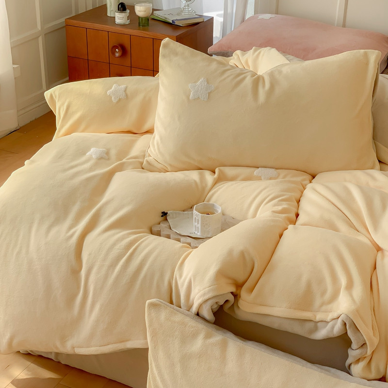 商品名称:时年 2022新款牛奶绒毛巾绣四件套 幻梦星空-黄