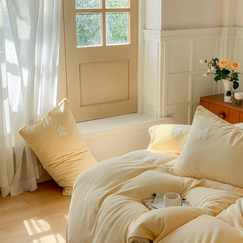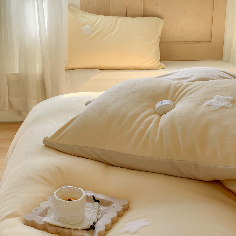 时年 2022新款牛奶绒毛巾绣四件套 幻梦星空-黄