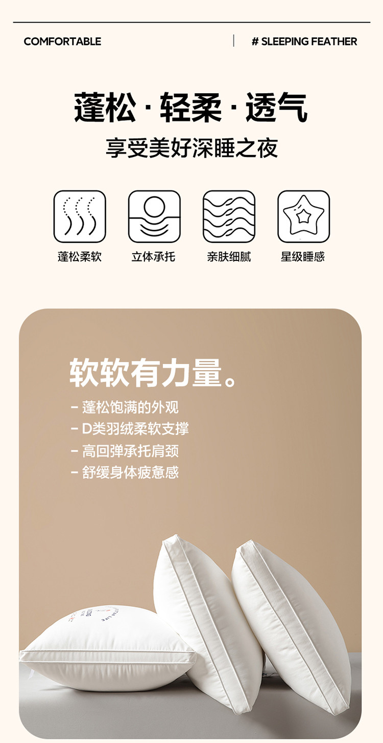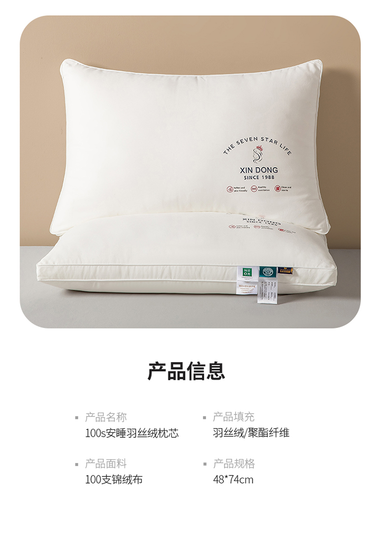 当前位置: 91家纺网 > 商品网购 > 枕头/枕芯/保健枕/颈椎枕 > 普通枕芯 > 伊被源 2022新款100s安睡羽丝绒枕头枕芯 48*74cm/个双边高枕
