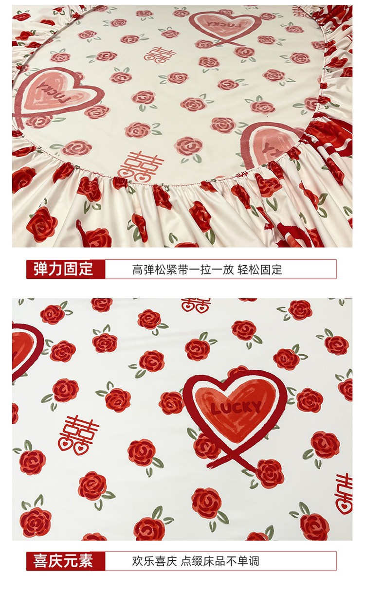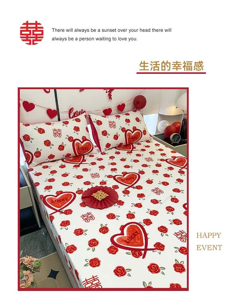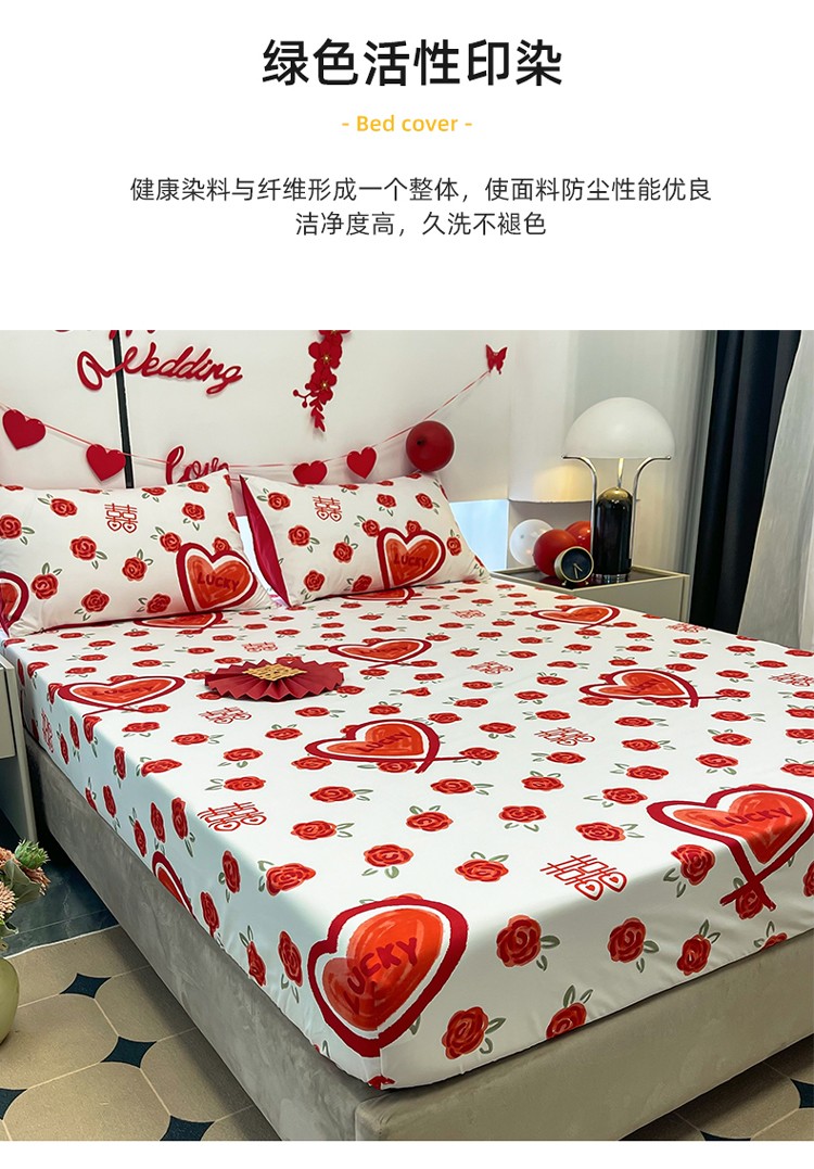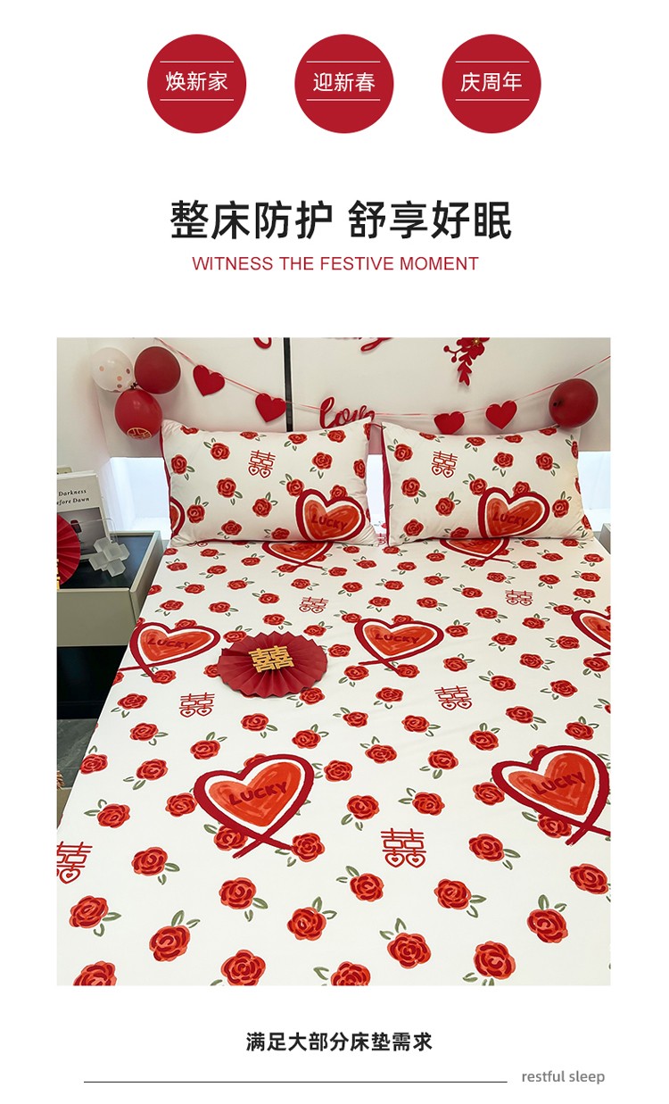 宏源 2023年新款大红时尚磨毛婚庆单床笠 心心相印