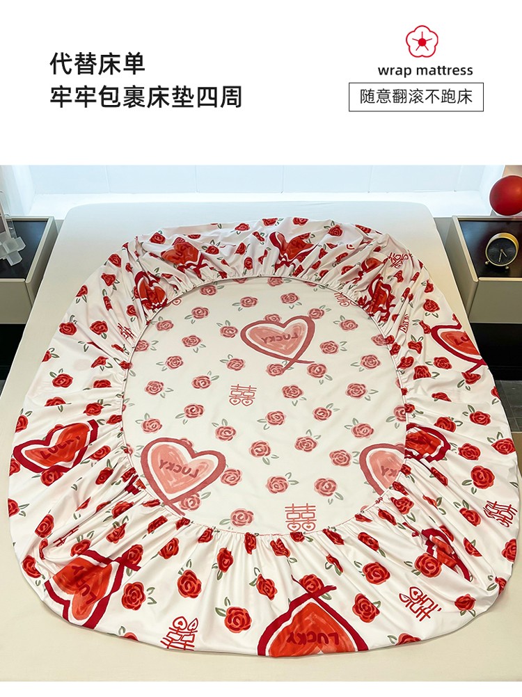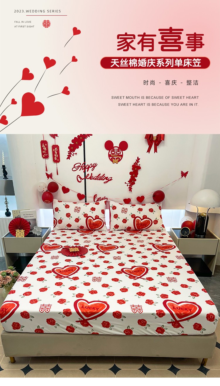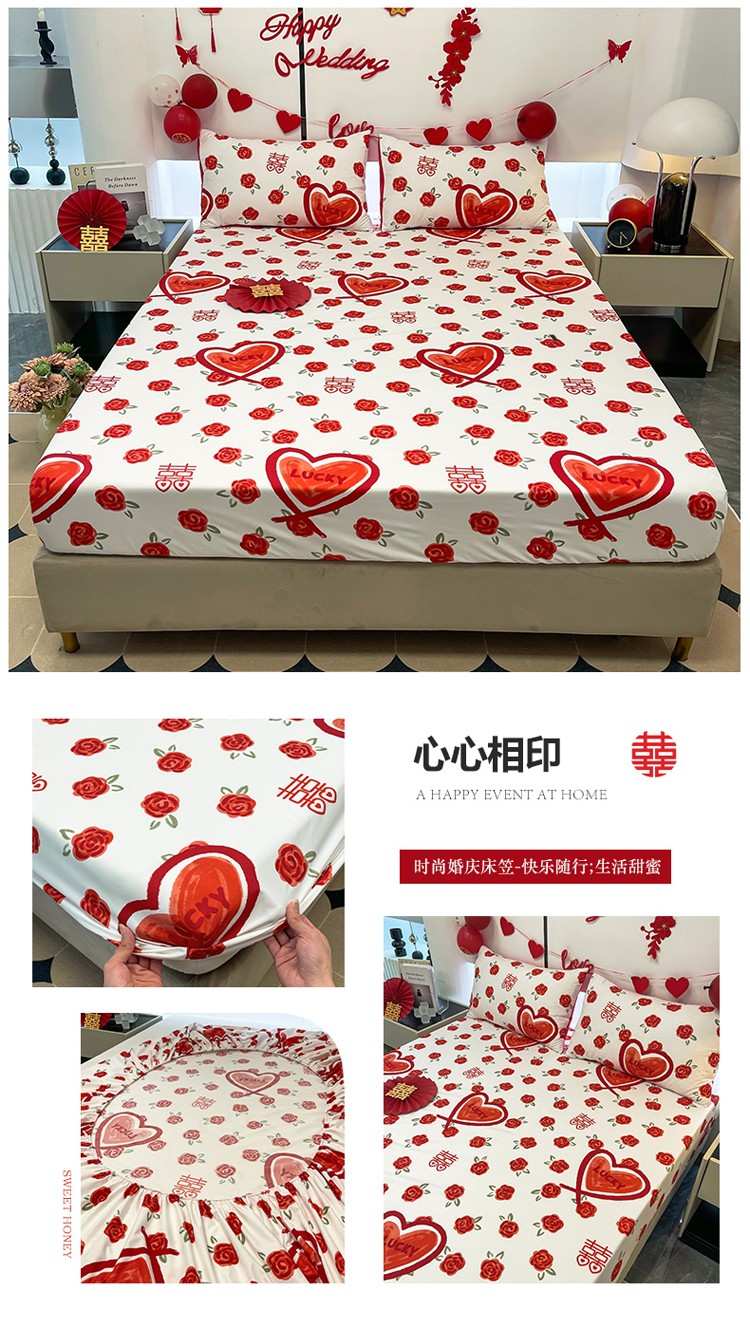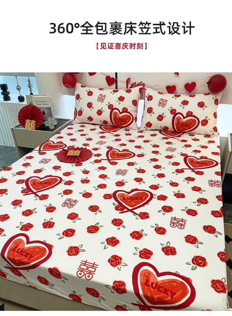宏源 2023年新款大红时尚磨毛婚庆单床笠 心心相印