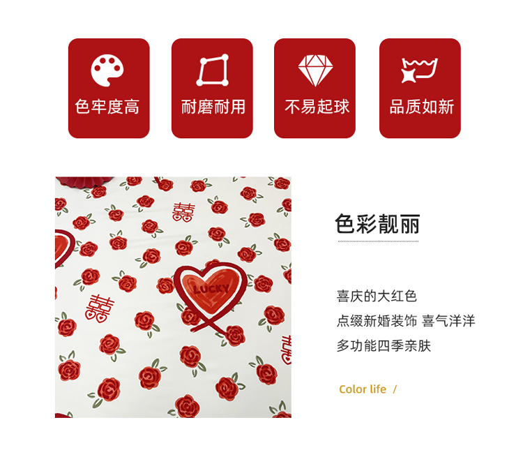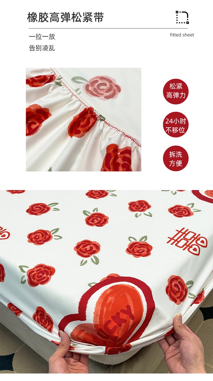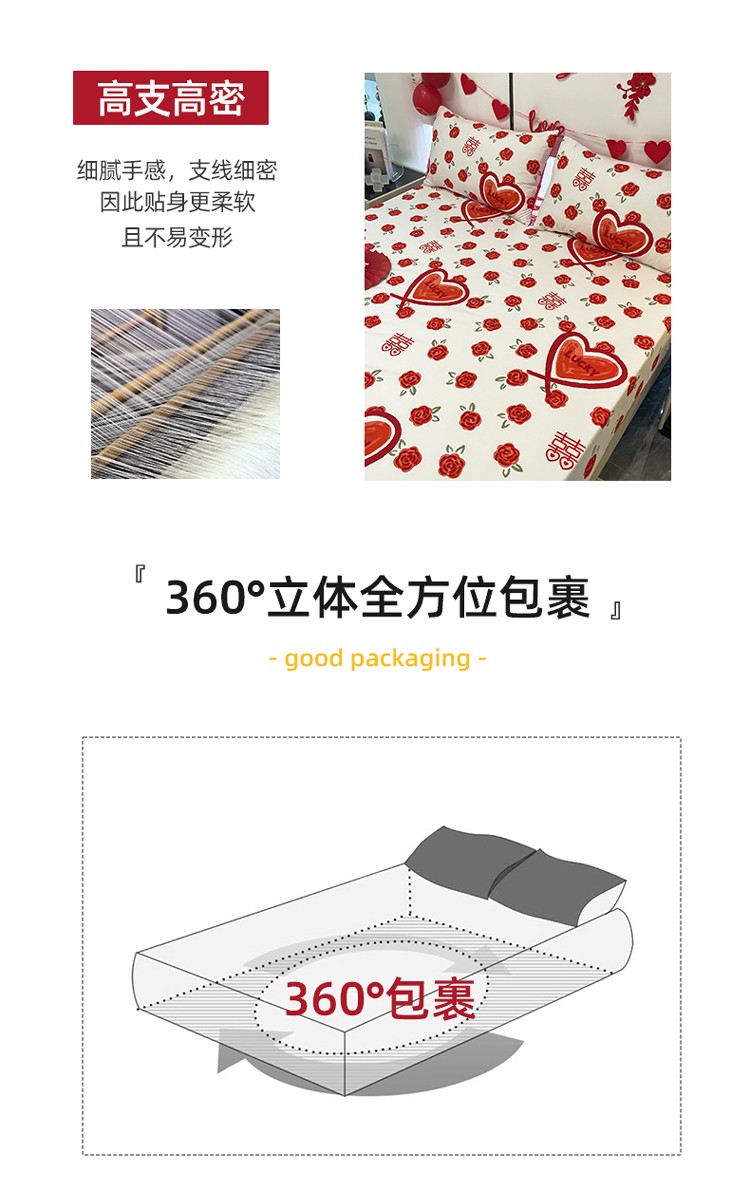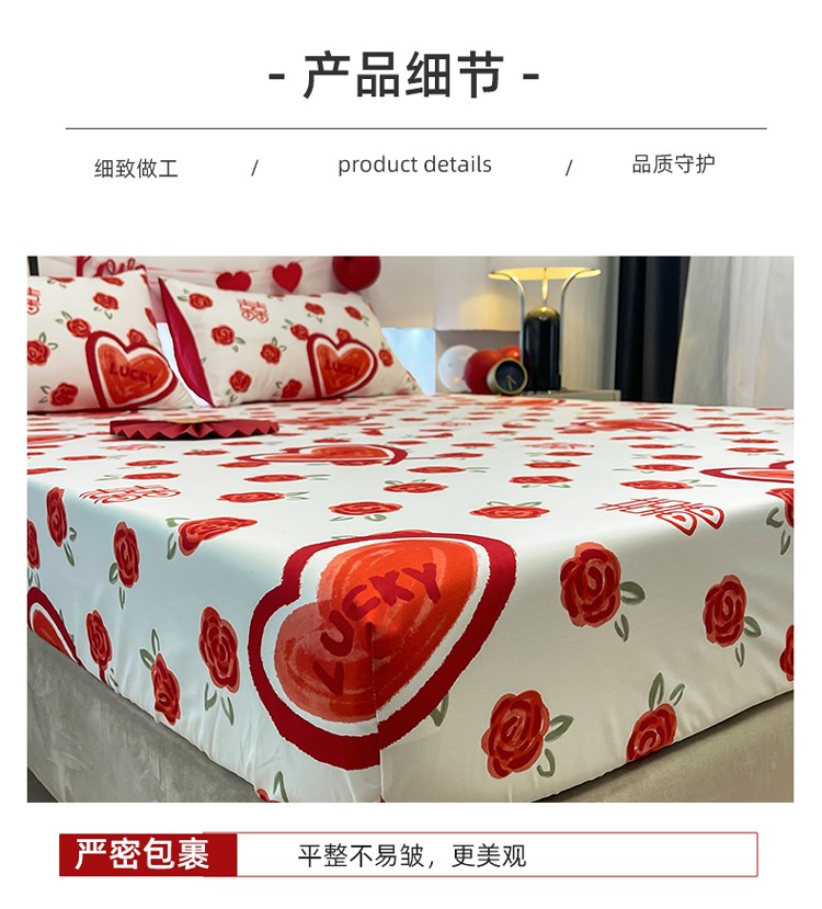 商品名称:宏源 2023年新款大红时尚磨毛婚庆单床笠 心心相印