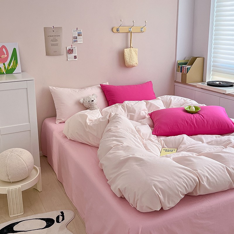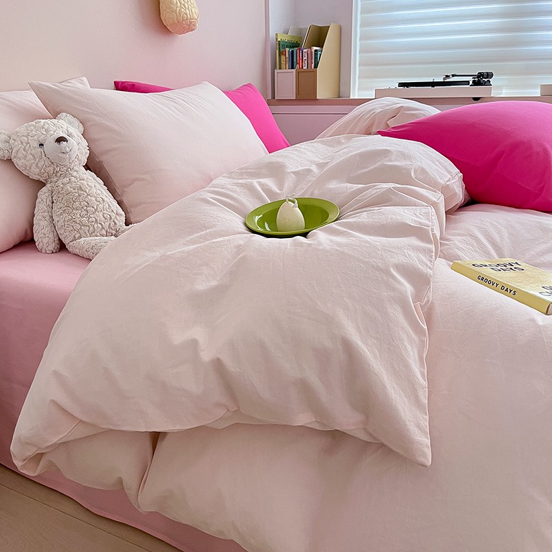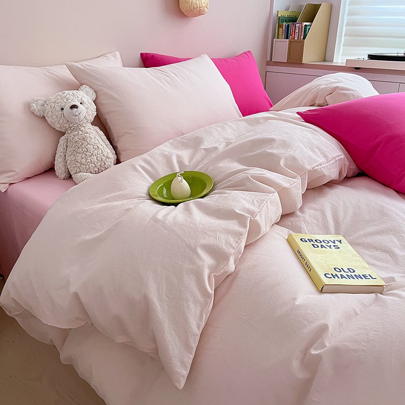当前位置: 91家纺网 > 商品网购 > 床品套件 > 四件套 > 全棉普通四件套 > 寐居 2023新款双拼全棉水洗棉纯色四件套 ins风-裸粉色