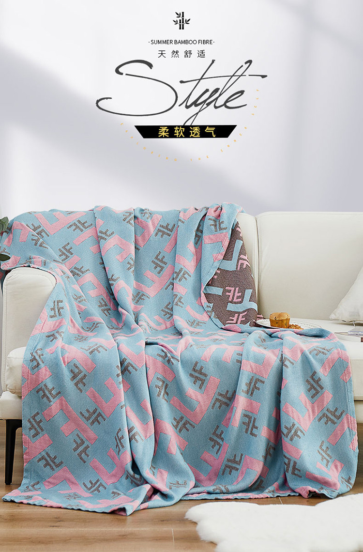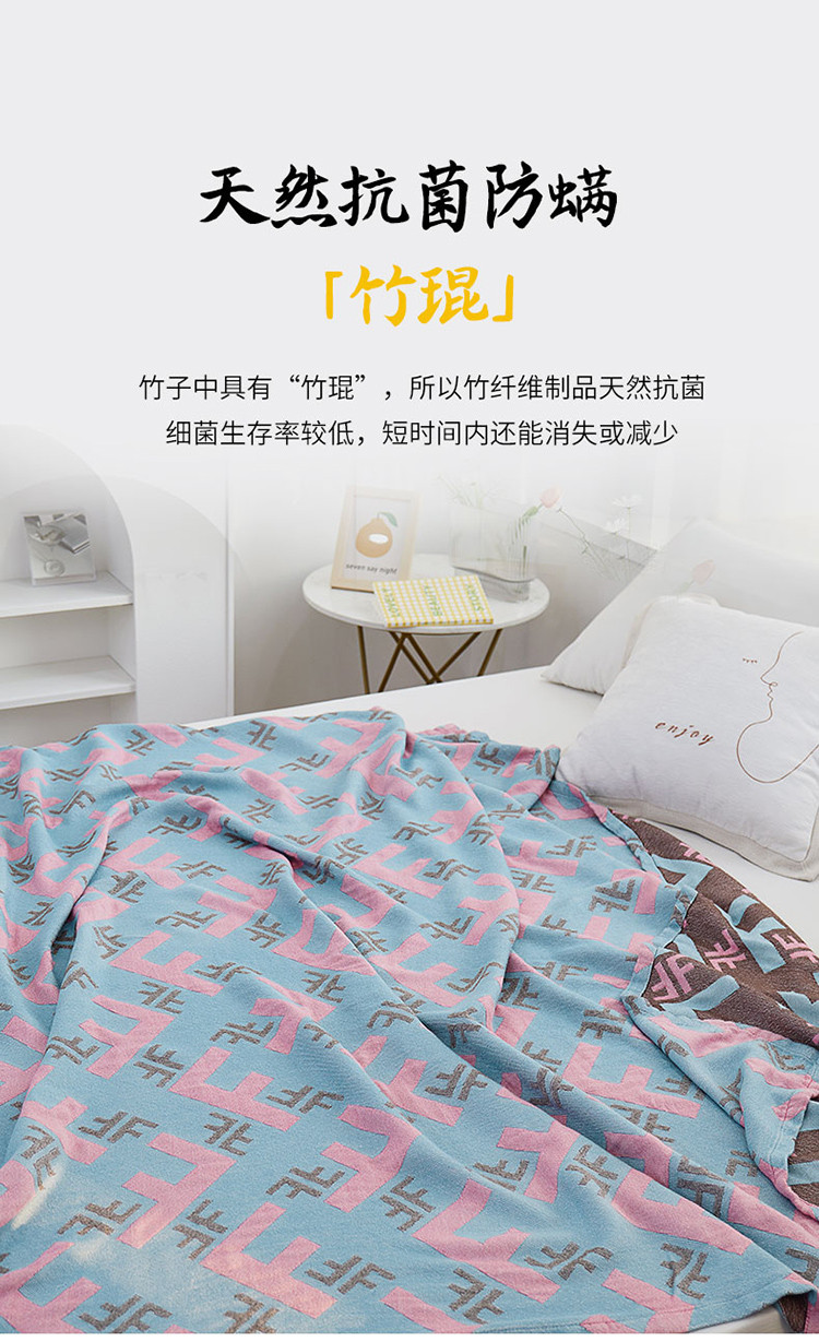 麻依 2023新款竹纤维毛巾被四层纱冷感毯夏凉被竹纤维 双F-灰蓝