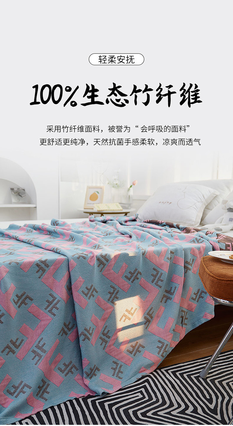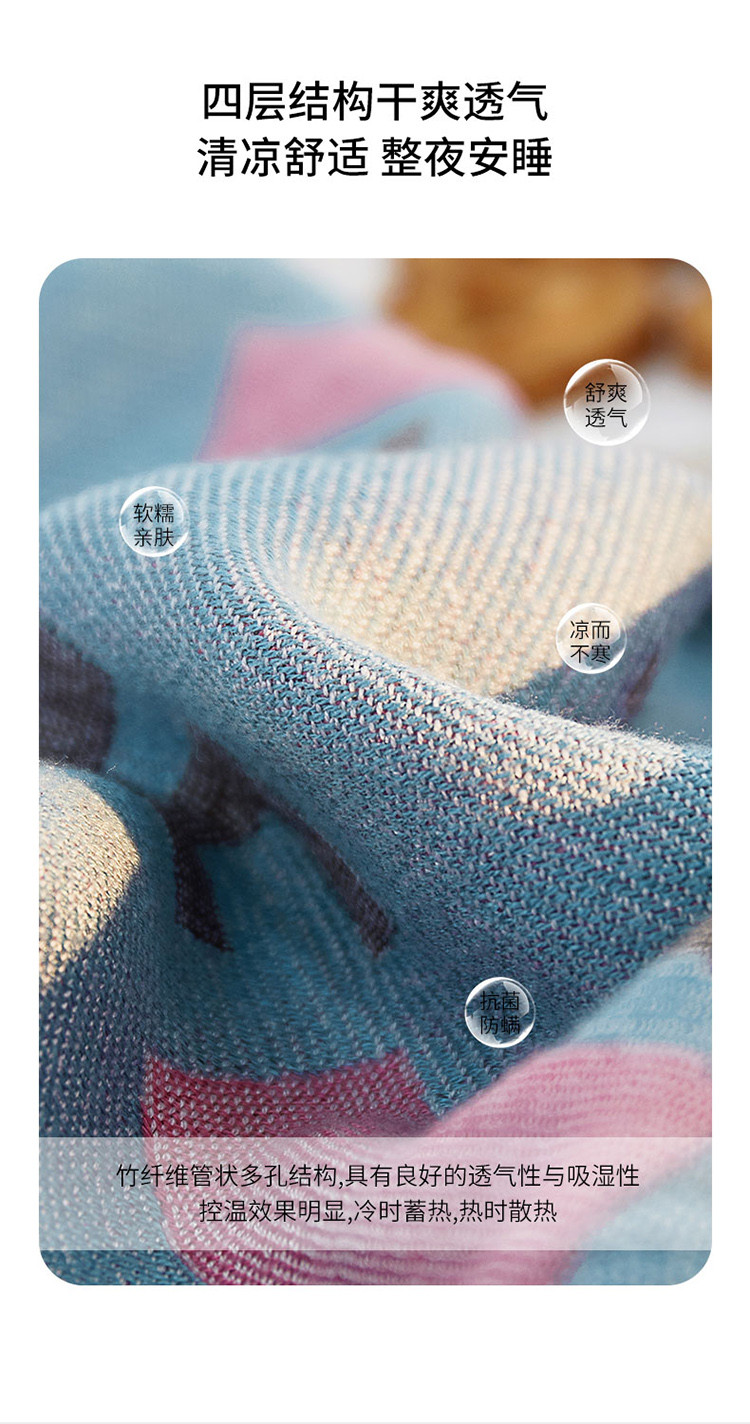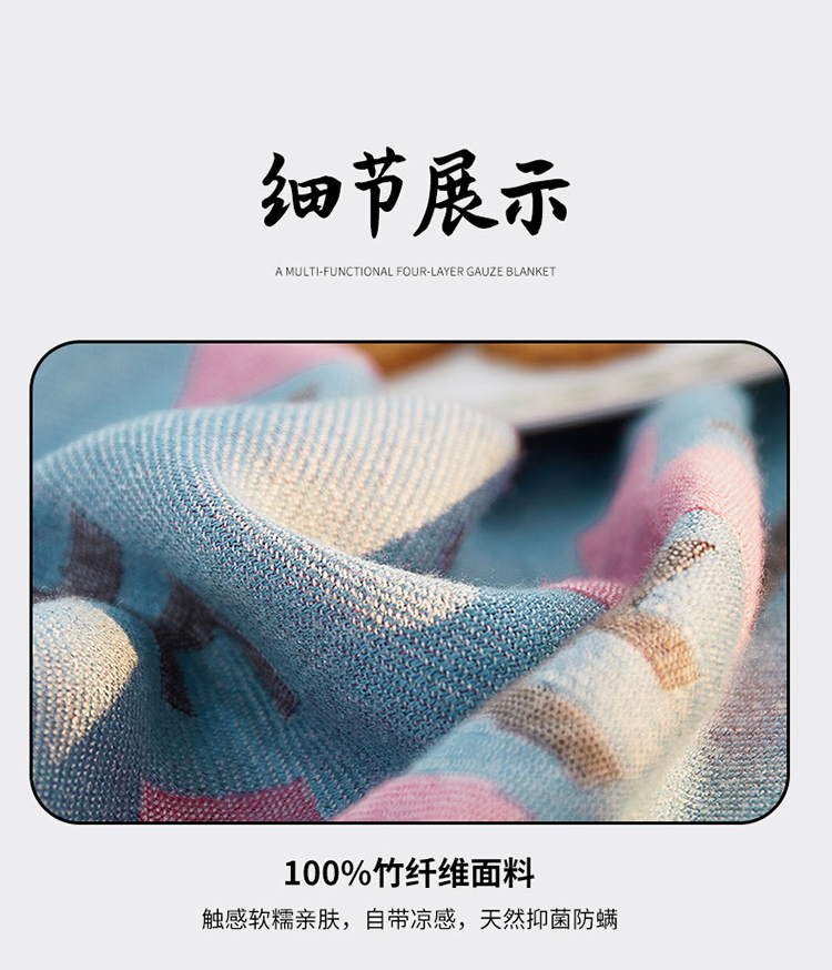 商品名称:麻依 2023新款竹纤维毛巾被四层纱冷感毯夏凉被竹纤维 双F-灰蓝