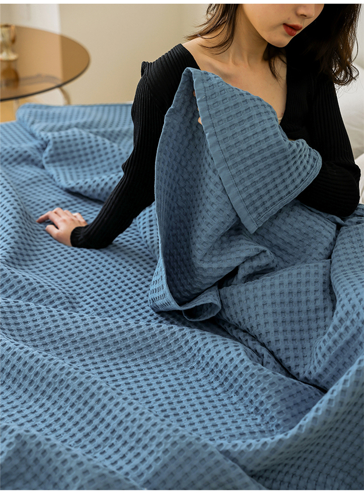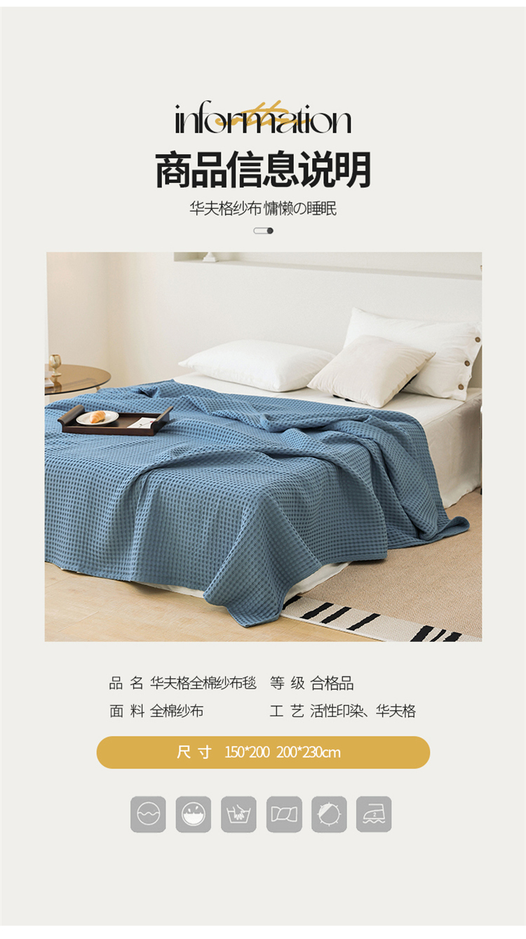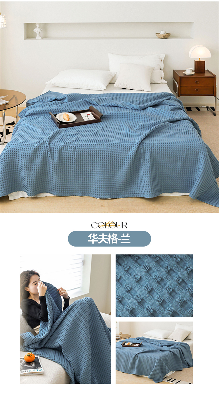 商品名称:雯雨家纺 2023新款华夫格纱布纯棉毛巾被 华夫格-兰