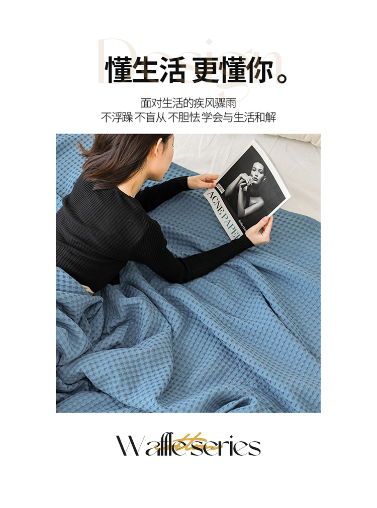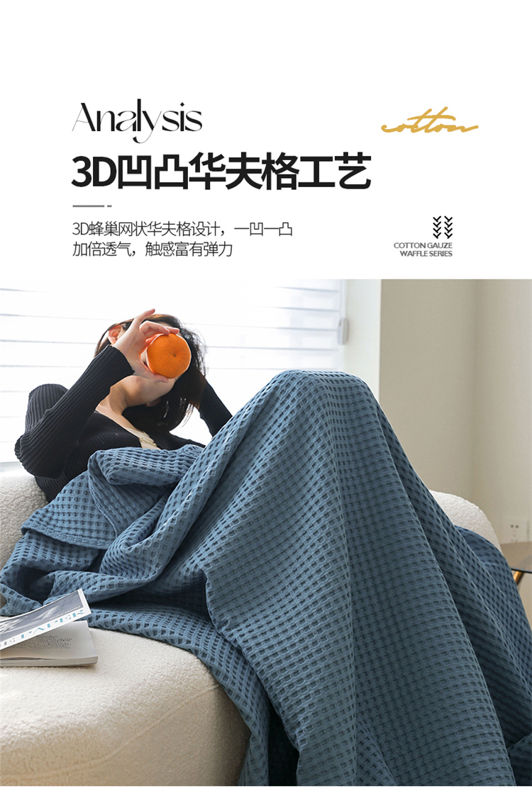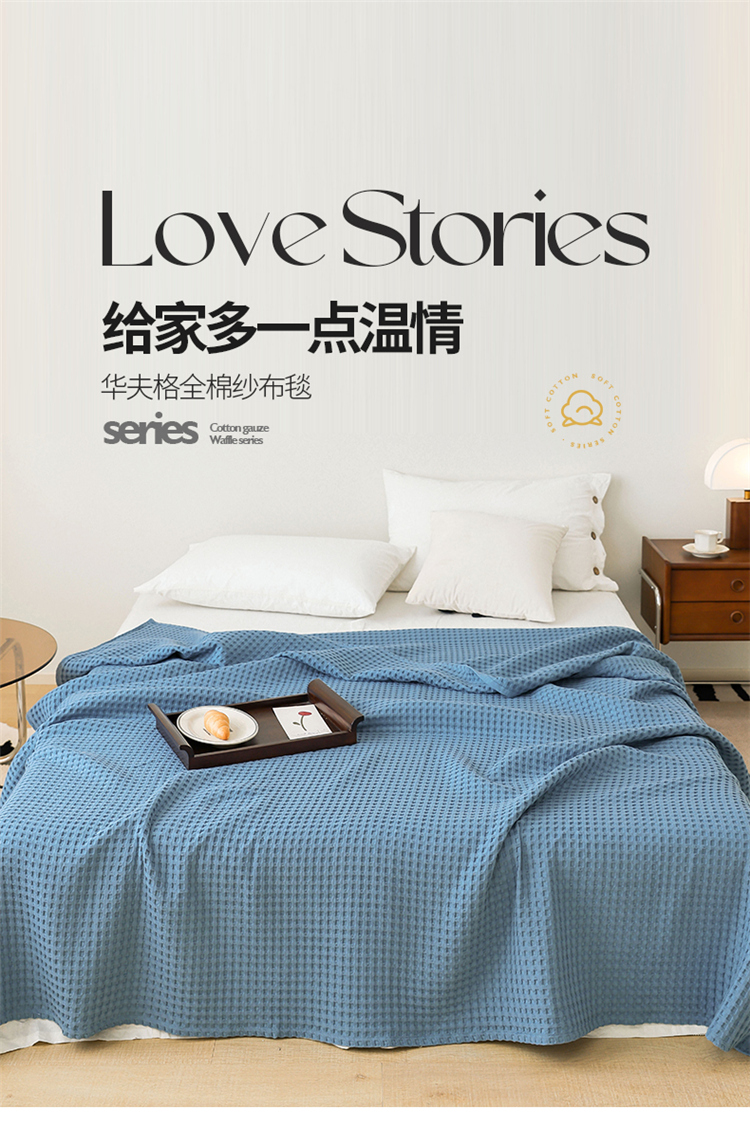 雯雨家纺 2023新款华夫格纱布纯棉毛巾被 华夫格-兰