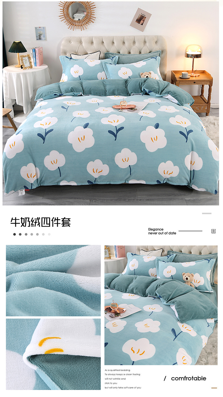 爱上家居 2023新款温暖亲肤加厚牛奶绒四件套 花语-浅蓝