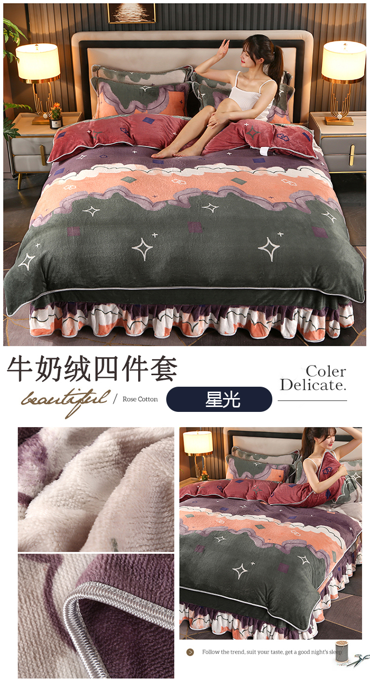 商品名称:爱上家居 2023新款保暖金貂绒印花保暖四件套 星光