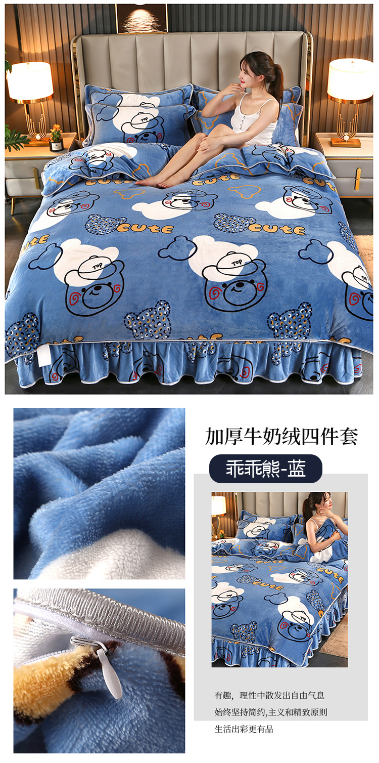 商品名称:爱上家居 2023新款加厚牛奶金貂绒四件套 乖乖熊-蓝
