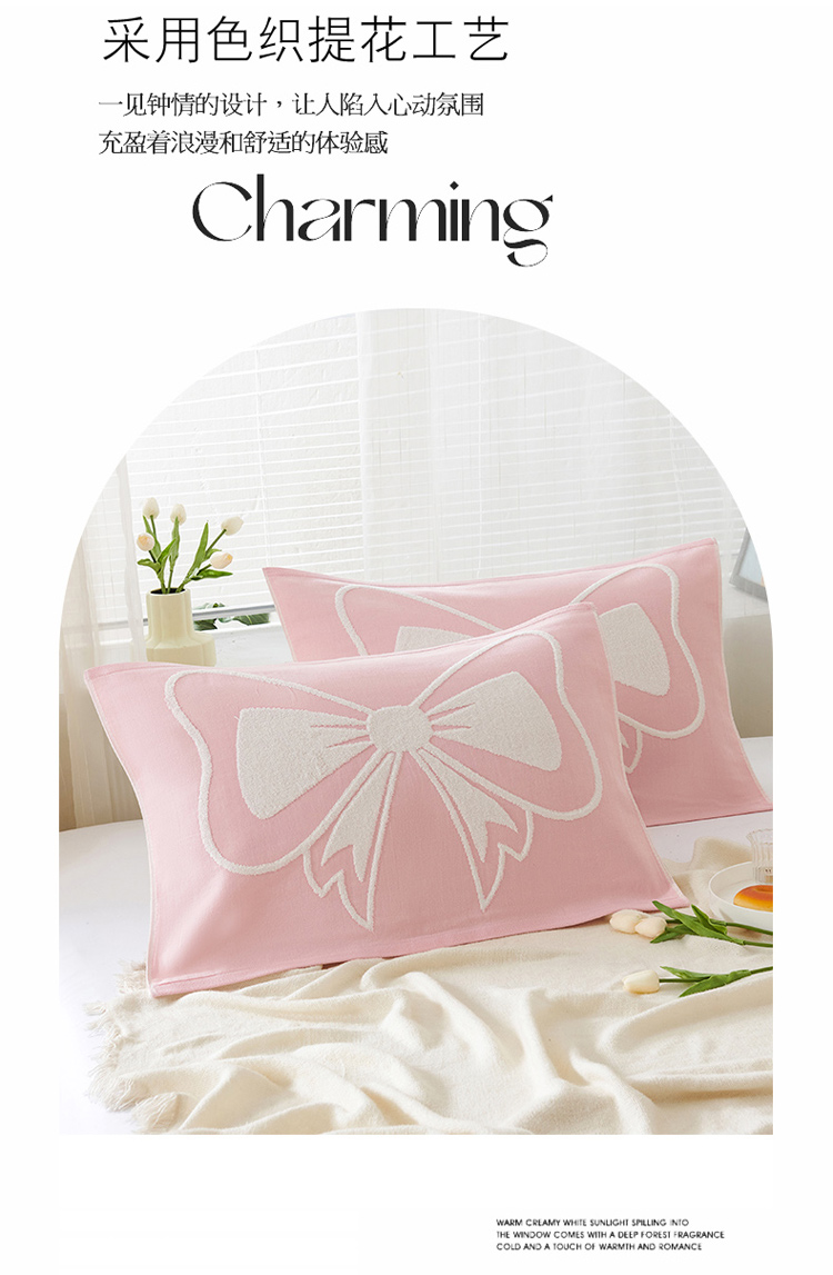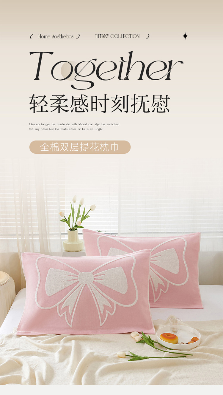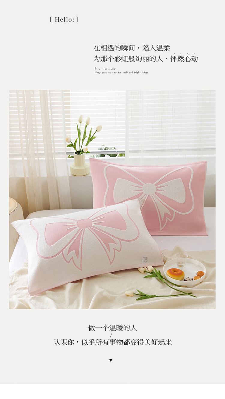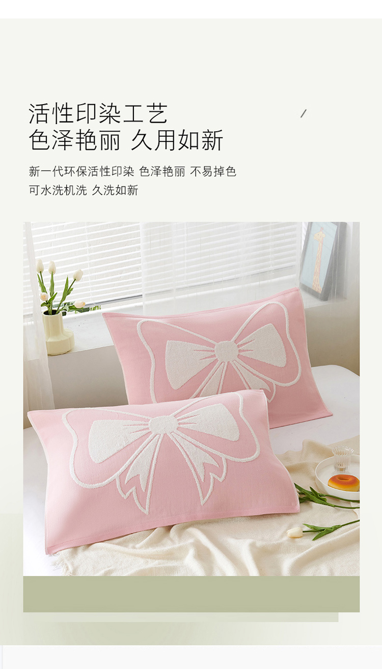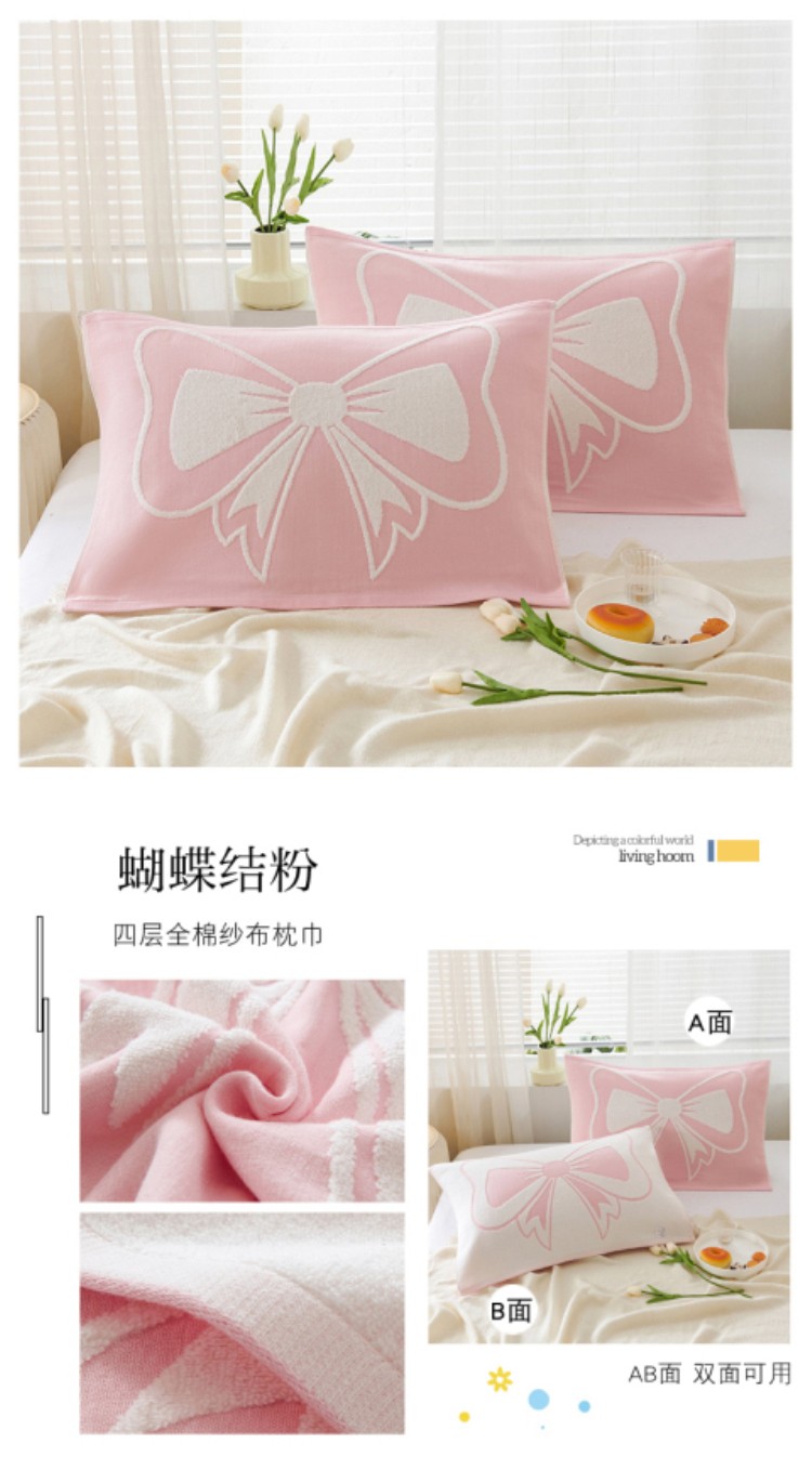 当前位置: 91家纺网 > 商品网购 > 居家日用 > 毛巾/浴巾/浴袍 > 浴巾方巾毛巾套件 > 棠薇家纺 2023新款全棉双层枕巾纱布款 双层款 蝴蝶结粉52*75cm/对