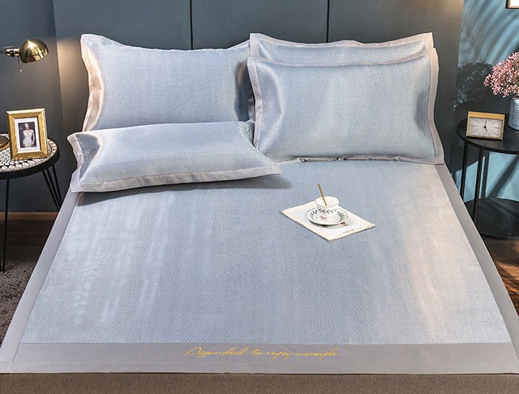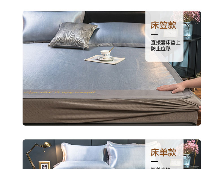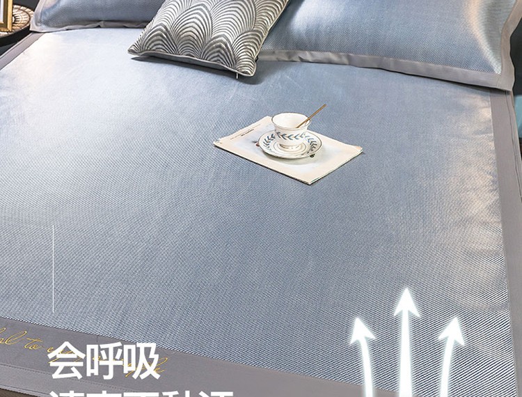 (总)印季家纺 2025新款轻奢简约凉感丝泡泡席-格调凉席,藏蓝,米黄,墨绿,浅粉,银灰