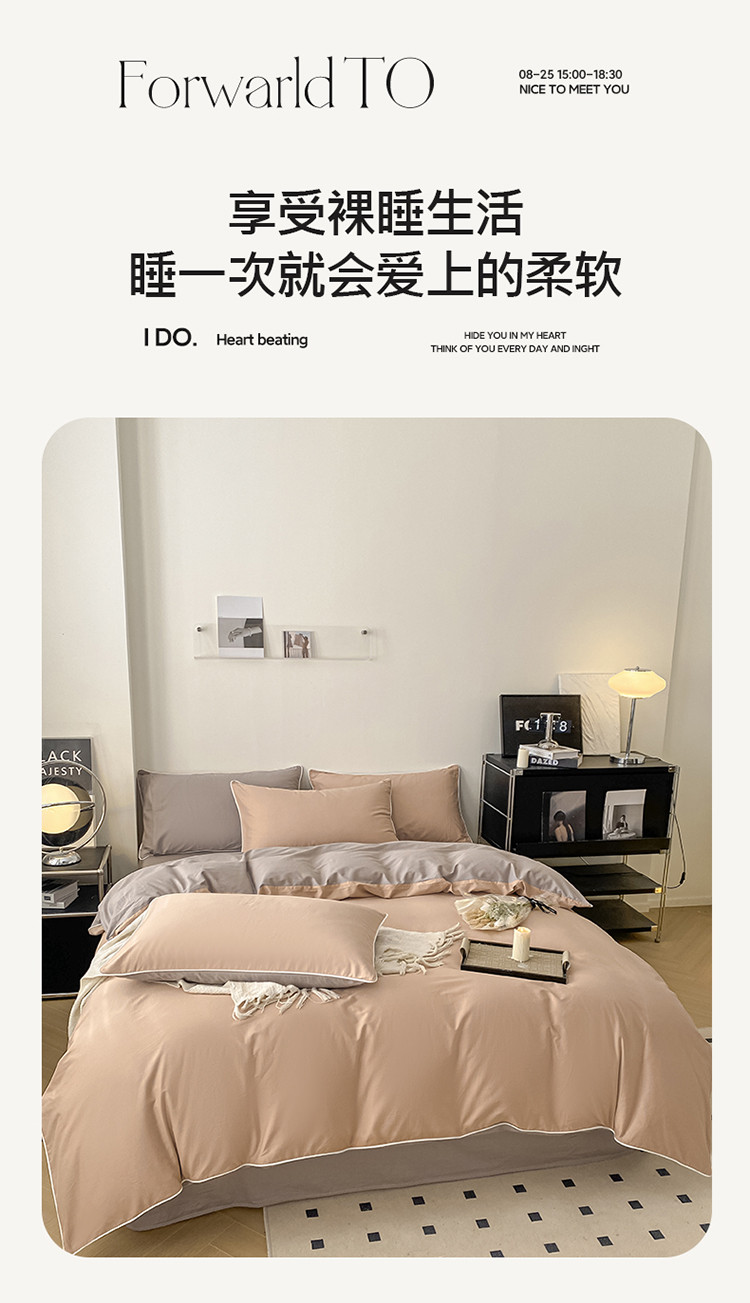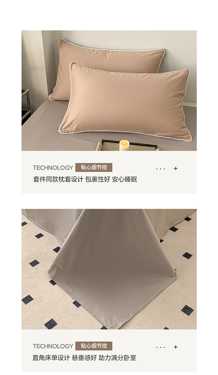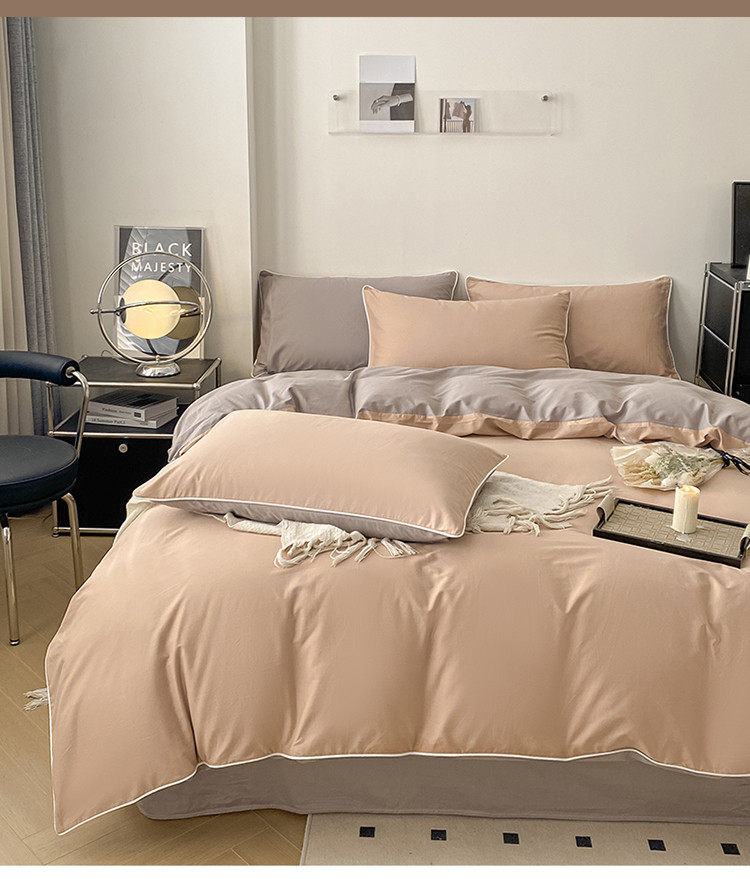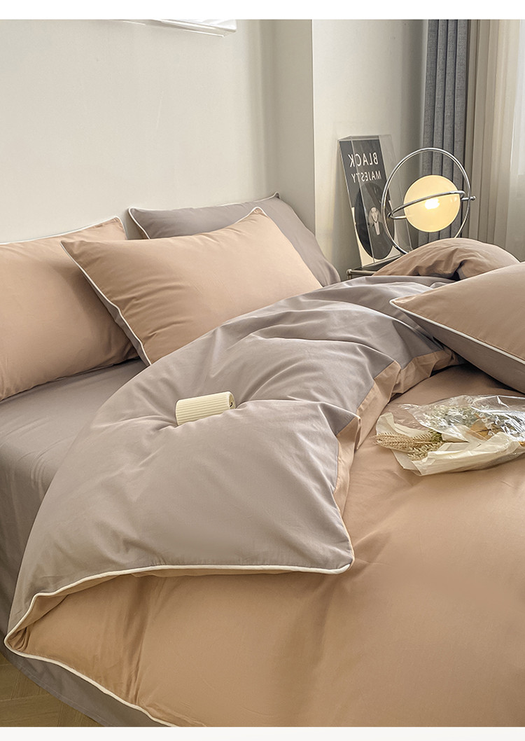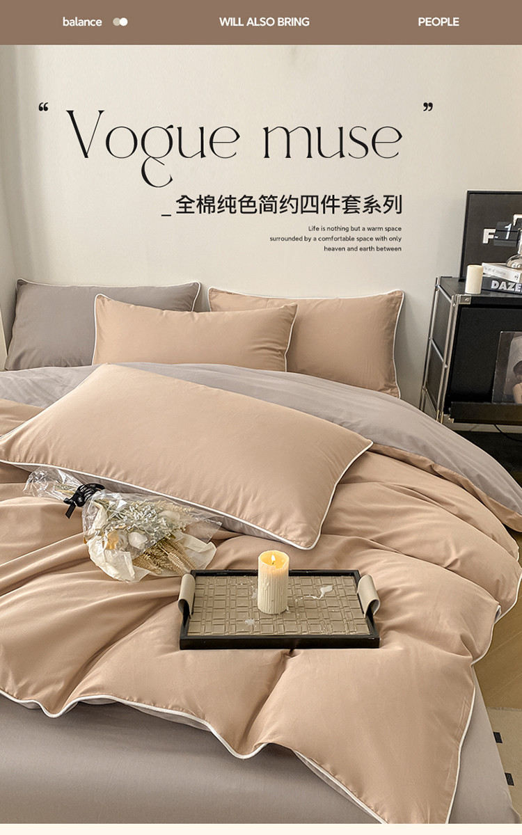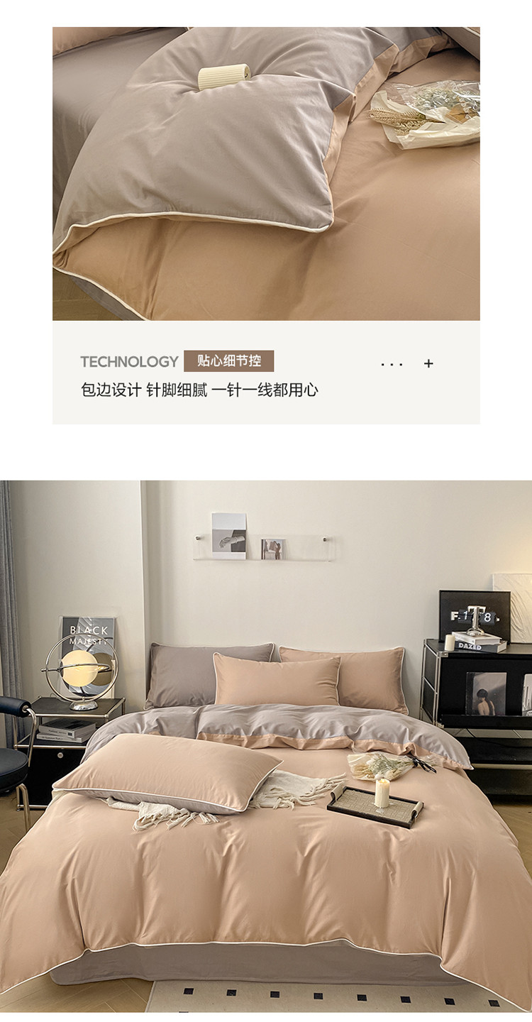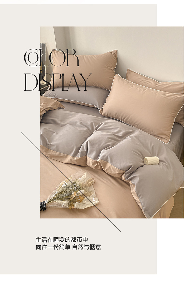 商品名称:万盛家纺 2025新款全棉纯棉纯色拼色简约四件套 豆沙-浅灰
