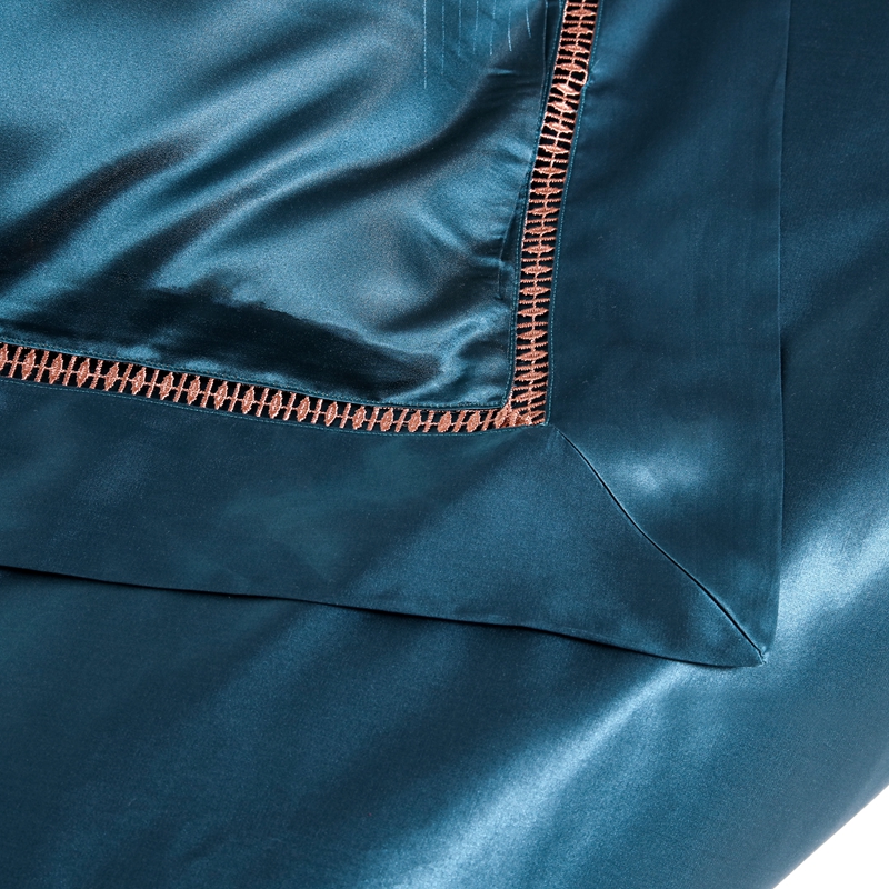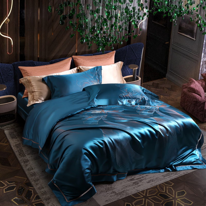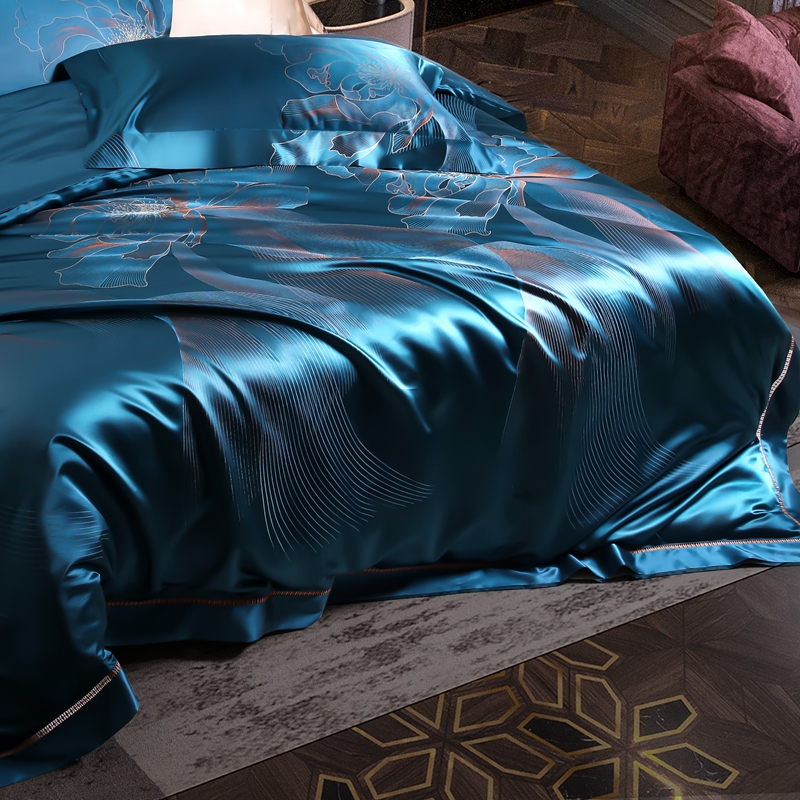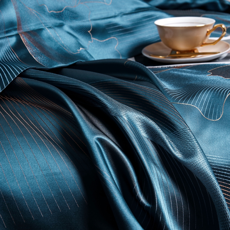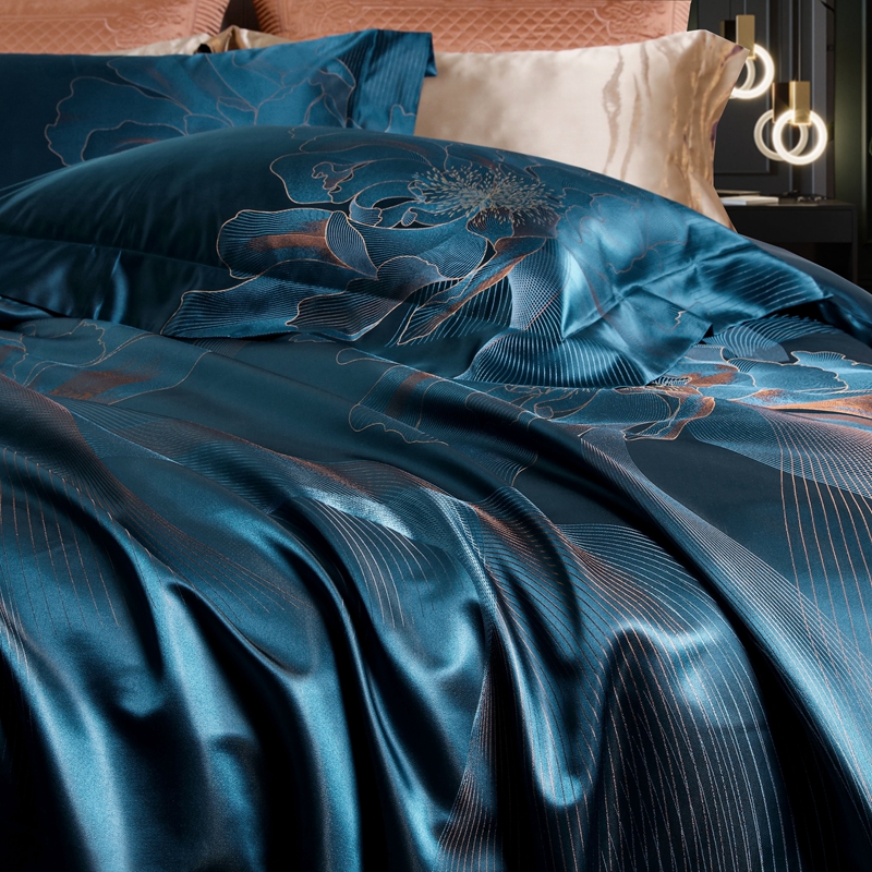 晋瑞 2023新款色织全真丝四件套 花舞飞扬雀蓝