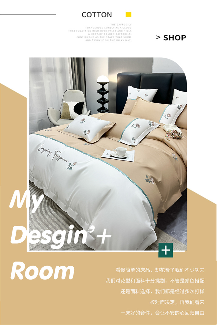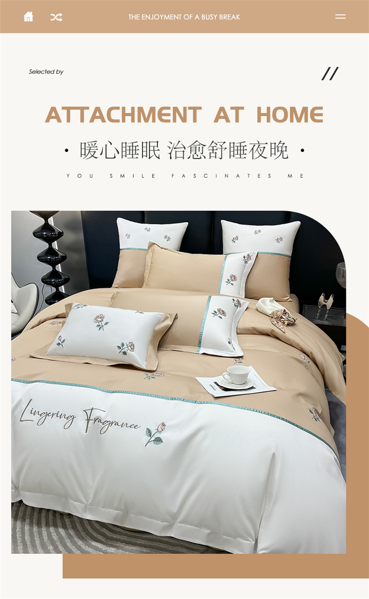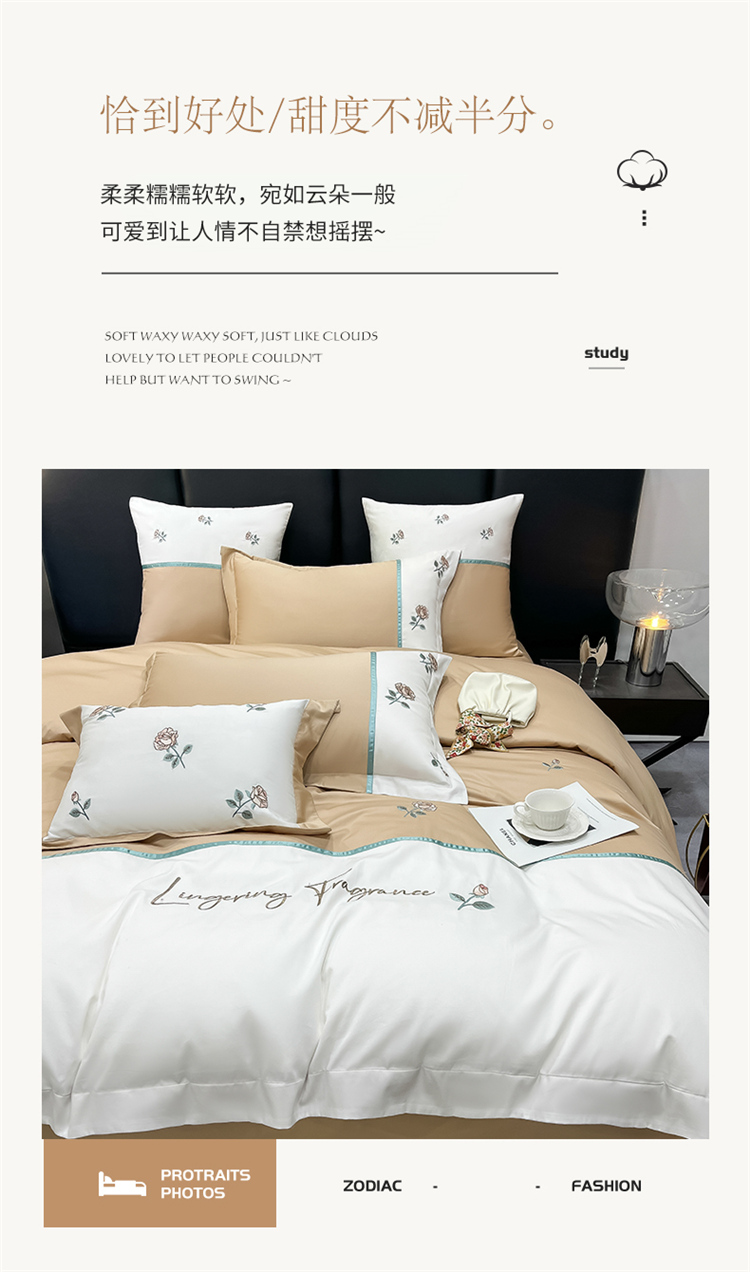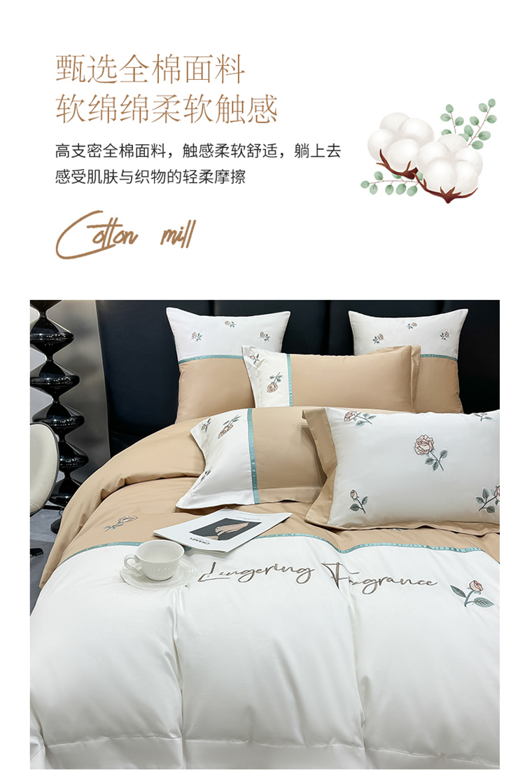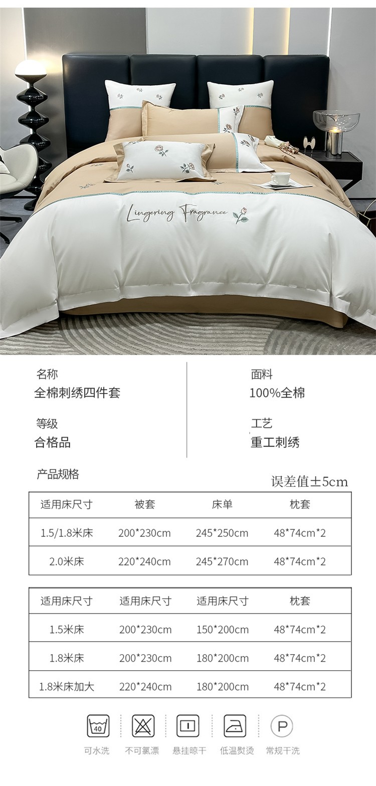当前位置: 91家纺网 > 商品网购 > 床品套件 > 四件套 > 全棉普通四件套 > 家居1号 2024新款13376全棉重工刺绣四件套-轻奢玫瑰 轻奢玫瑰-卡其