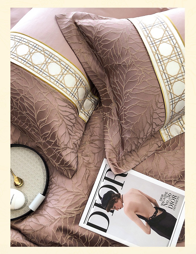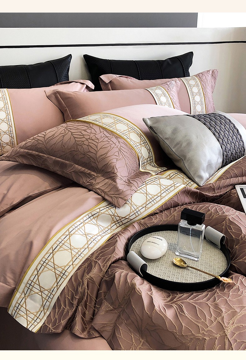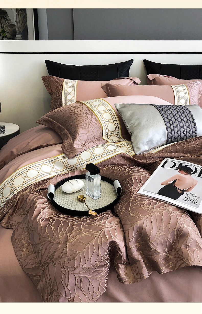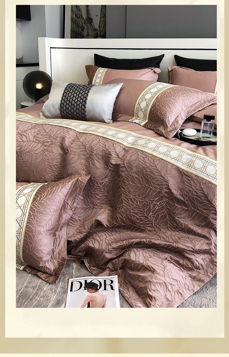 商品名称:罗优2025新款罗浮宫印象高精密浮雕高支长绒棉四件套金枝玉叶烟粉色
