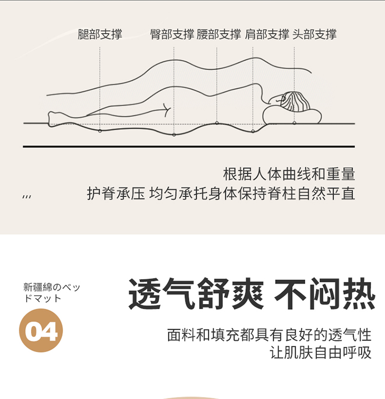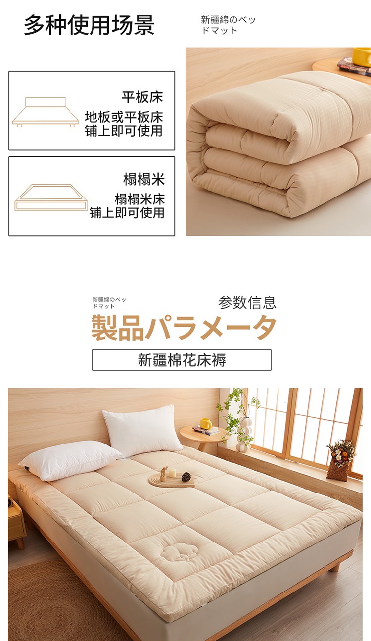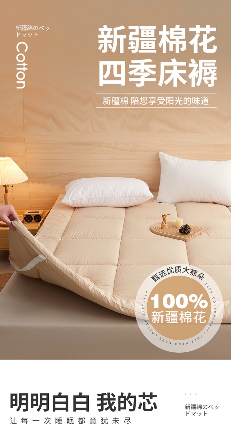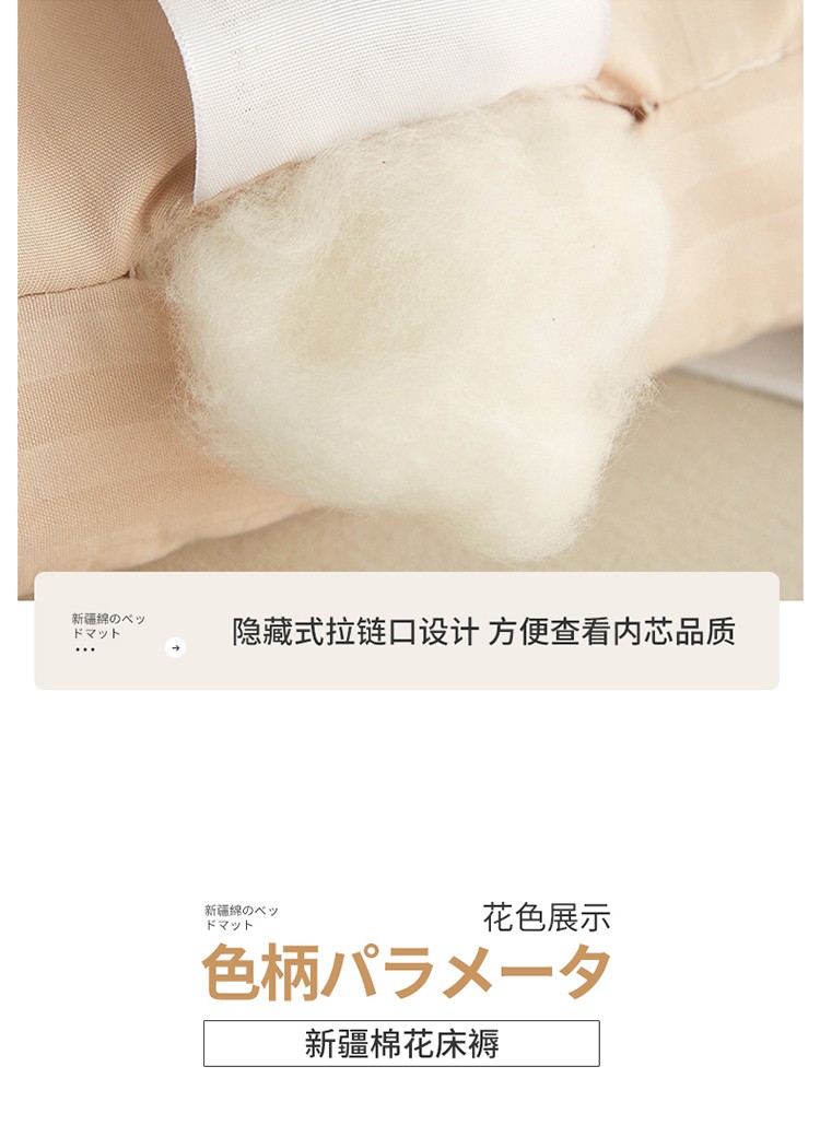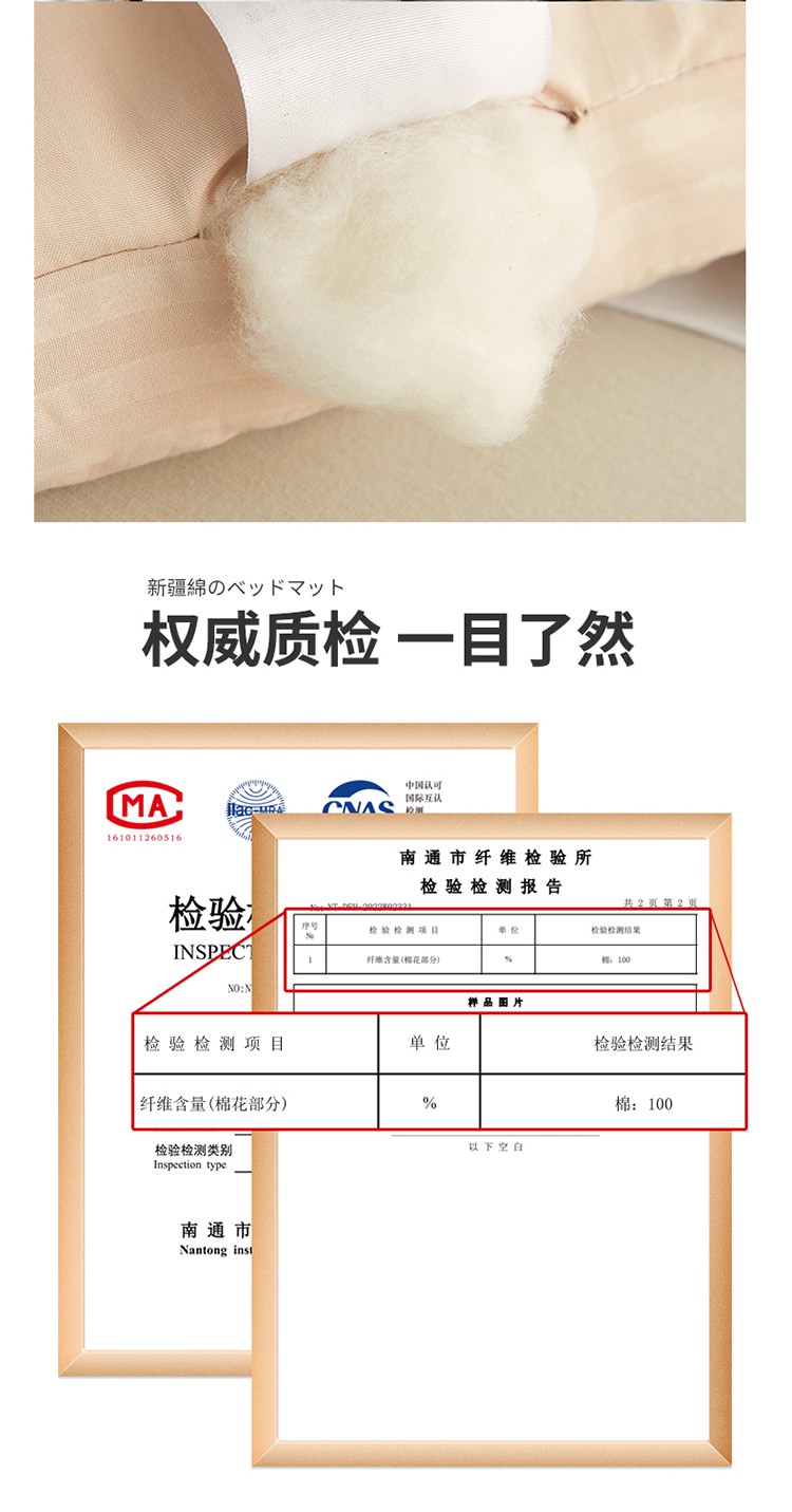 100%新疆棉花全棉棉花床垫软垫棉絮垫子床褥垫子学生单人垫被全棉包检测,米色