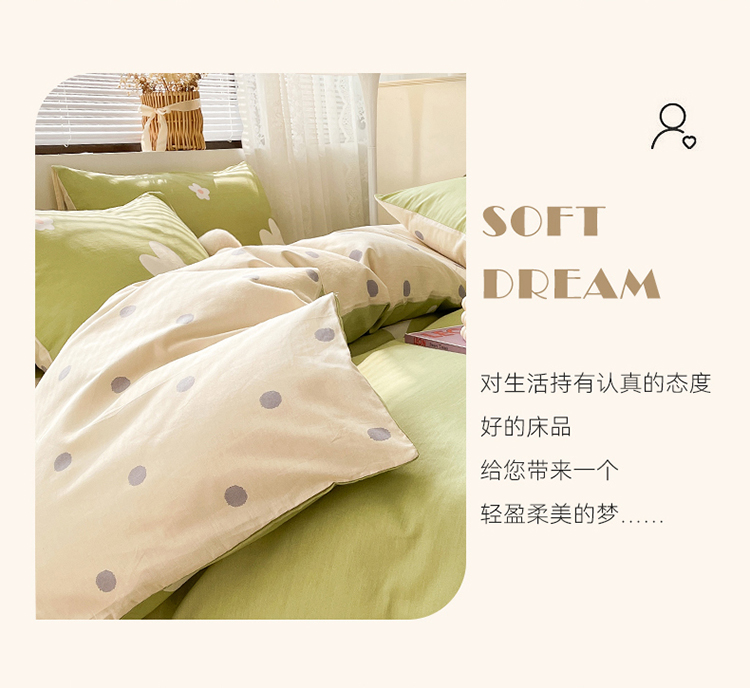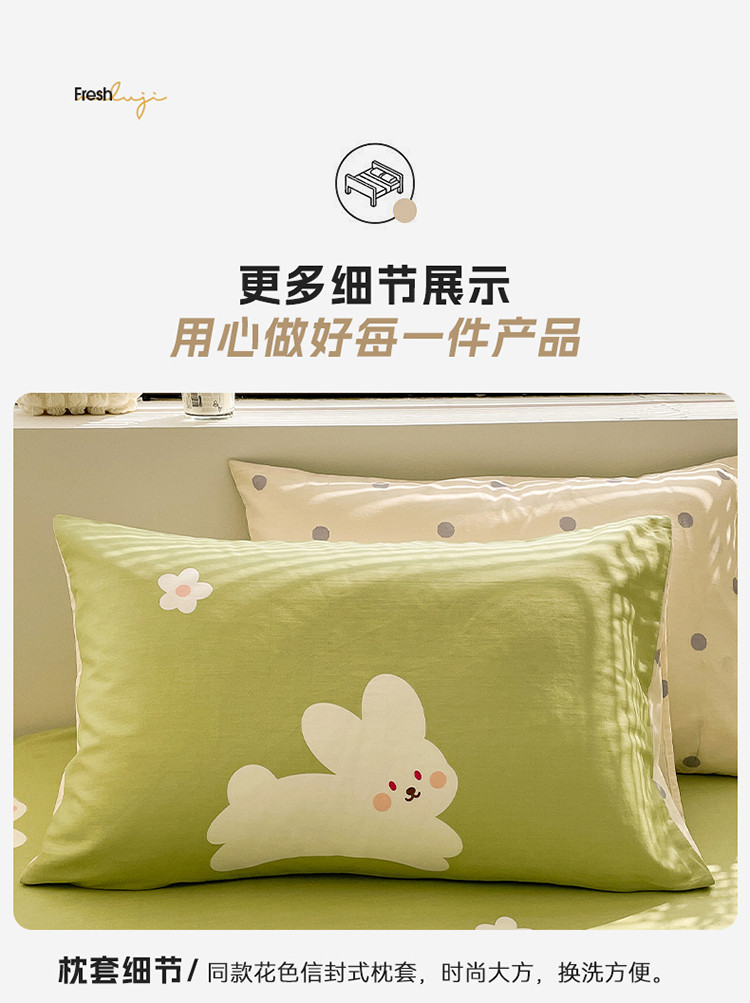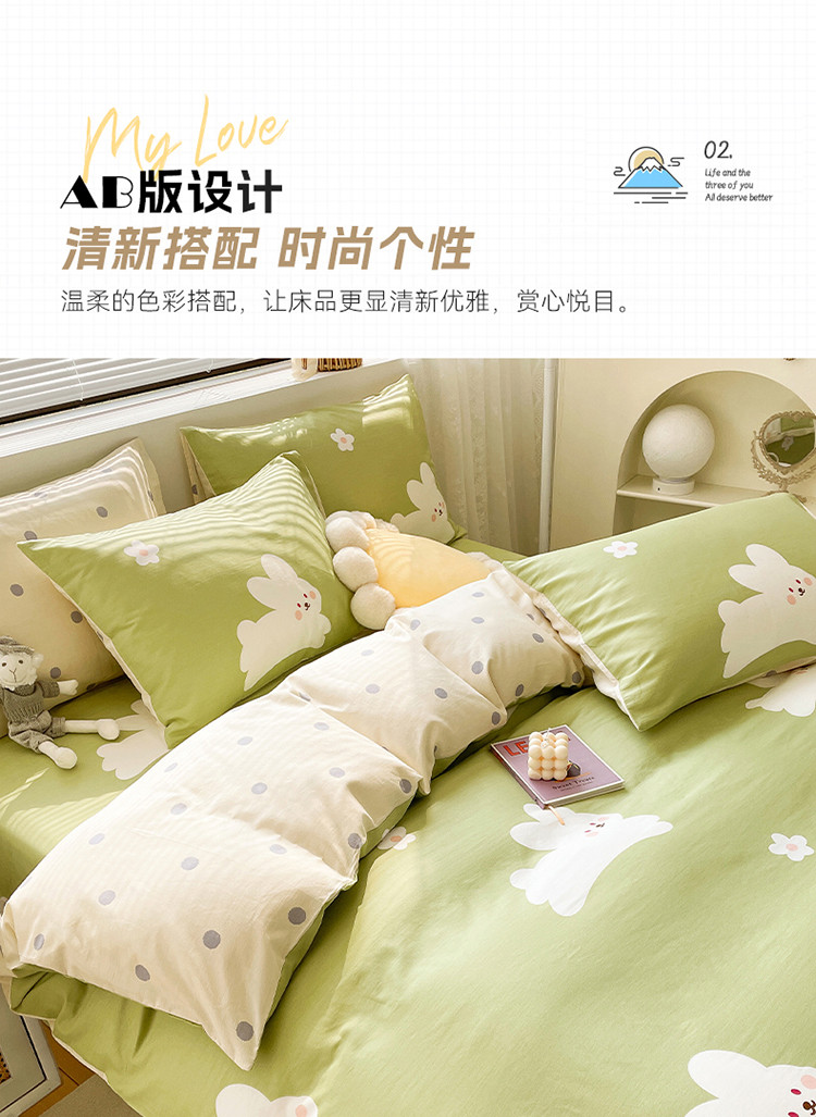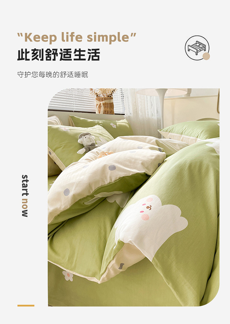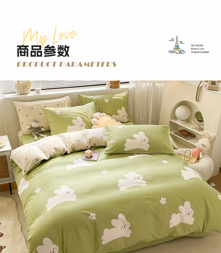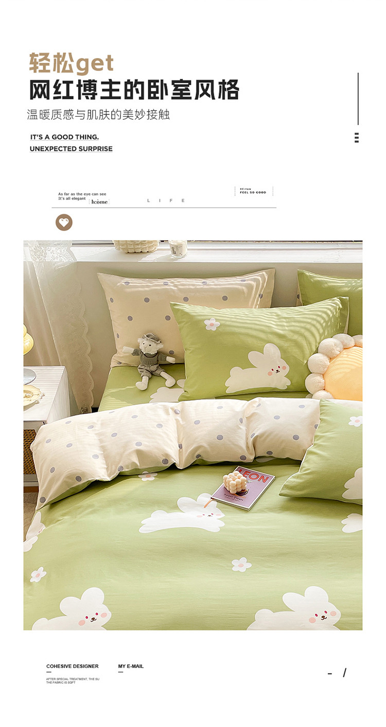商品名称:绵庭 2023新款12868全棉ins小清新印花四件套 萌萌兔-绿