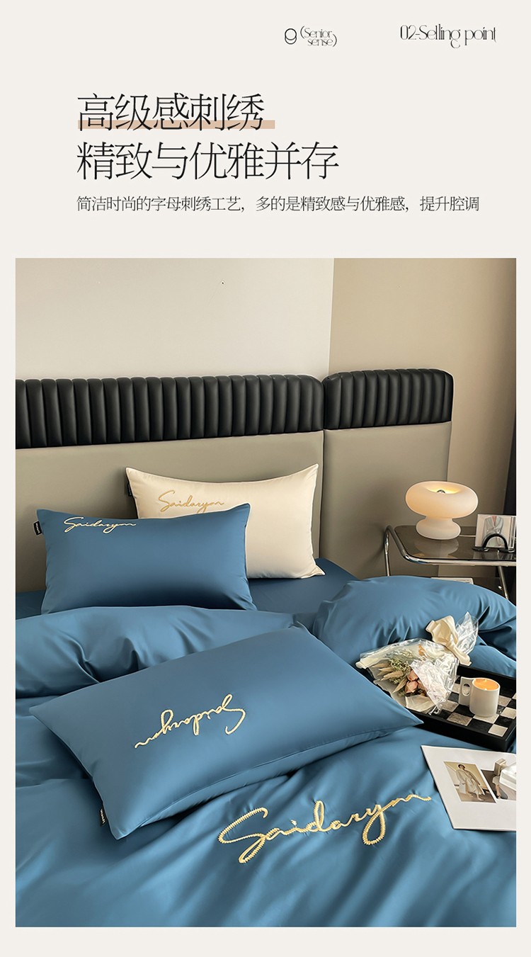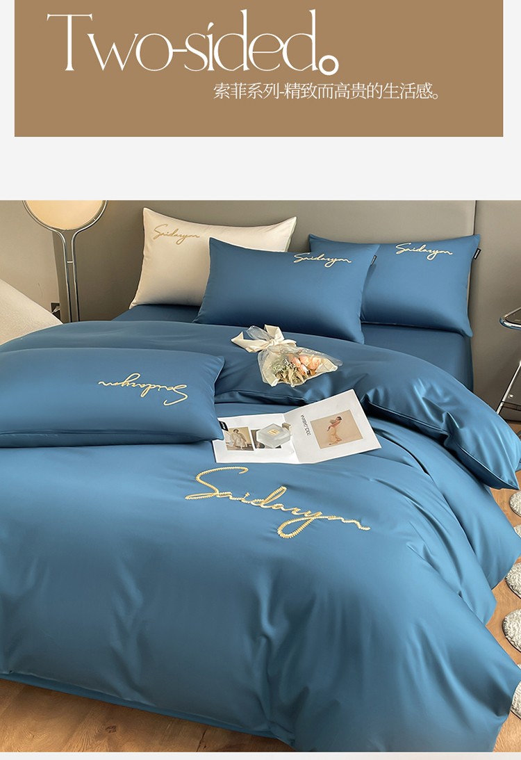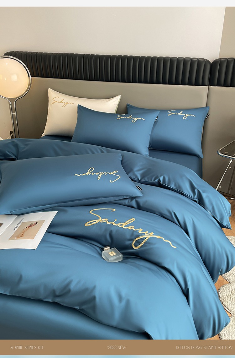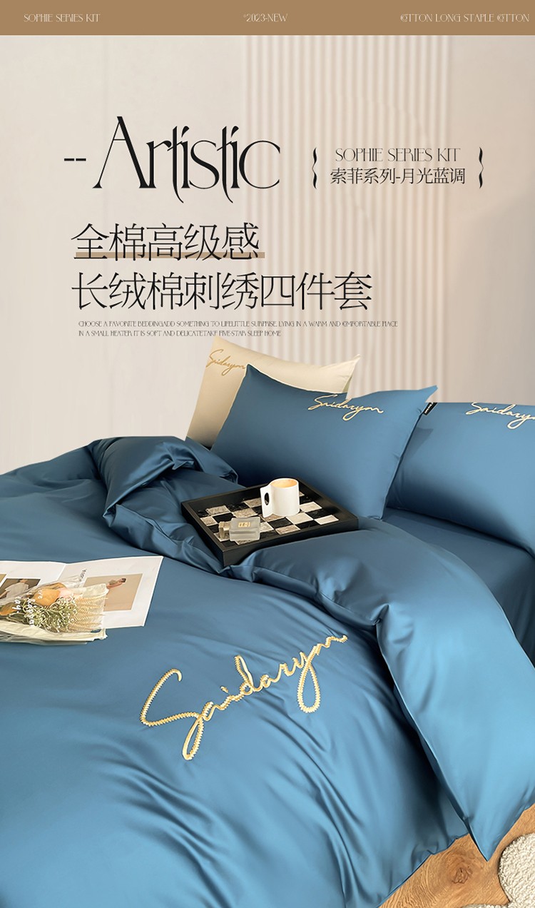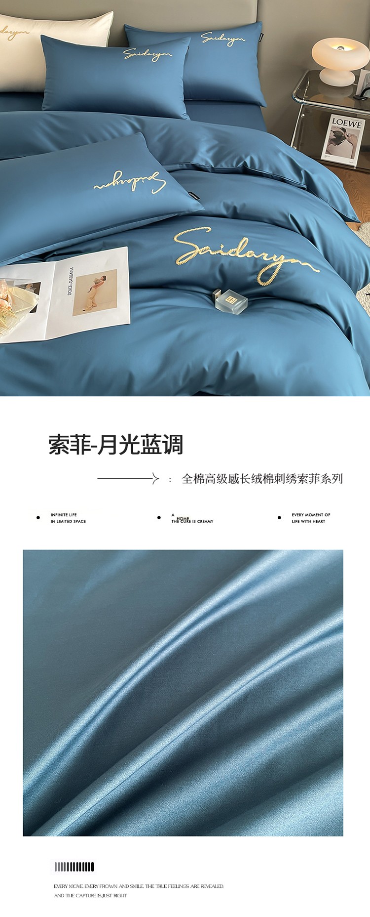 蓝米卡夫 2024全棉高级感长绒棉刺绣索菲系列-四件套 索菲-月光蓝调