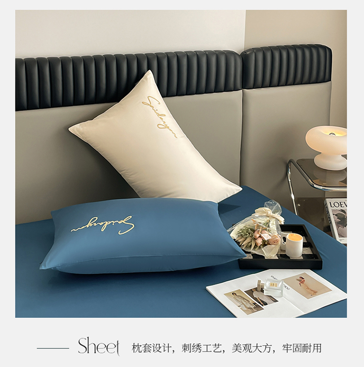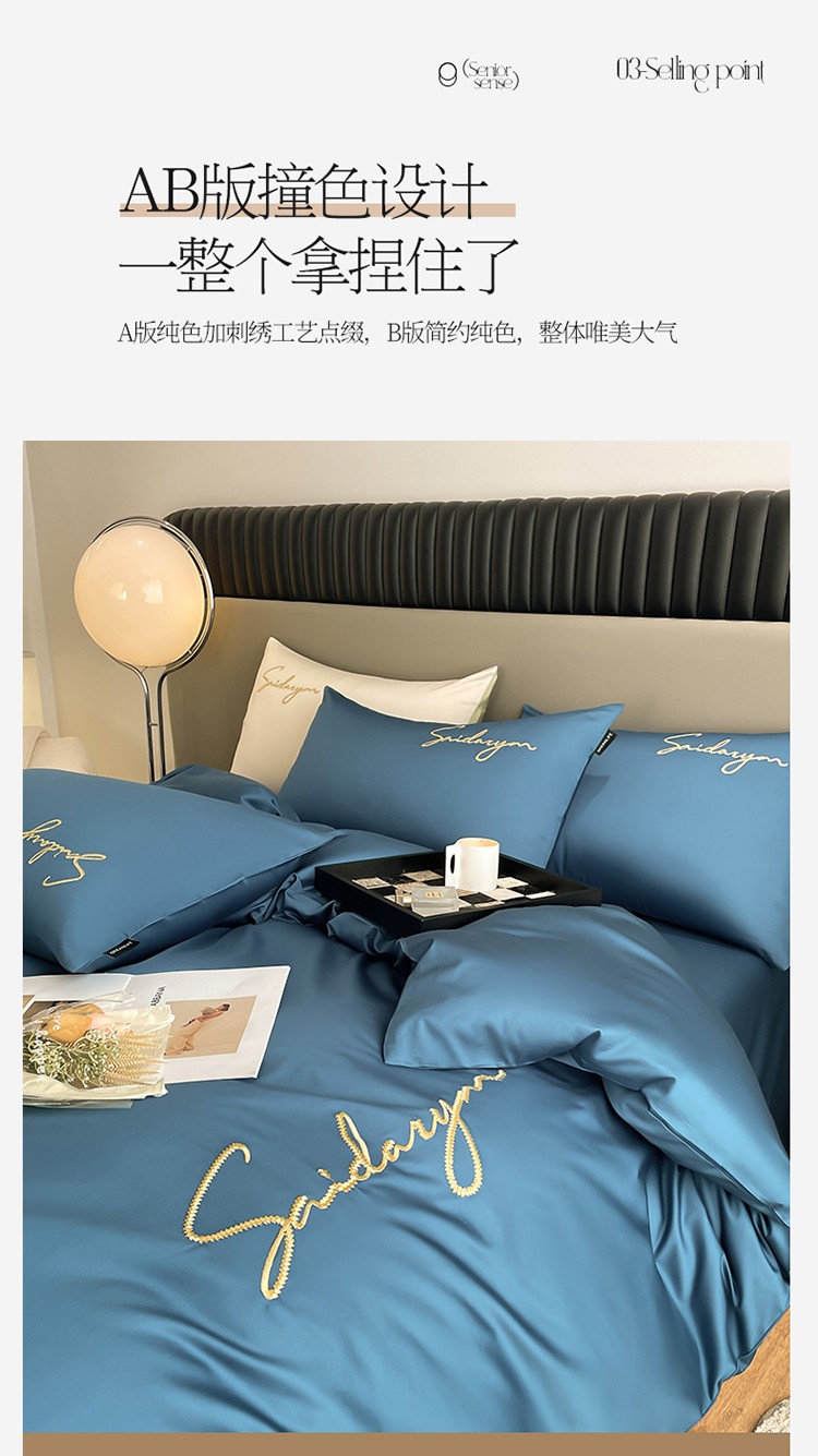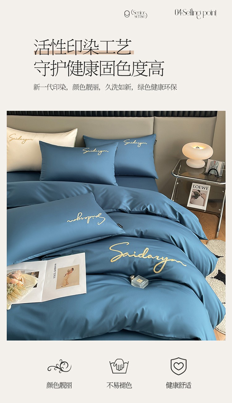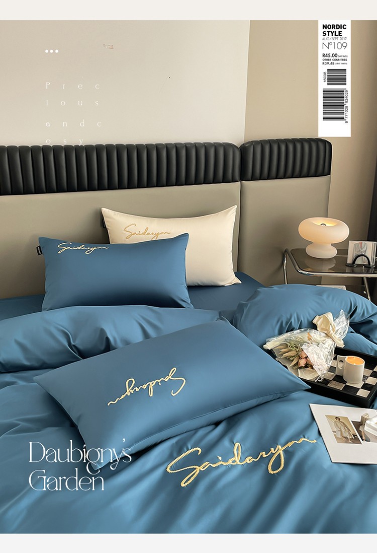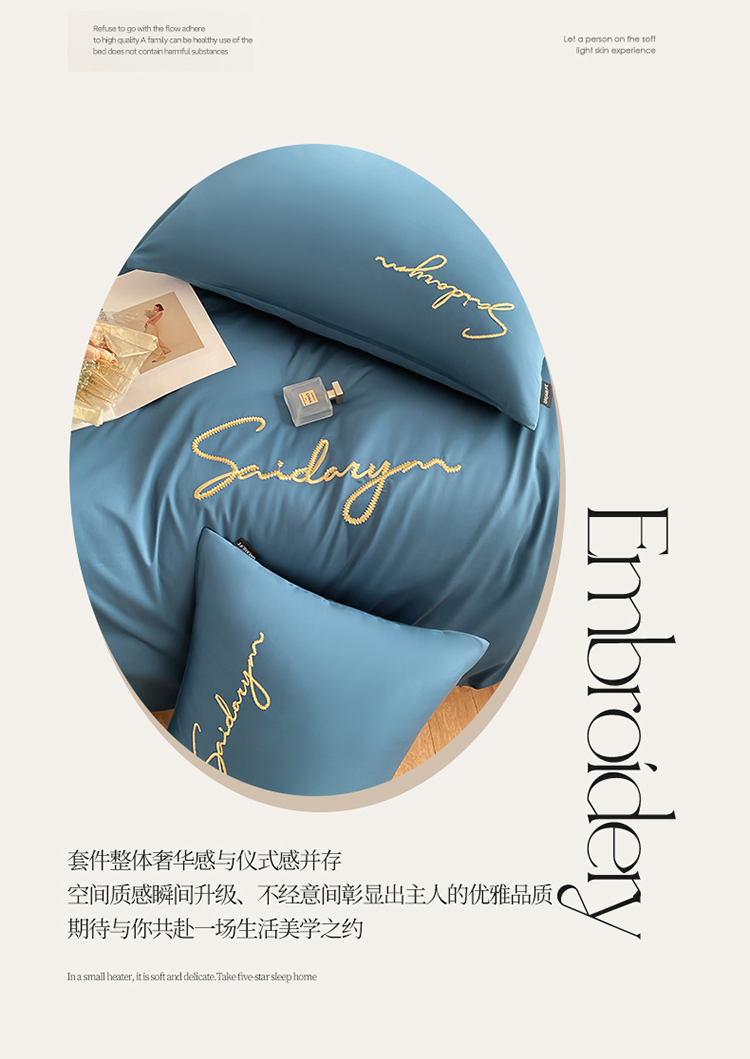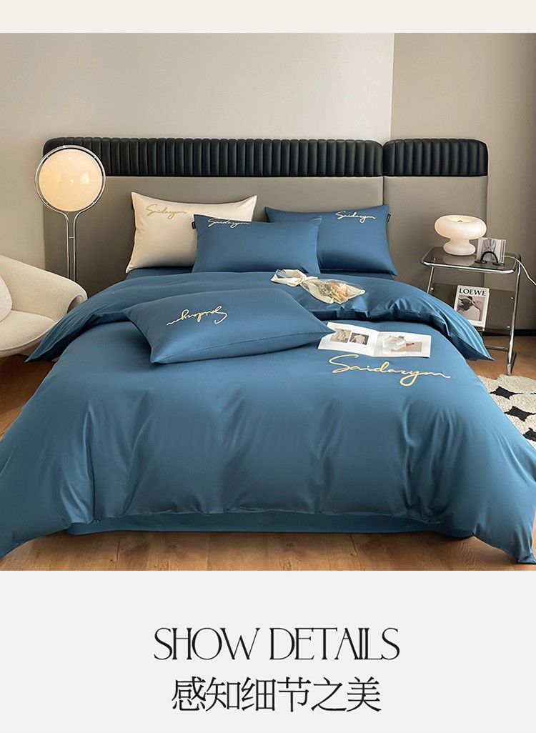 蓝米卡夫 2024全棉高级感长绒棉刺绣索菲系列-四件套 索菲-月光蓝调