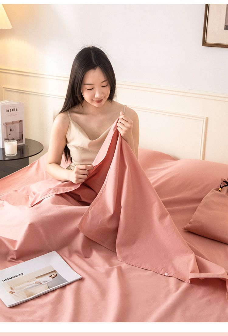 莱登卡奴 2023新款全棉纯色酒店睡袋 睡袋-豆沙