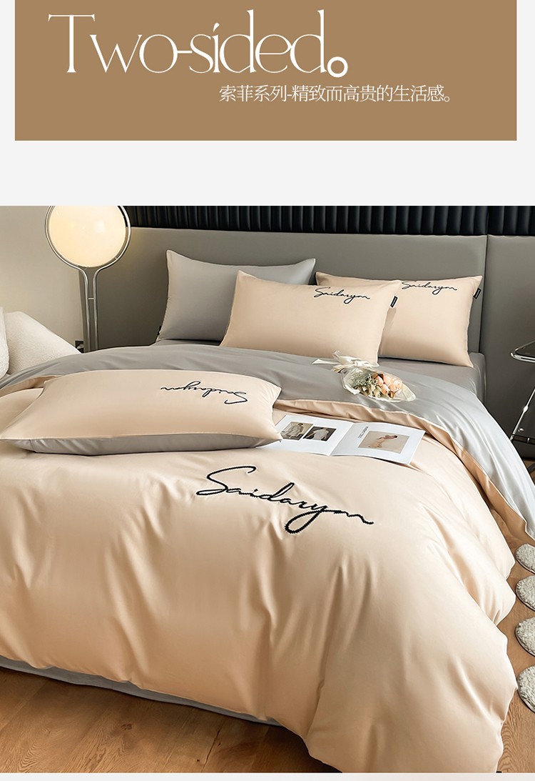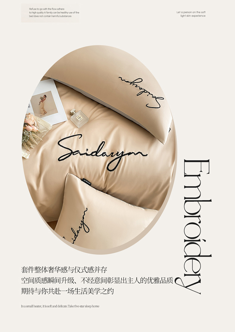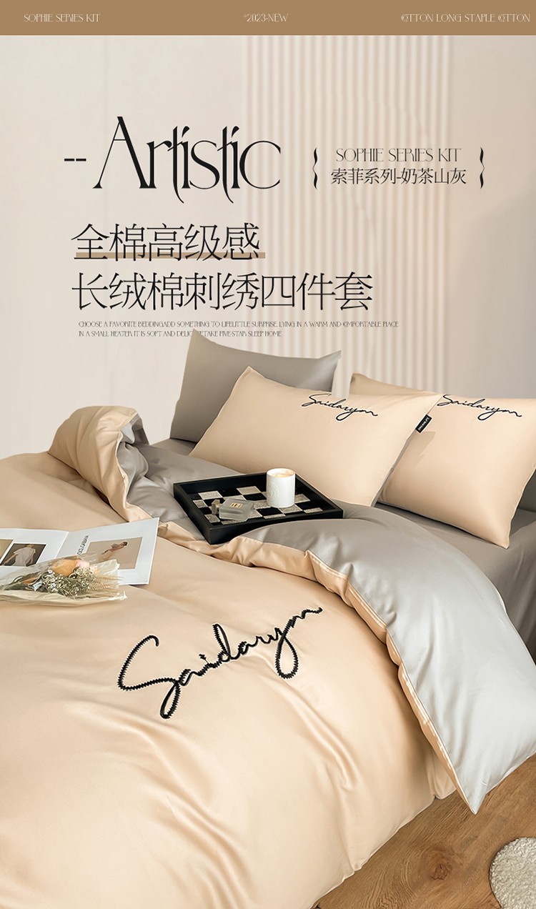商品名称:蓝米卡夫 2024全棉高级感长绒棉刺绣-索菲-单被套 索菲-奶茶山灰