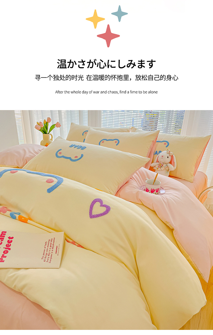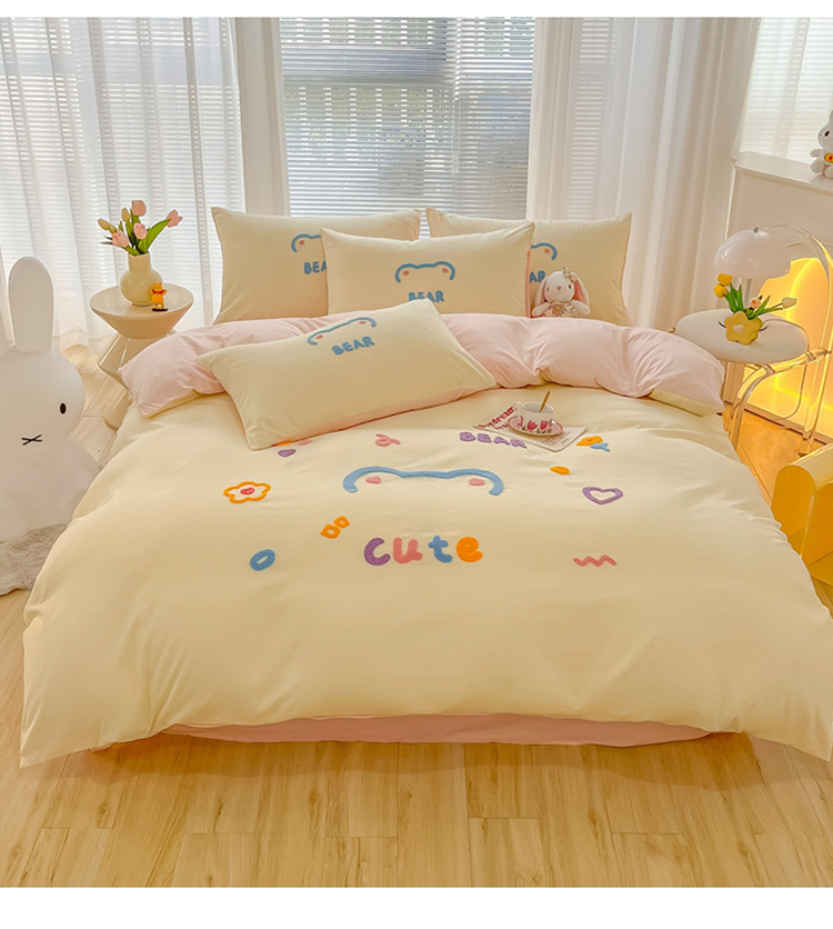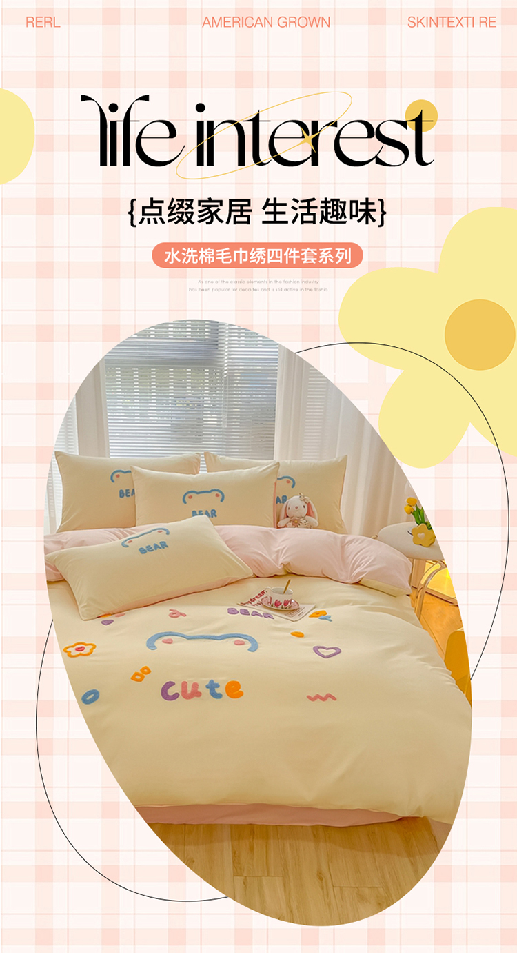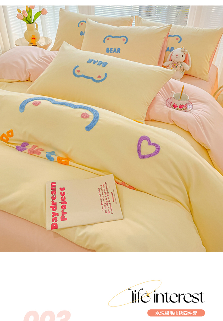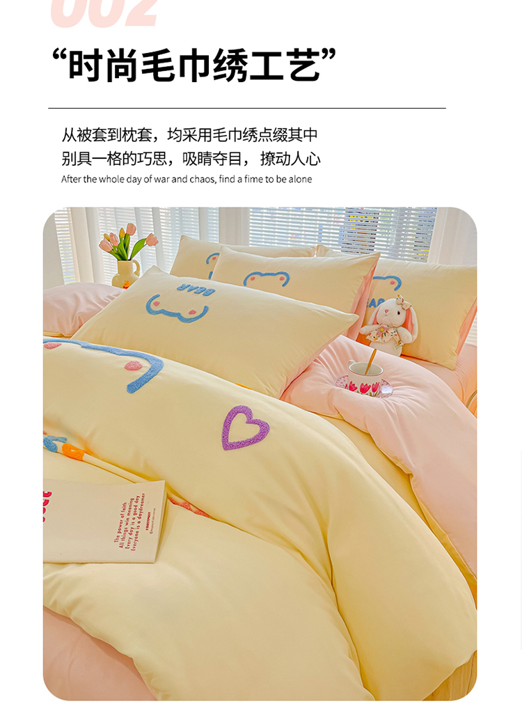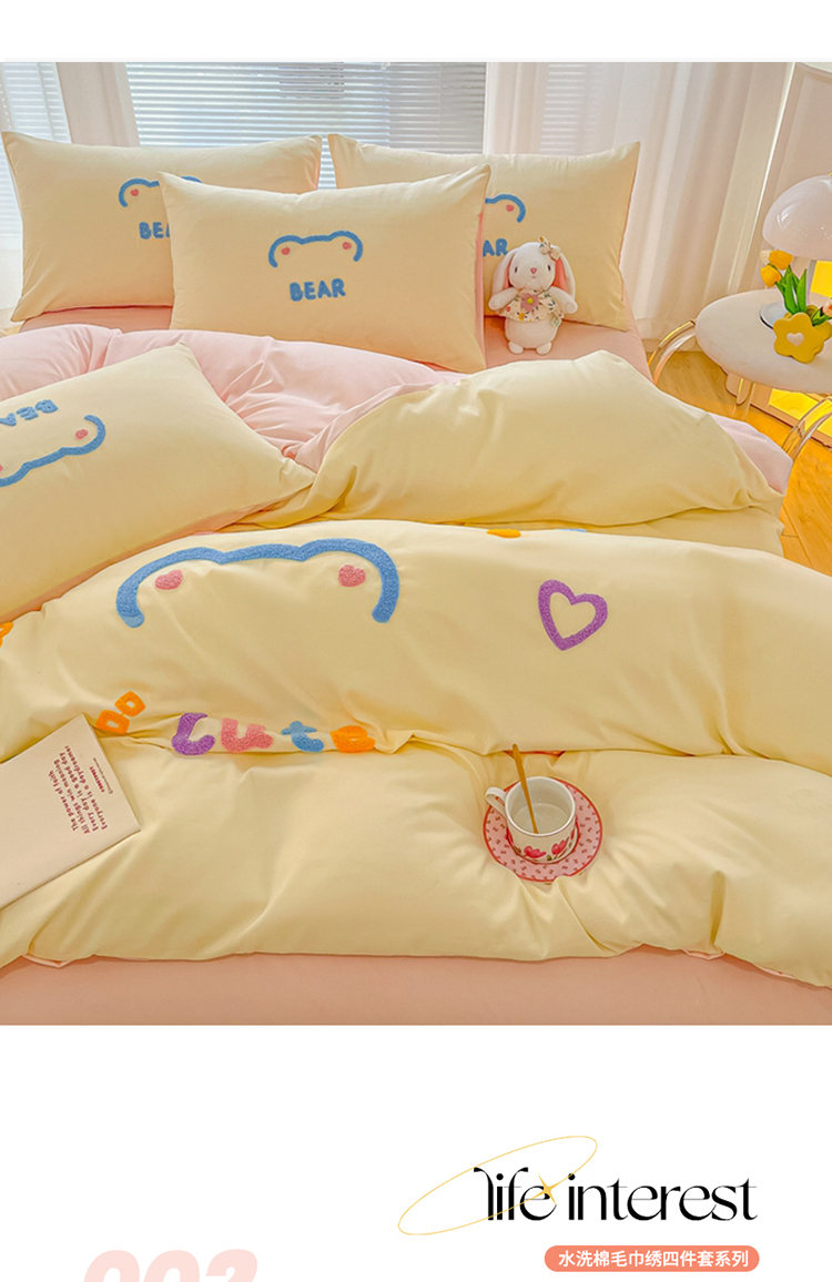 当前位置: 91家纺网 > 商品网购 > 床品套件 > 四件套 > 化纤普通四件套 > 我心 2023新款彩虹熊水洗棉毛巾绣系列四件套 奶茶兔-米黄