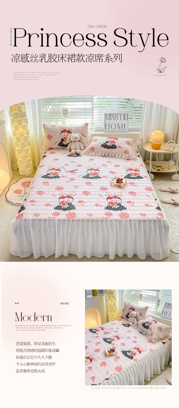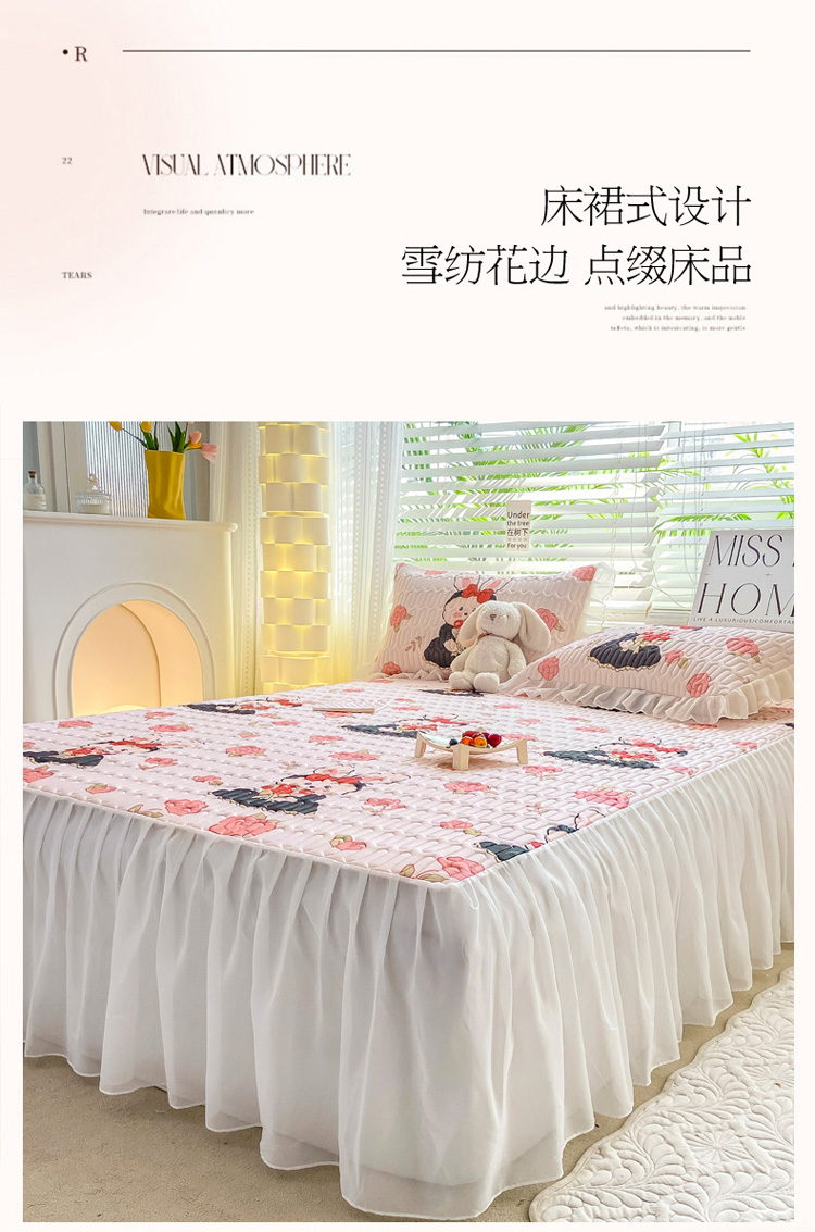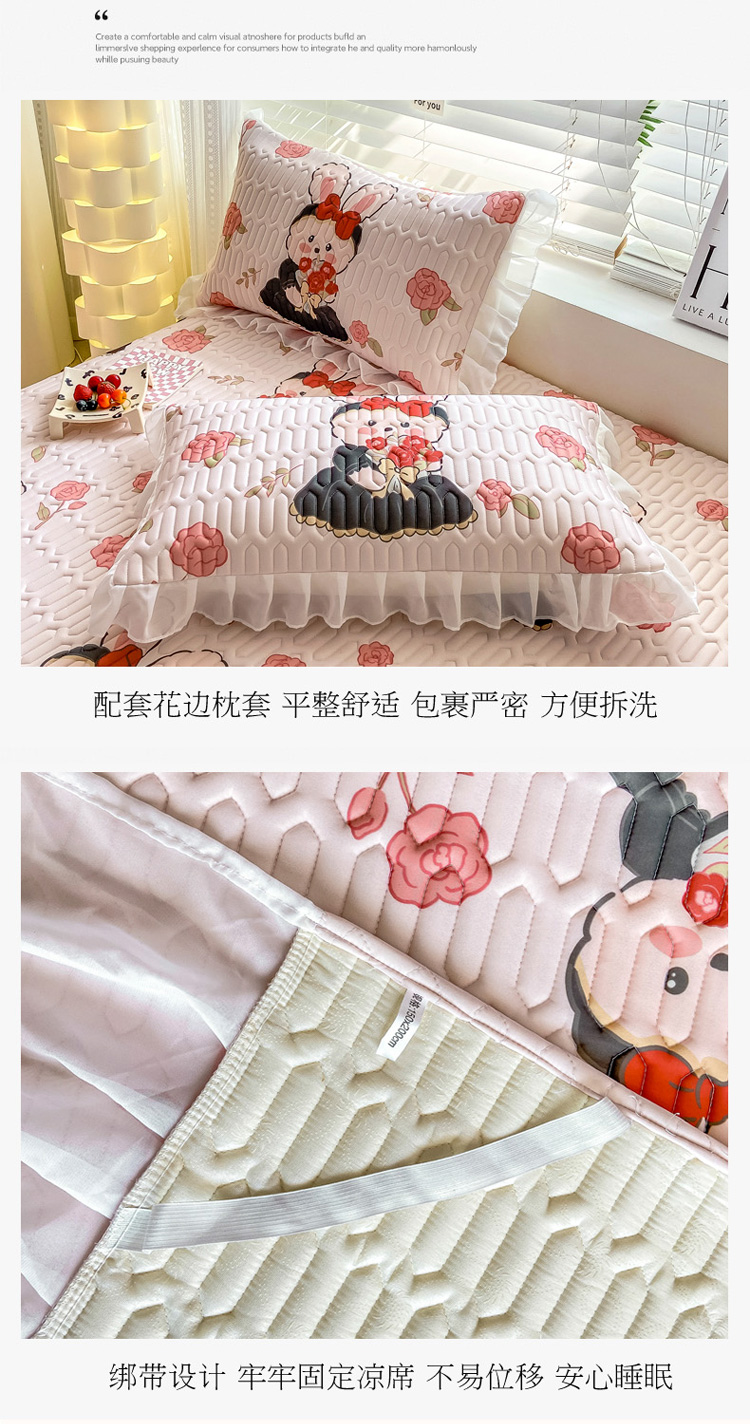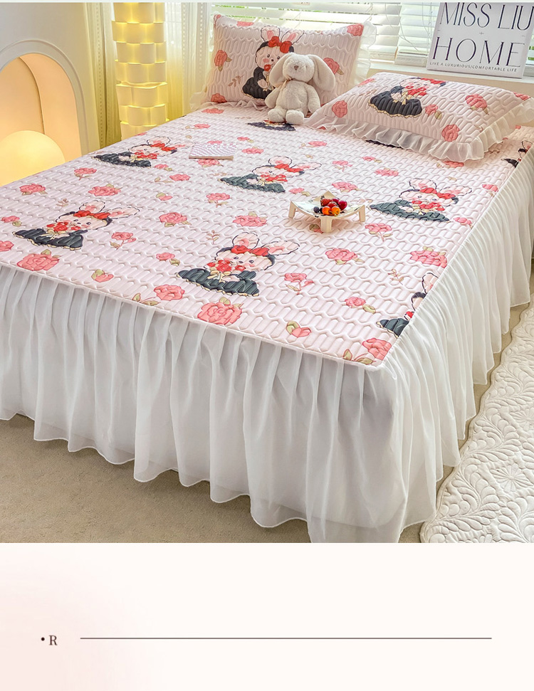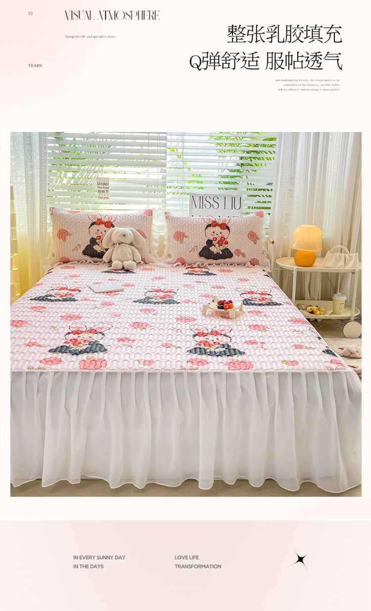 商品名称:慕澄 2023新款小版雪纺床裙款乳胶凉席 黑裙兔兔