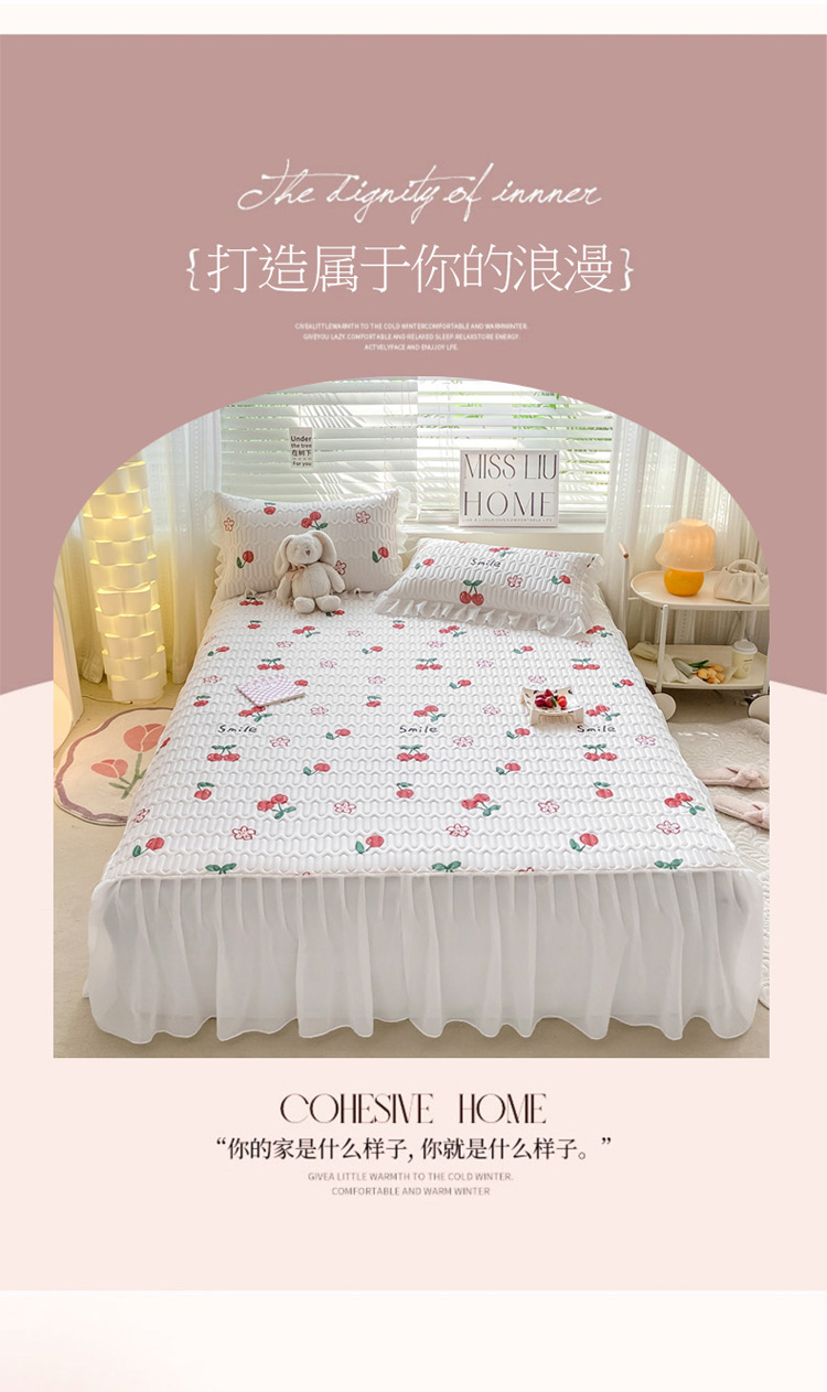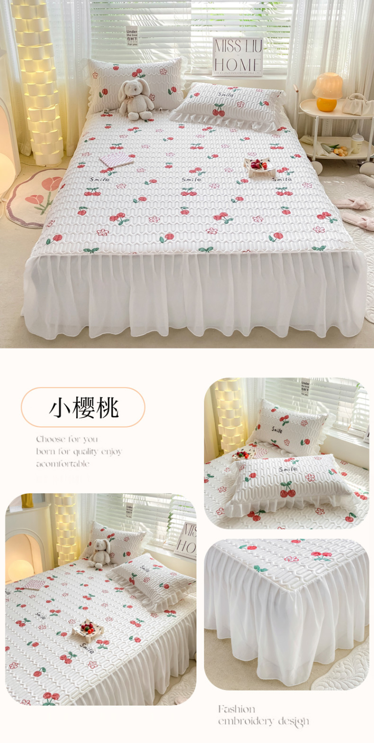商品名称:慕澄 2023新款小版雪纺床裙款乳胶凉席 小樱桃