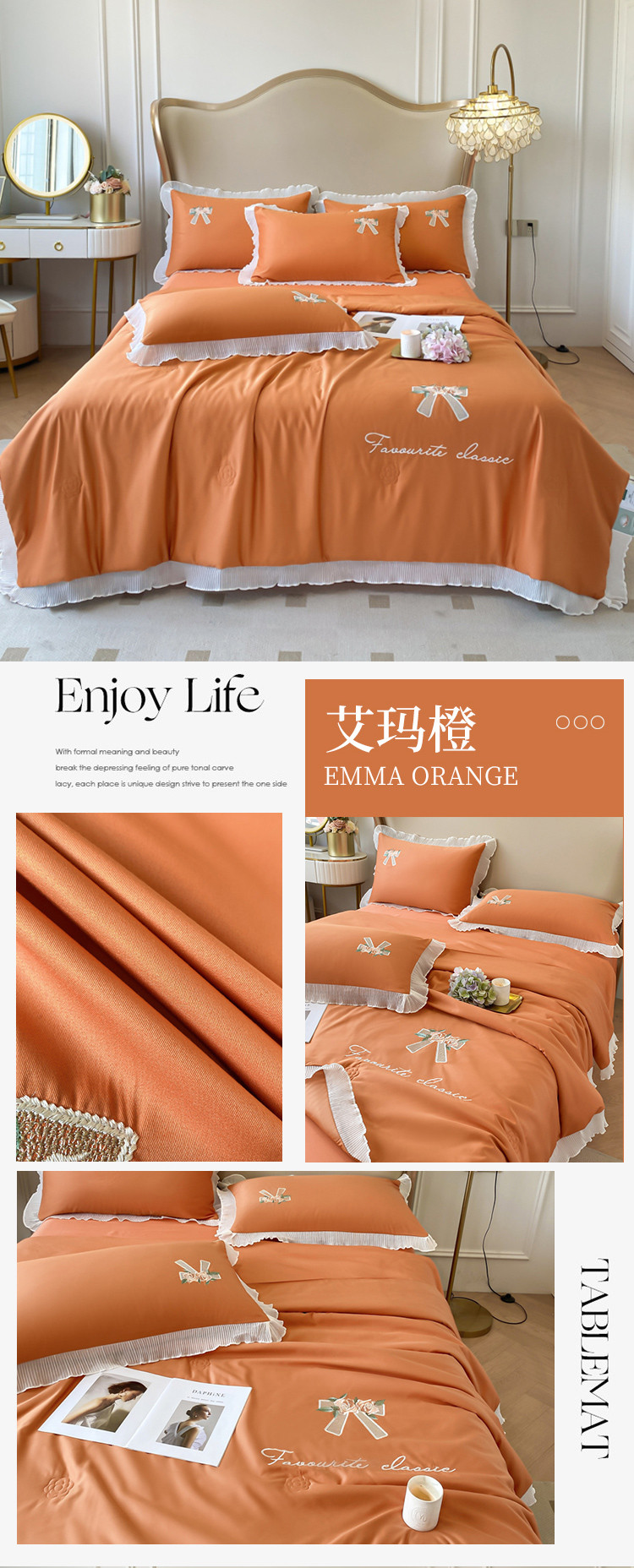 商品名称:伊人居2024新款玫瑰花蝶刺绣水洗真丝夏被四件套玫瑰花碟艾玛橙