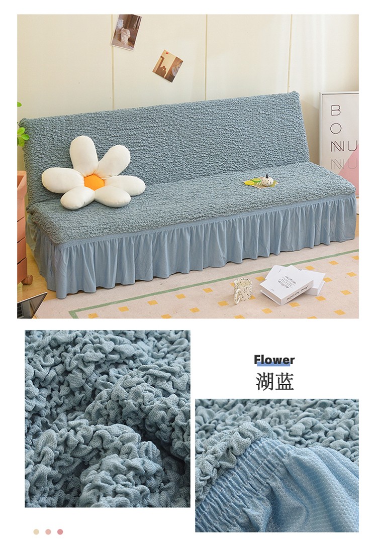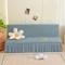 启博家纺 2023新款高端日式皱皱布奶油云纱裙边沙发床套 湖蓝