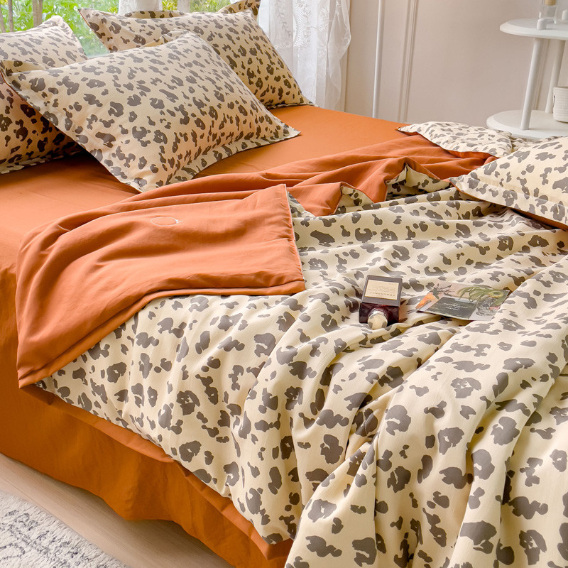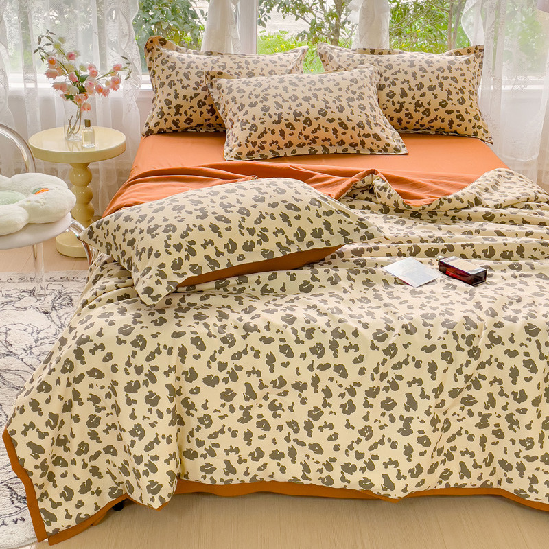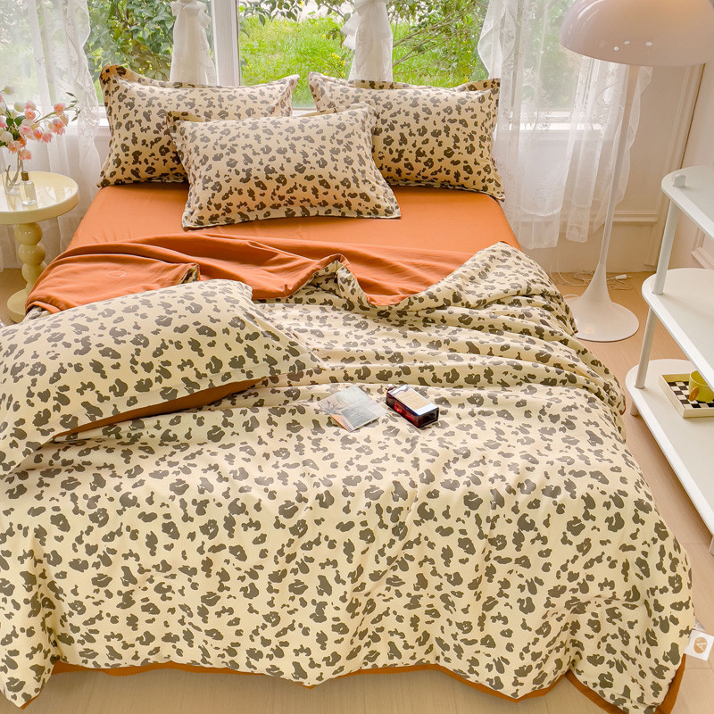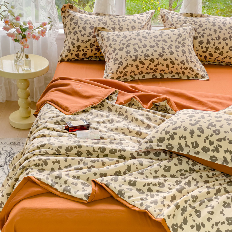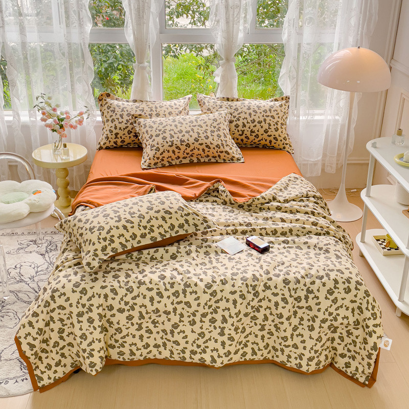 芯贝儿 2023新款 水洗m麻双层纱小清新夏被四件套简约豹纹