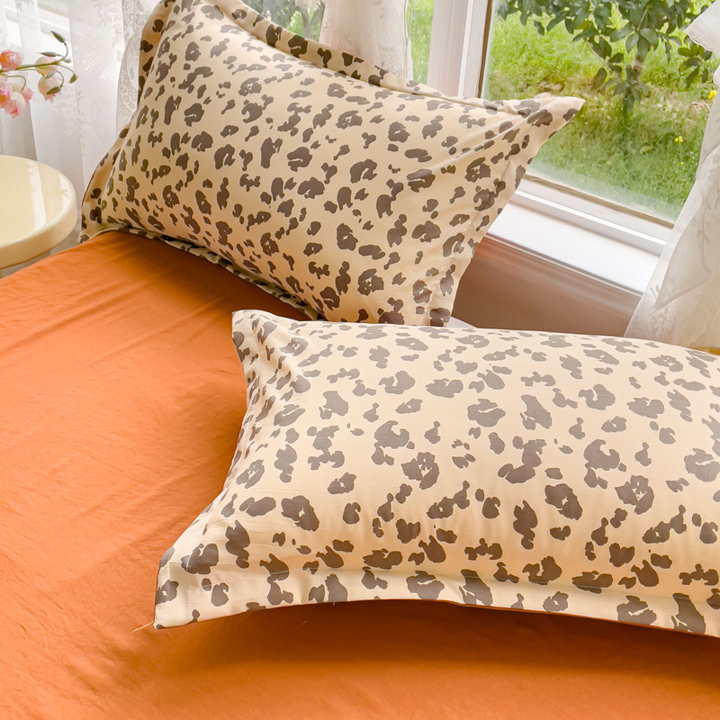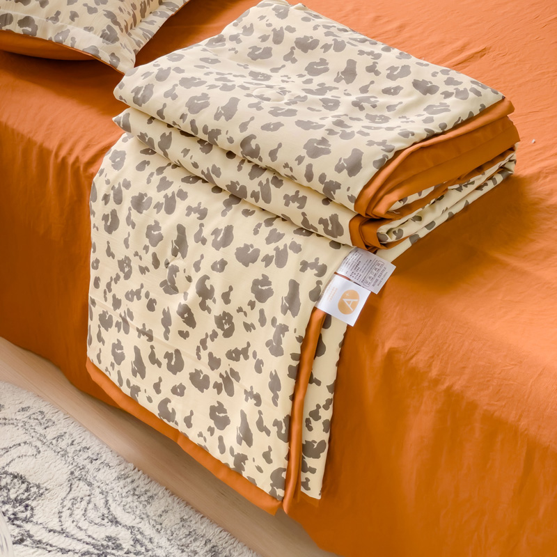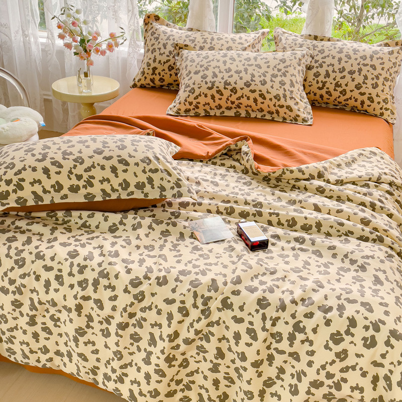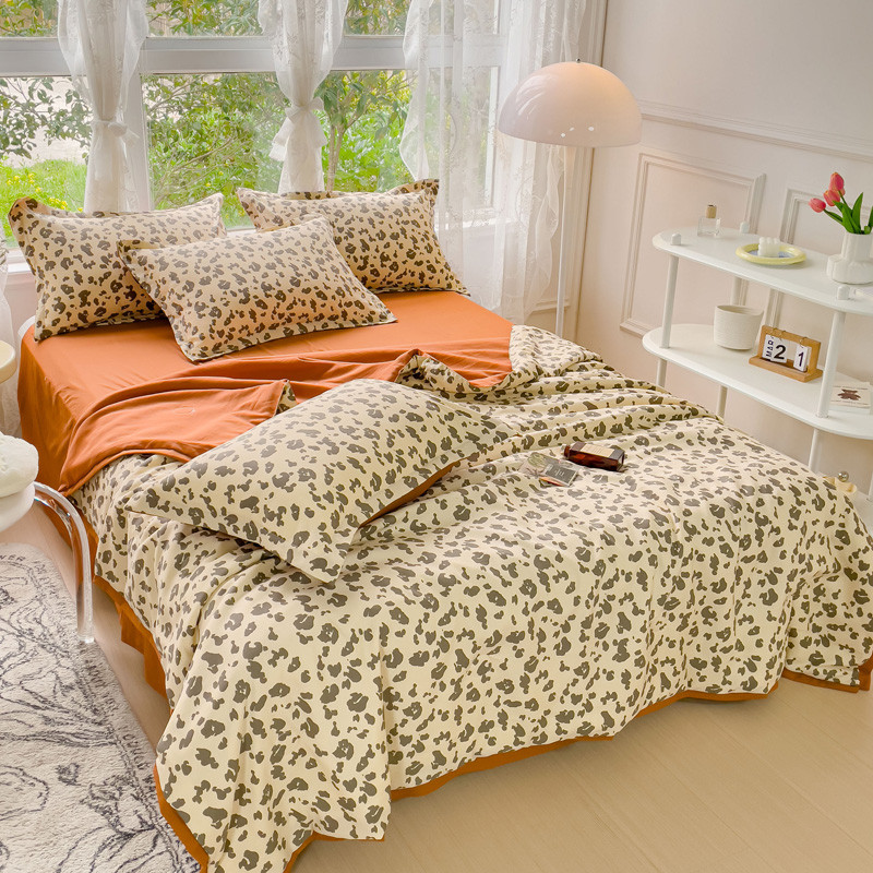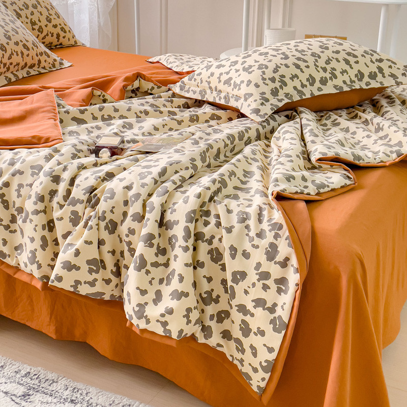 芯贝儿 2023新款 水洗m麻双层纱小清新夏被四件套简约豹纹