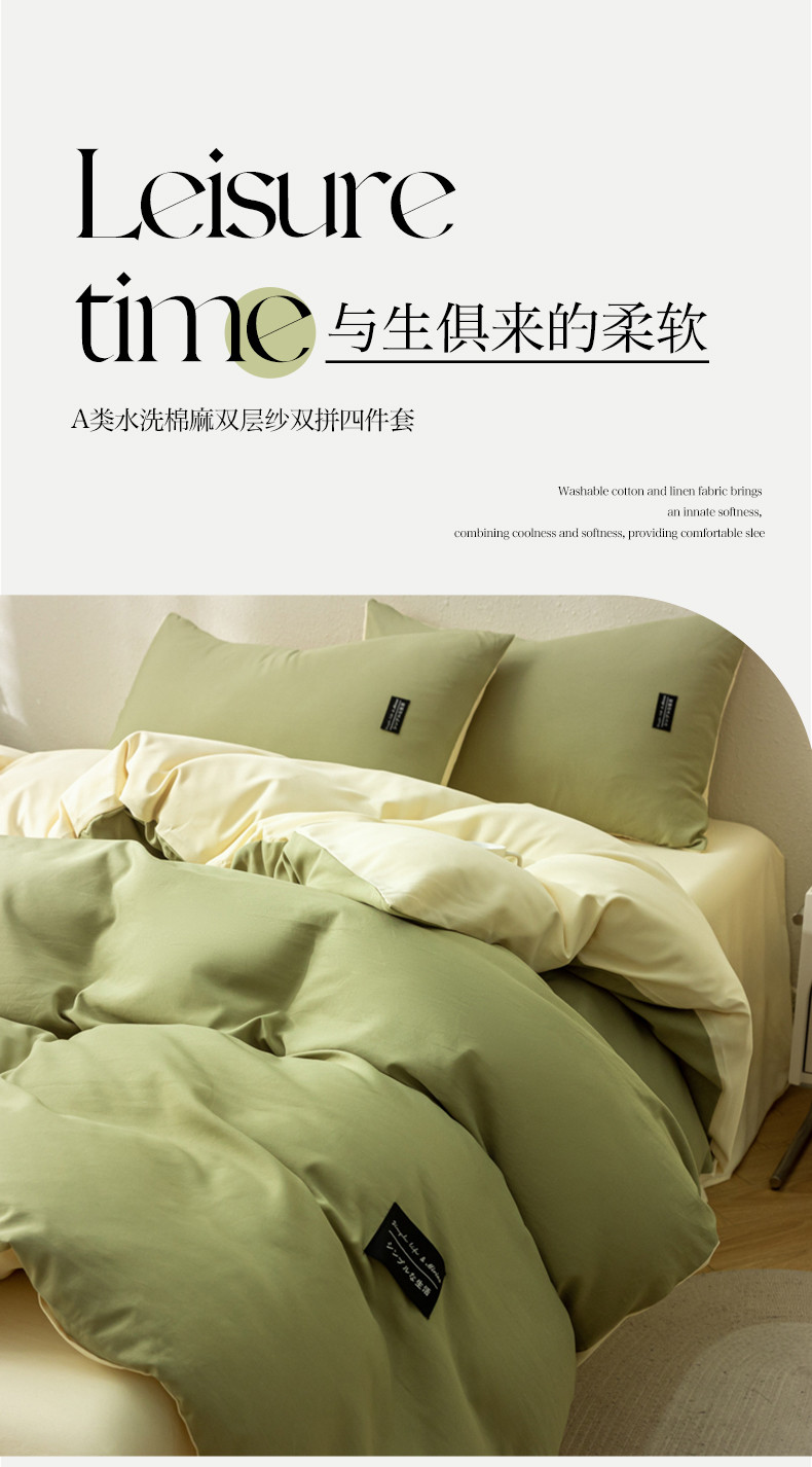 当前位置: 91家纺网 > 商品网购 > 床品套件 > 四件套 > 水洗棉四件套 > 米瑞娜 2024新款 水洗棉麻双拼纯色四件套 抹茶+奶油