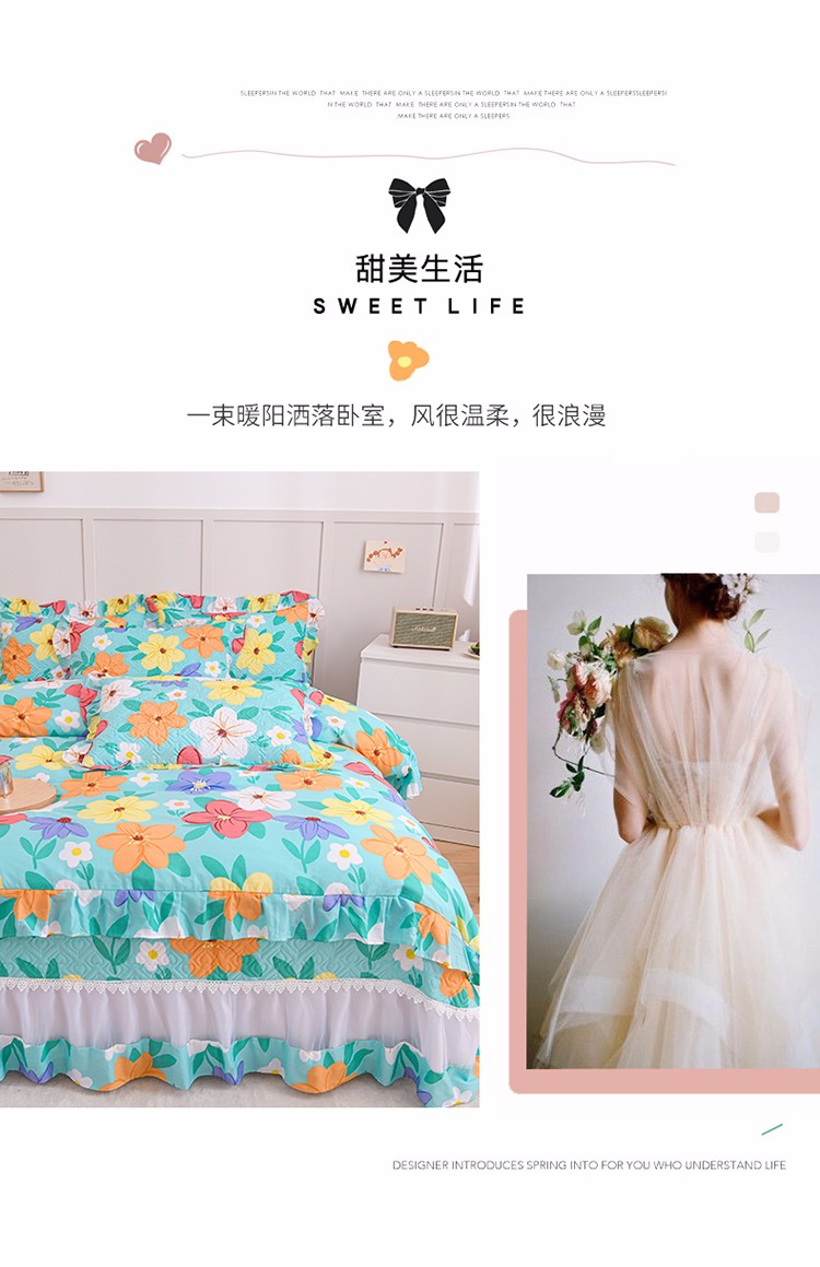 商品名称:2025仙女风欧根纱全棉床盖四件套 蕾丝花边夹棉纯棉床单三件套 套件