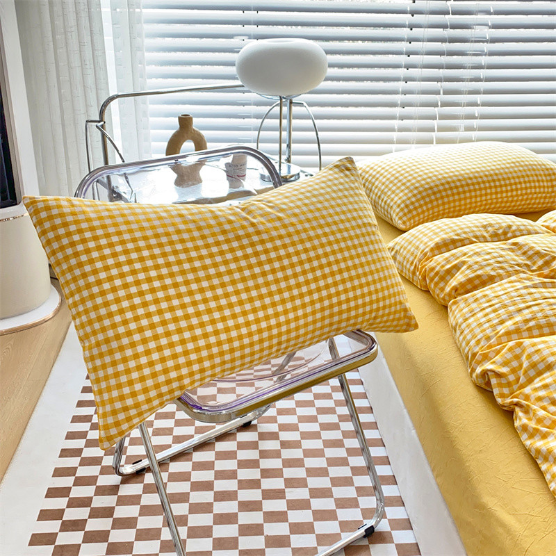三沁2023新款直播爆款色织水洗棉单品系列单枕套 黄小格