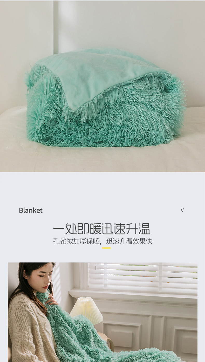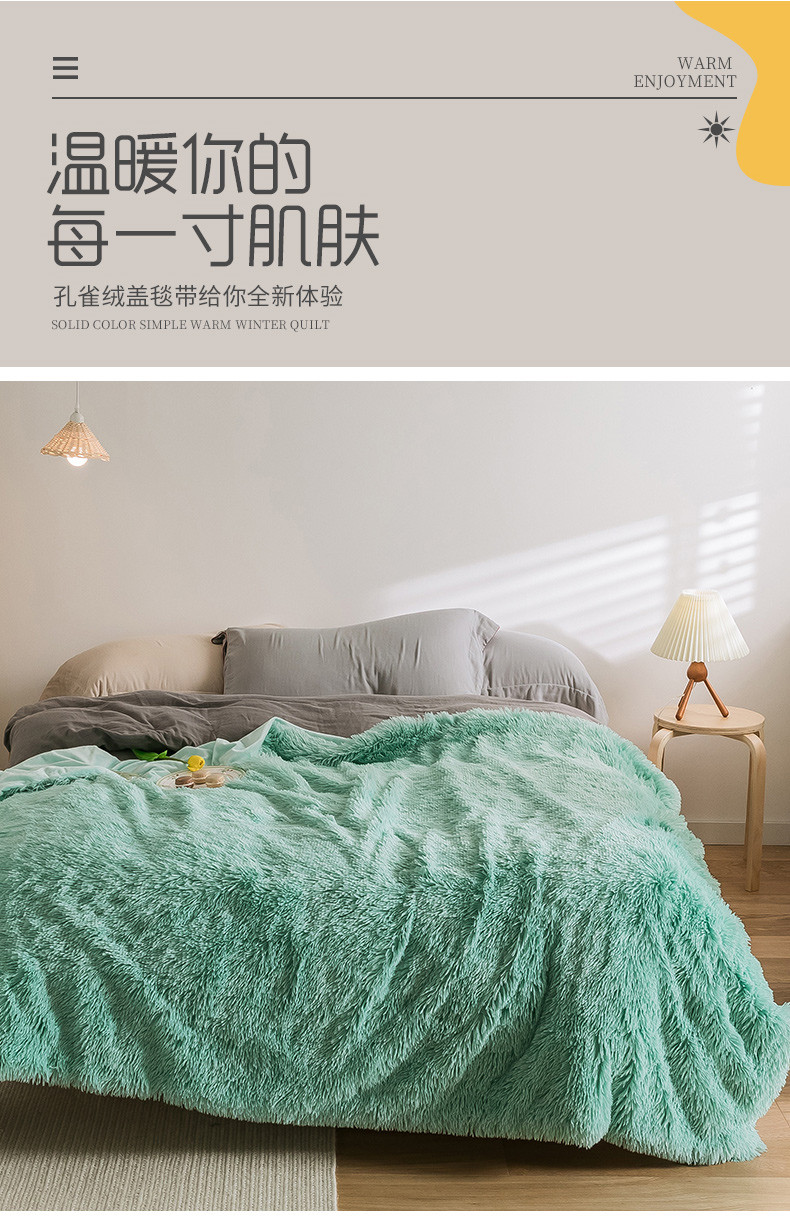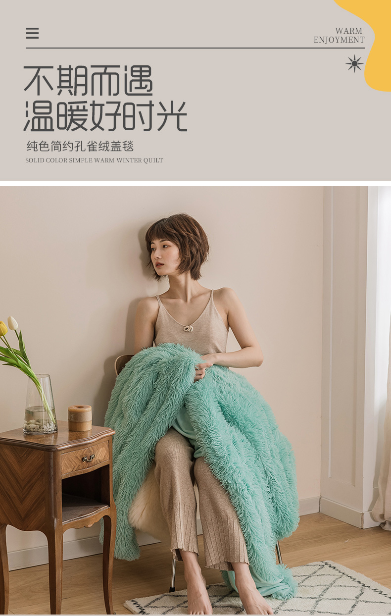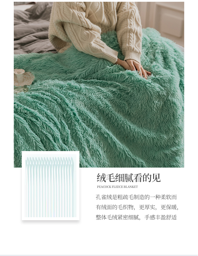 商品名称:肖恩毯业 2025新款纯色孔雀绒毛毯沙发盖毯午睡毯子 孔雀-绿