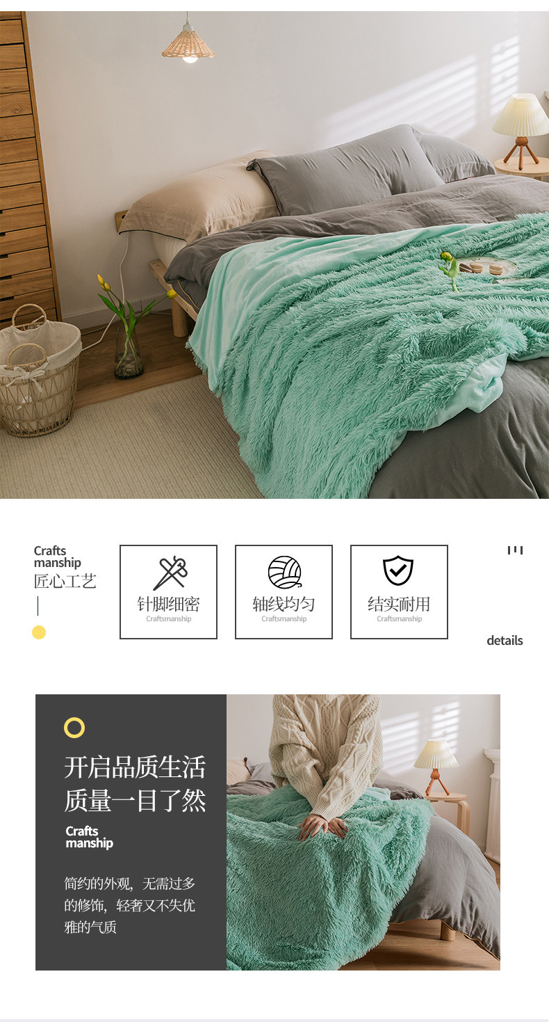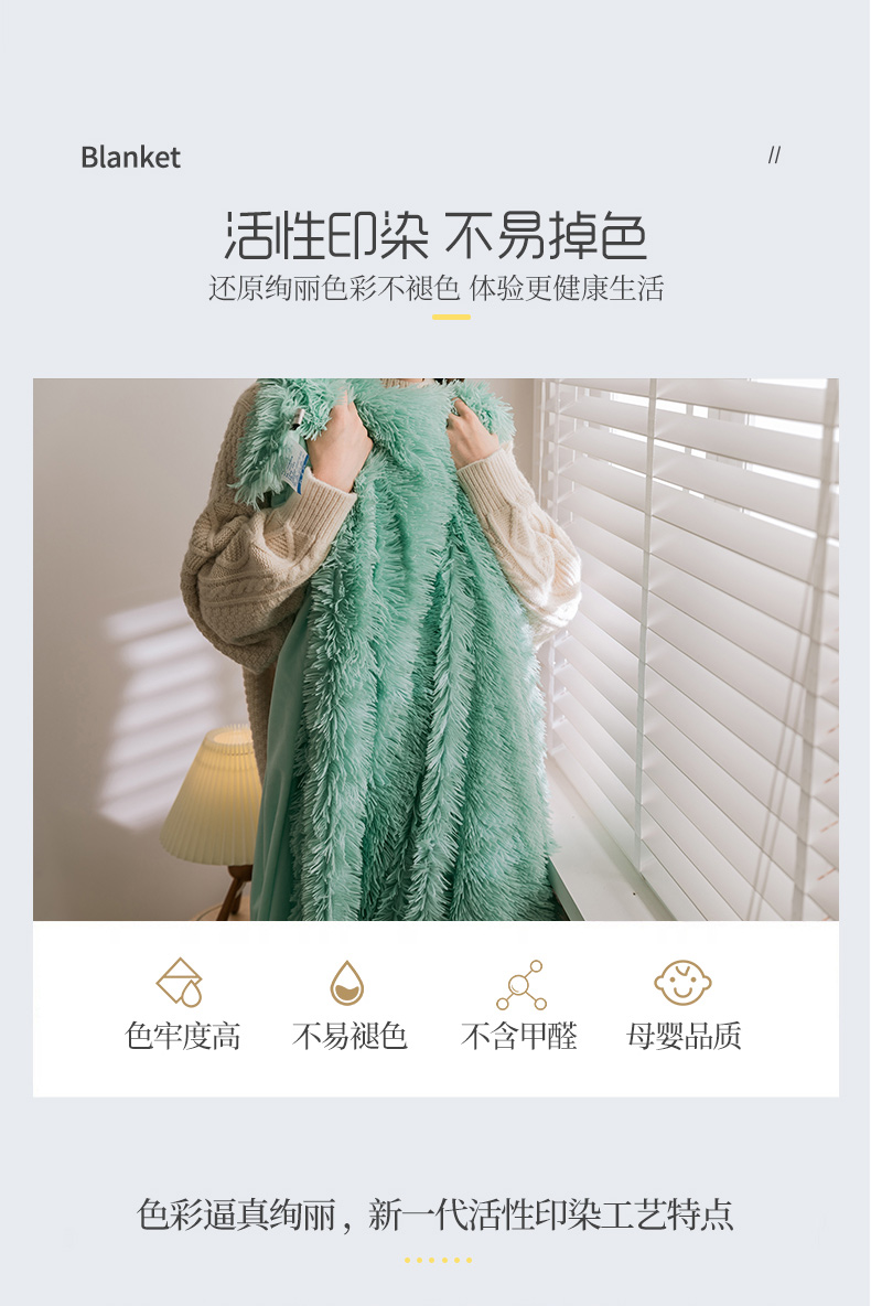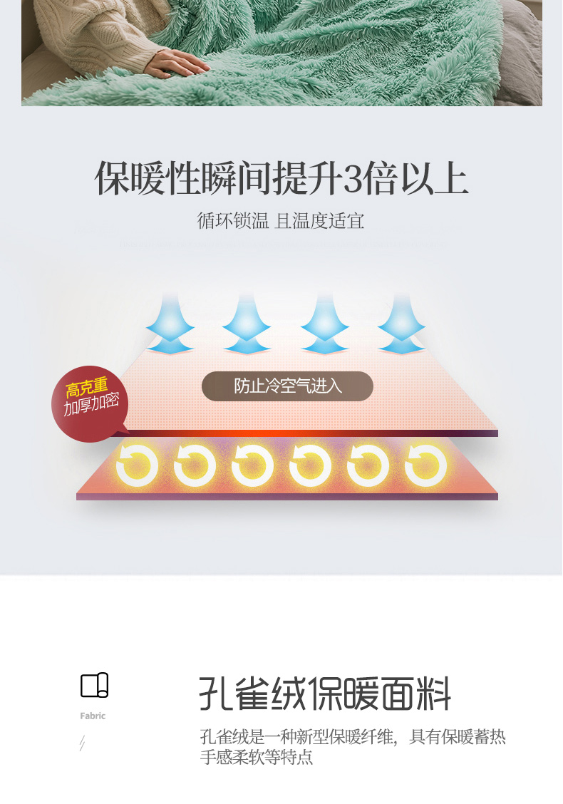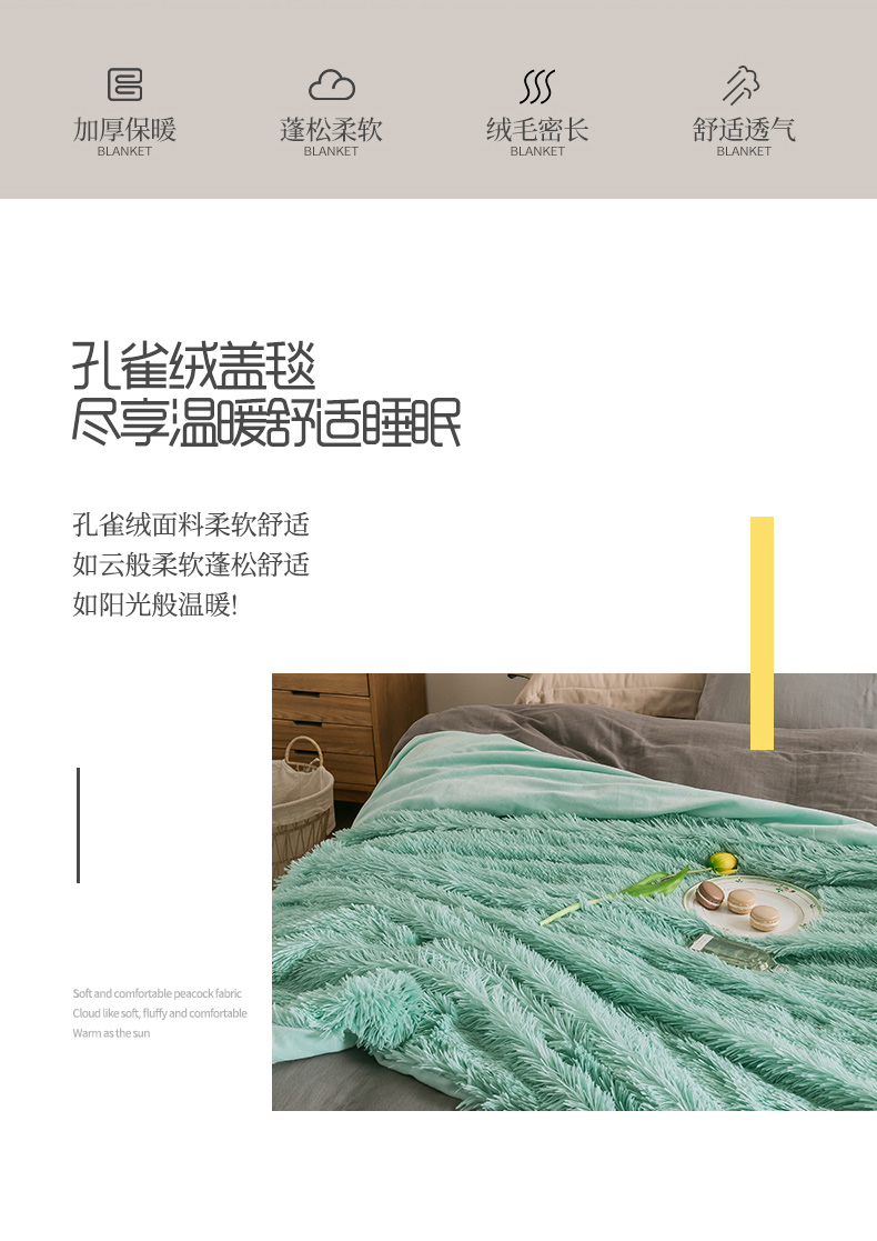 商品名称:肖恩毯业 2025新款纯色孔雀绒毛毯沙发盖毯午睡毯子 孔雀-绿