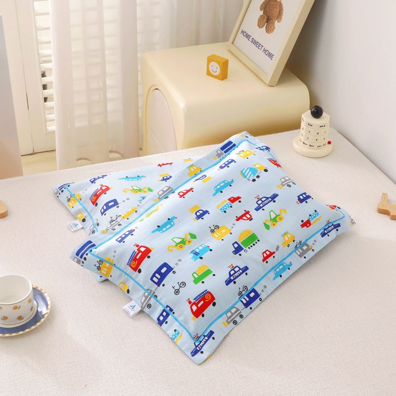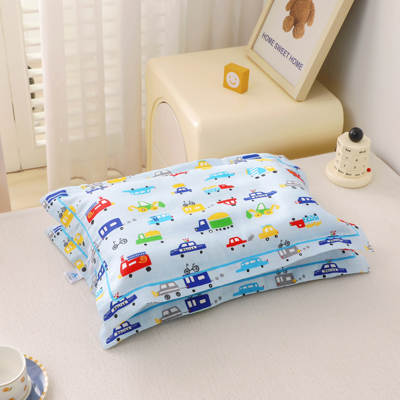 乐秀家纺 2023新款A类双层纱卡通印花儿童幼儿园枕套 多彩汽车