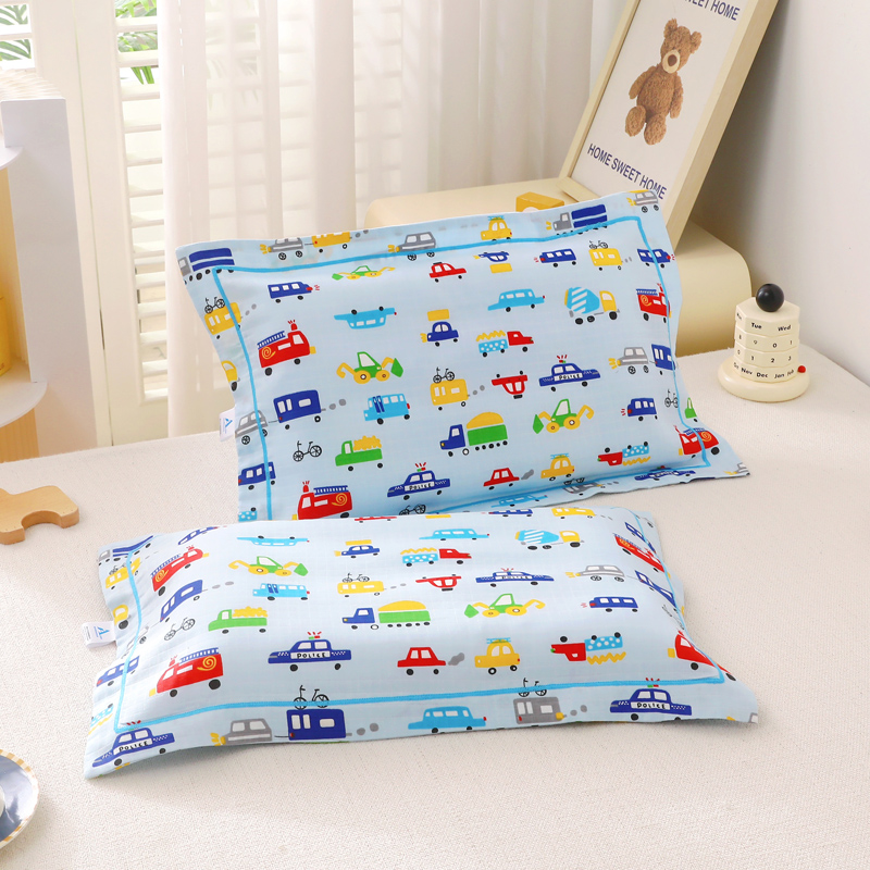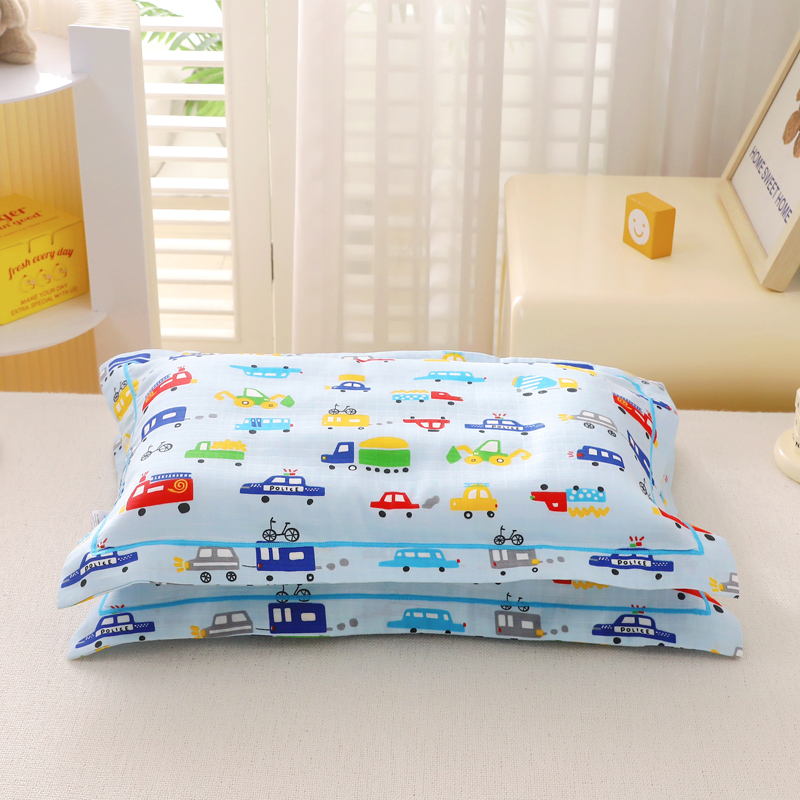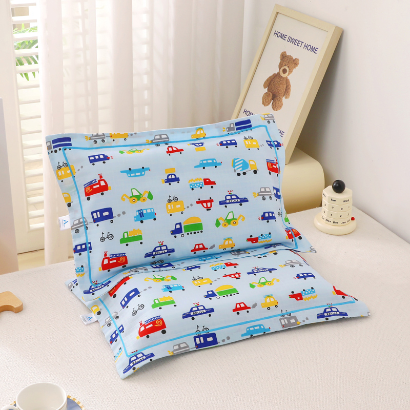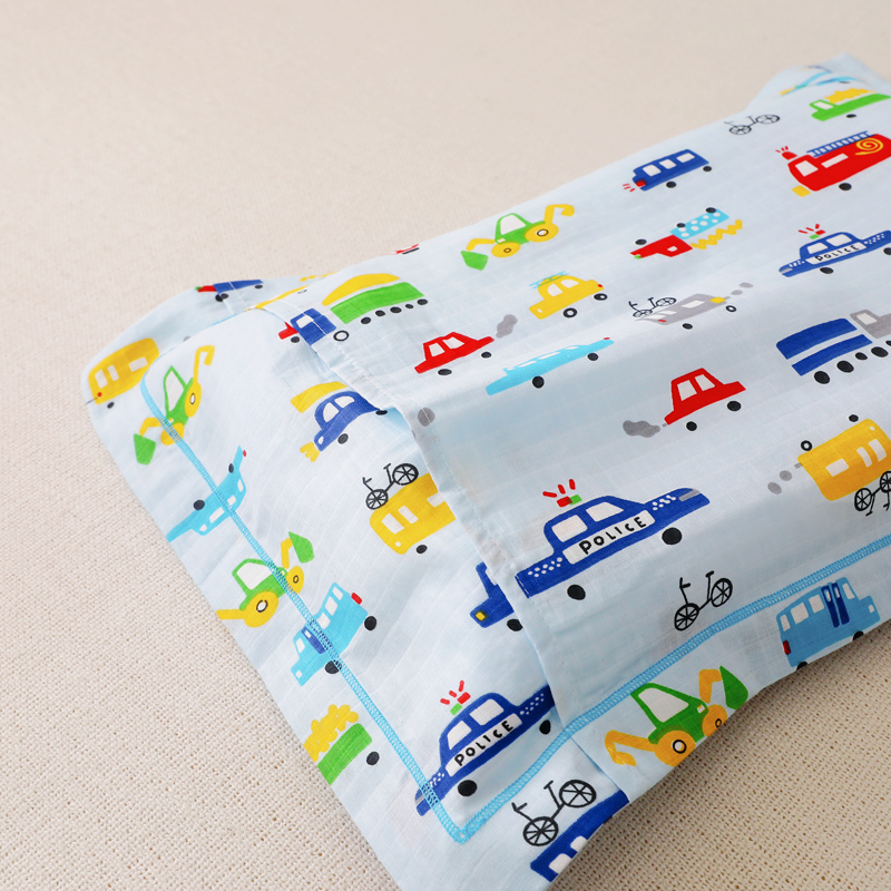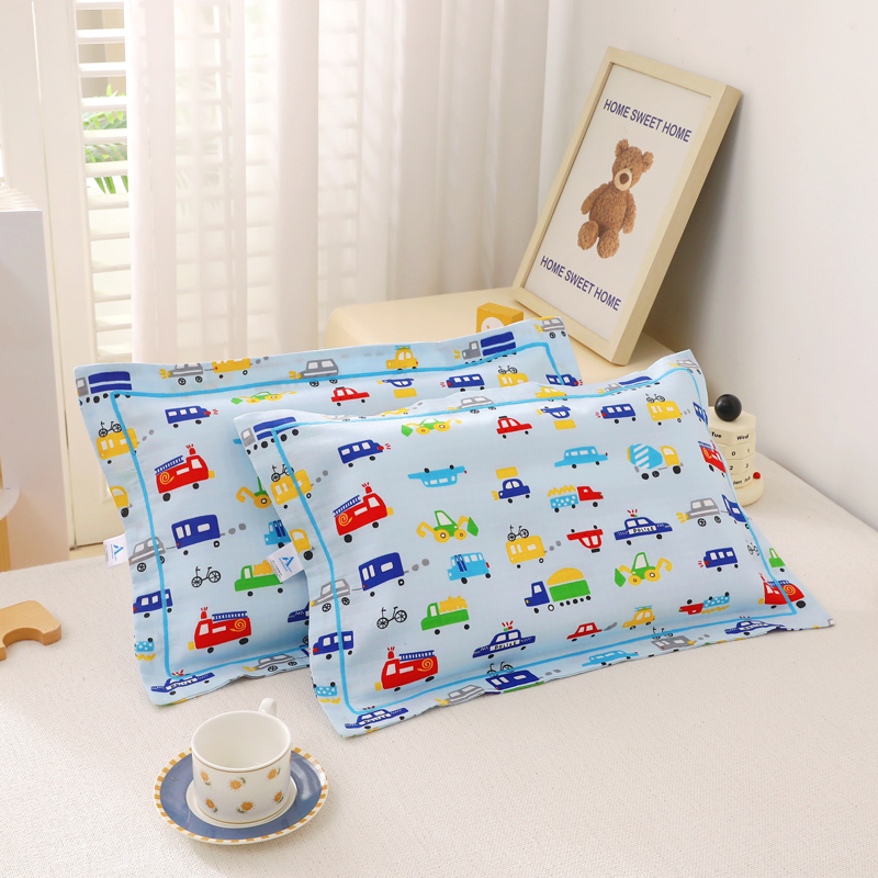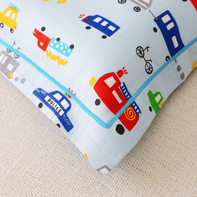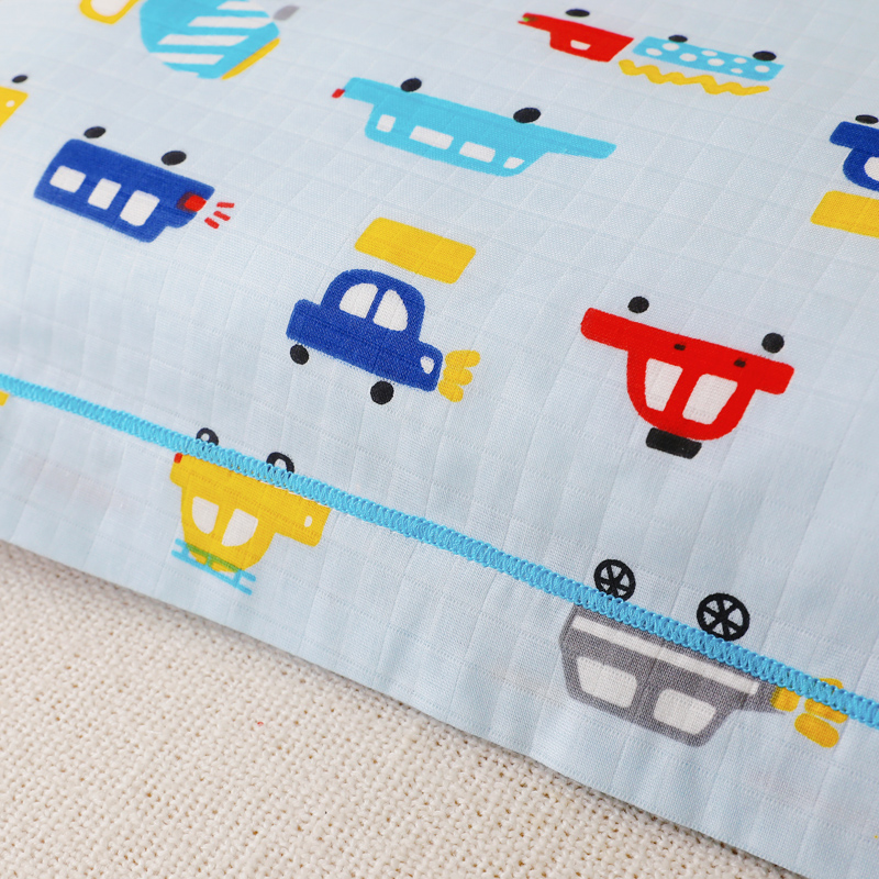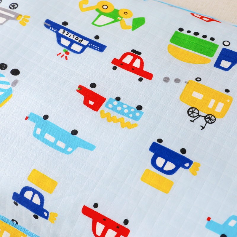 商品名称:乐秀家纺 2023新款A类双层纱卡通印花儿童幼儿园枕套 多彩汽车