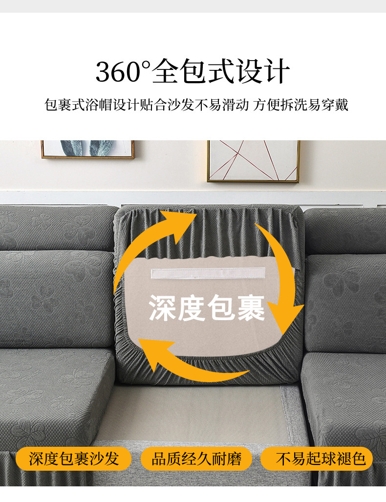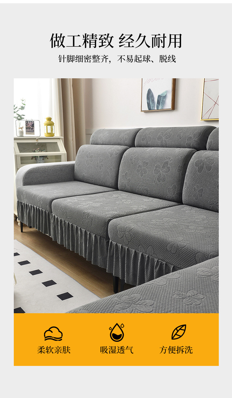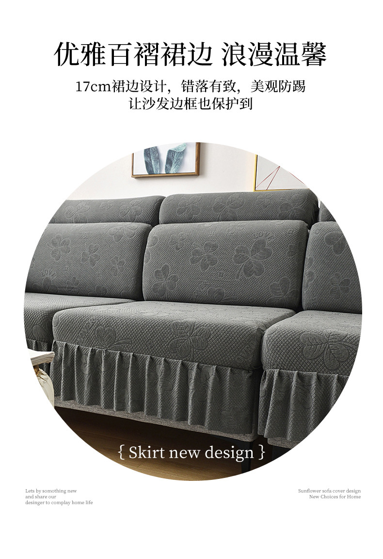 当前位置: 91家纺网 > 商品网购 > 居家布艺 > 坐垫/椅垫/沙发垫 > 沙发垫 > 千彤 2023新款裙边-三叶草沙发笠系列 沙发套罩 深灰